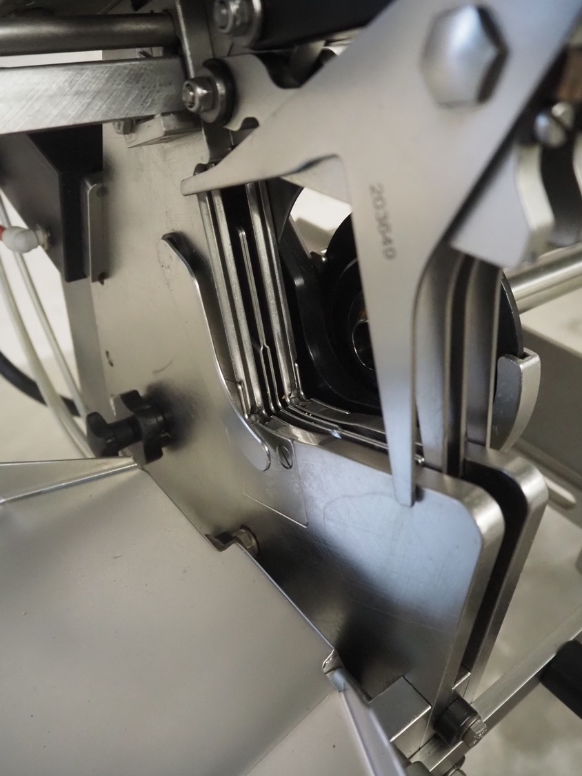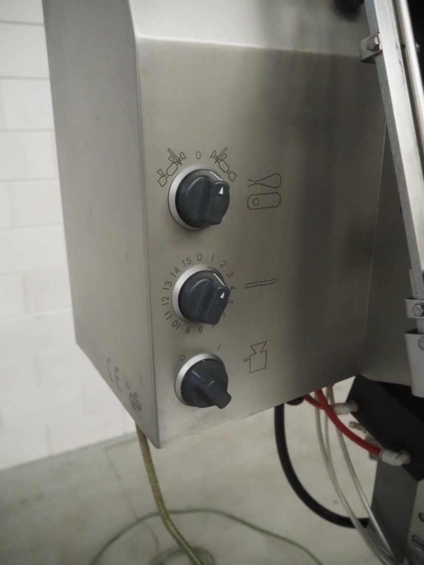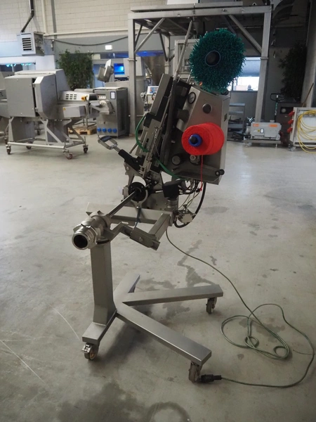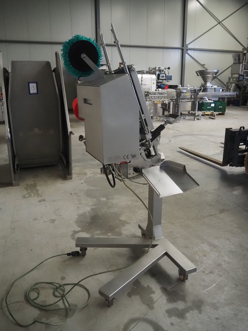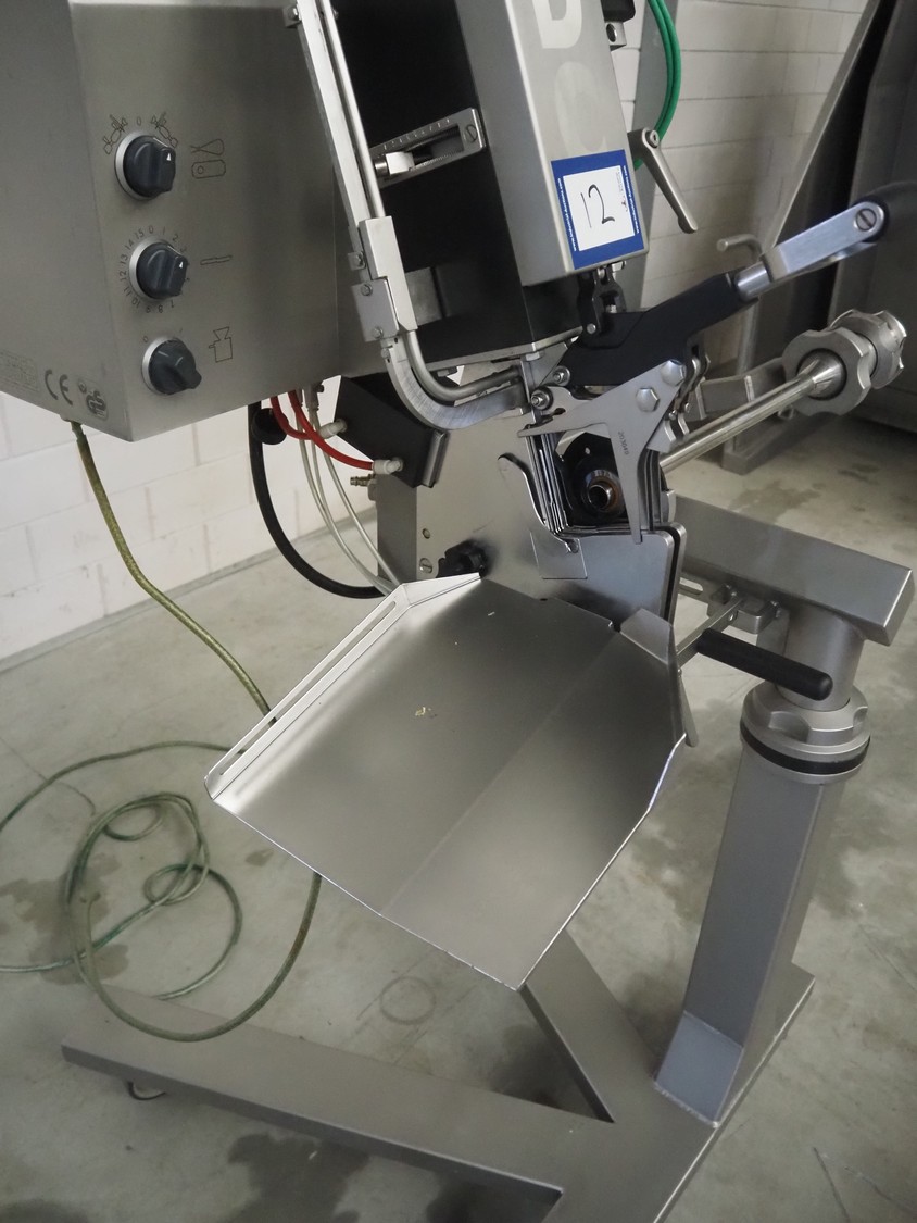 Poly-Clip Systems GmbH & Co.KG mobile double clipper, type: PDC 600, number: 3168/14, 400 V, 3 Ph, 50/60 Hz, 1.0 A, 0.1 kW, 5/7 bar, dimensions: 1100 mm x 750 mm x 1780 mm.