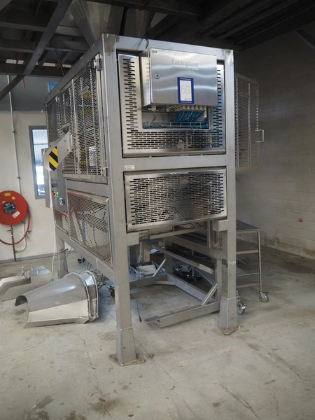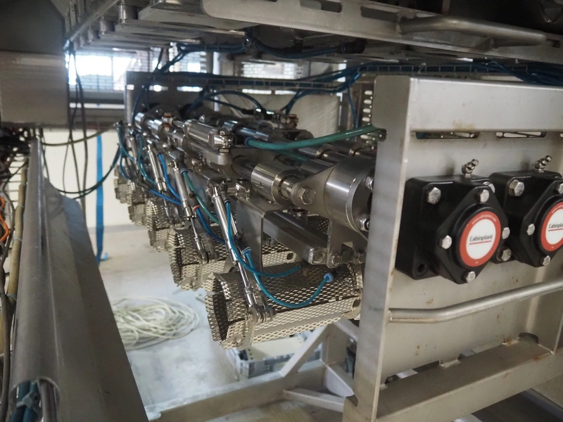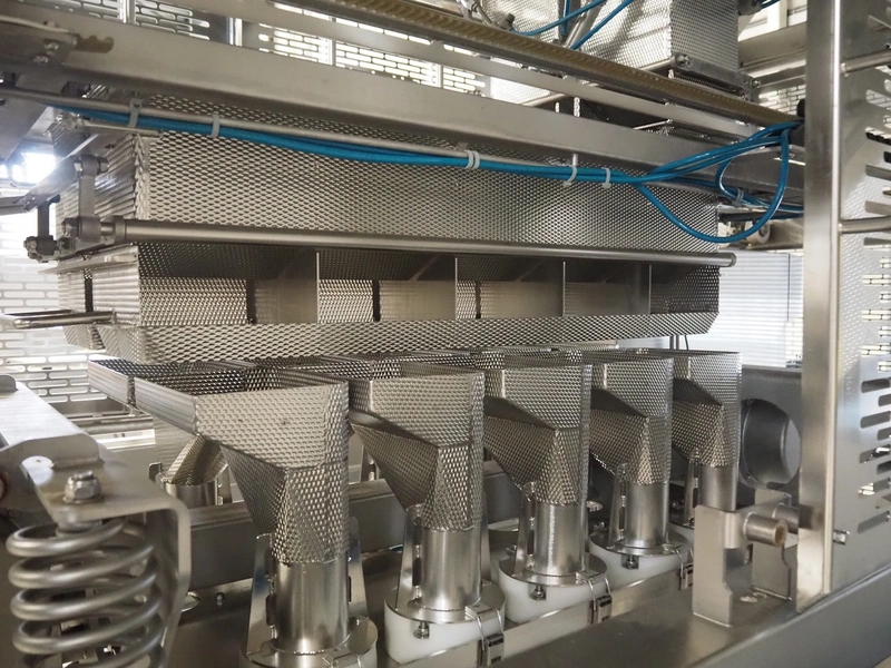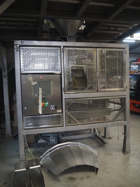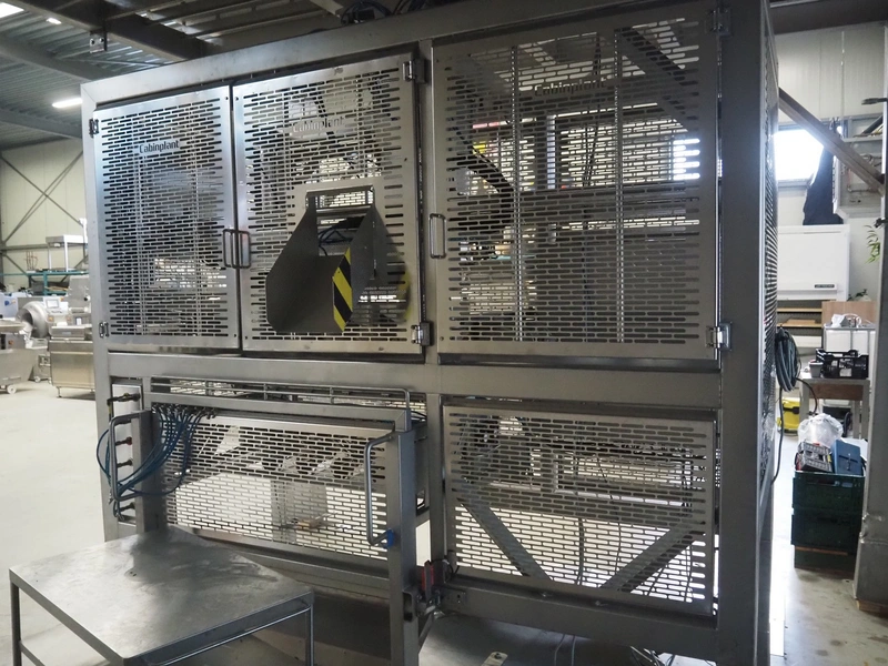 Cabinplant sausage depositor, type: Distribution 100, year of construction: 2014, capacity: 120 per minute, dimensions: 2570 mm x 1680 mm x 2580 mm.