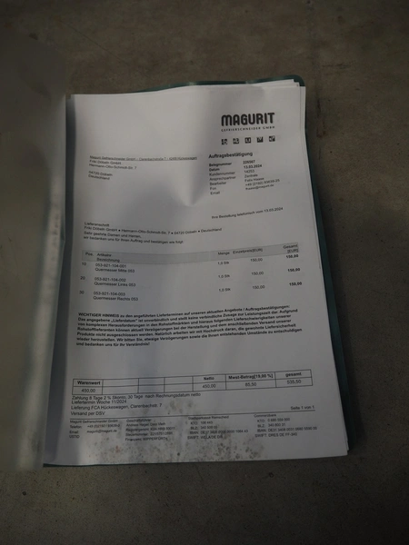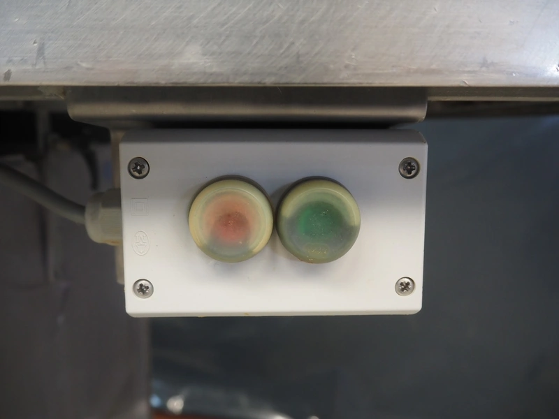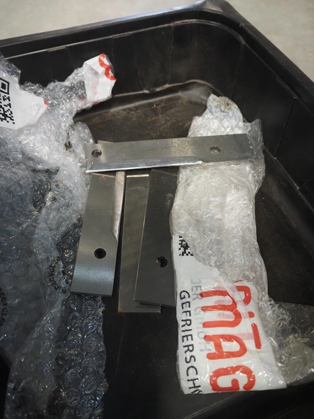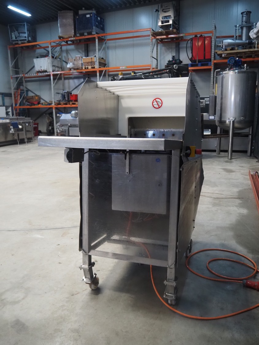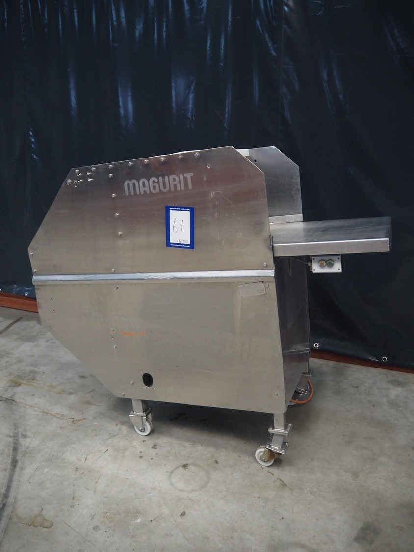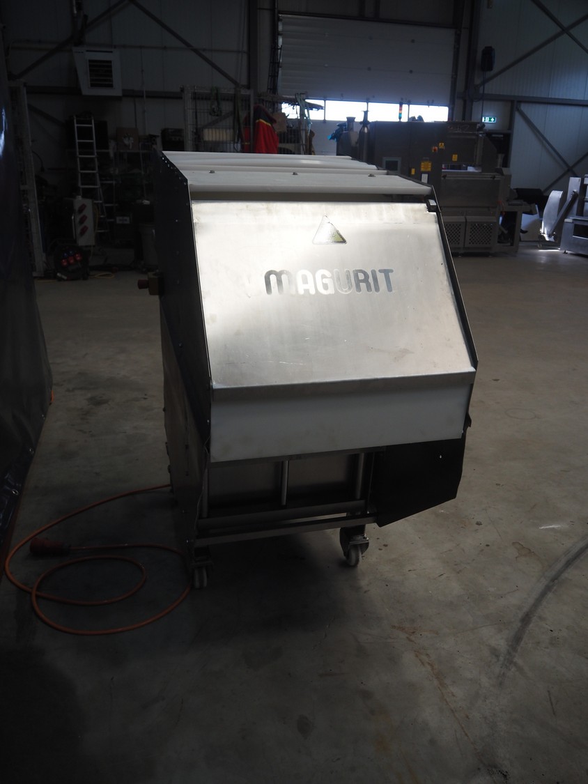 Magurit mobile frozen block cutter, type: 152, machine number: 2091, year of construction: 1997, 380 V, working width: 450 mm, distance between dividers: 100 mm, total dimensions: 1840 mm x 700 mm x 1580 mm.