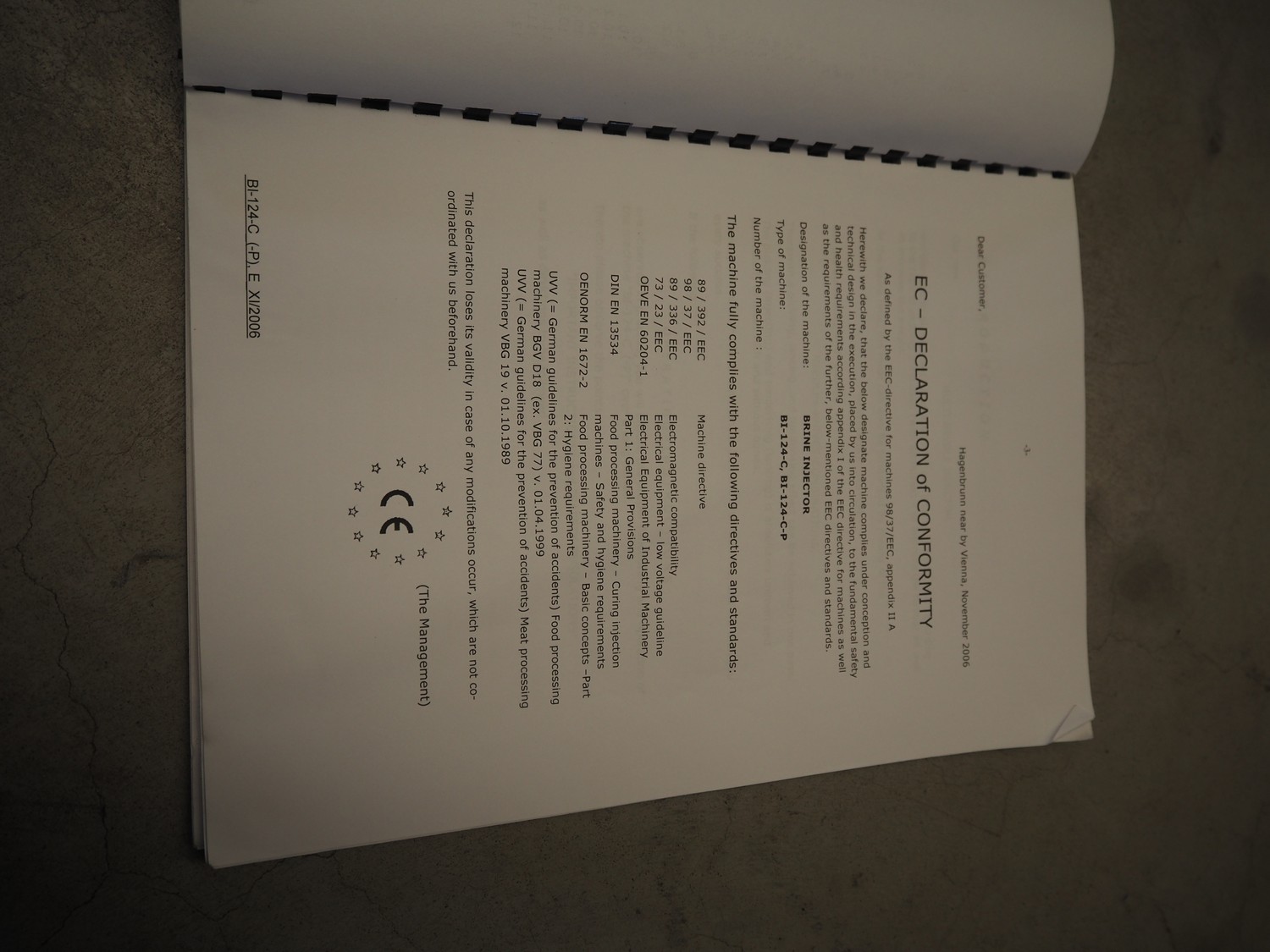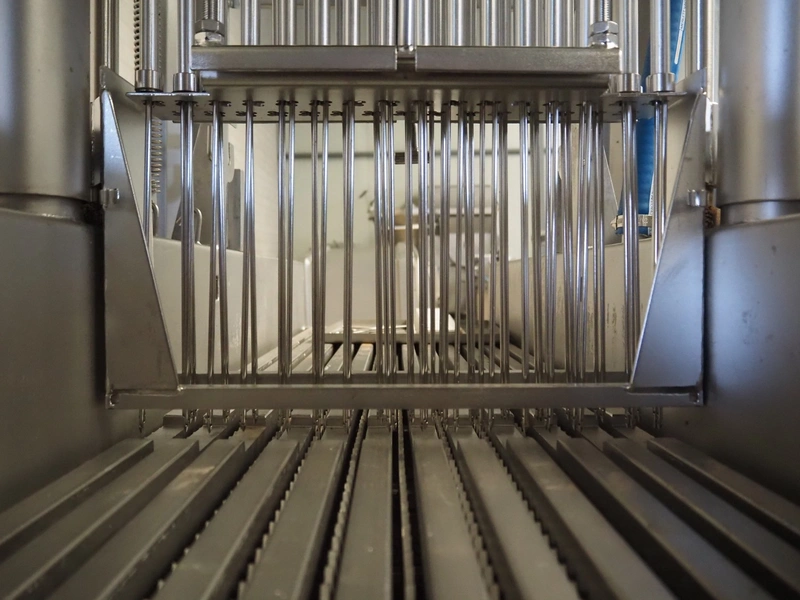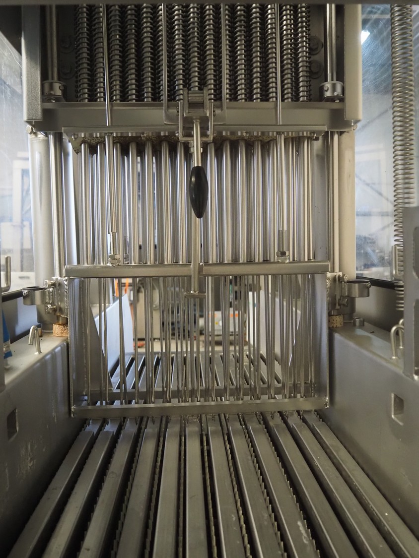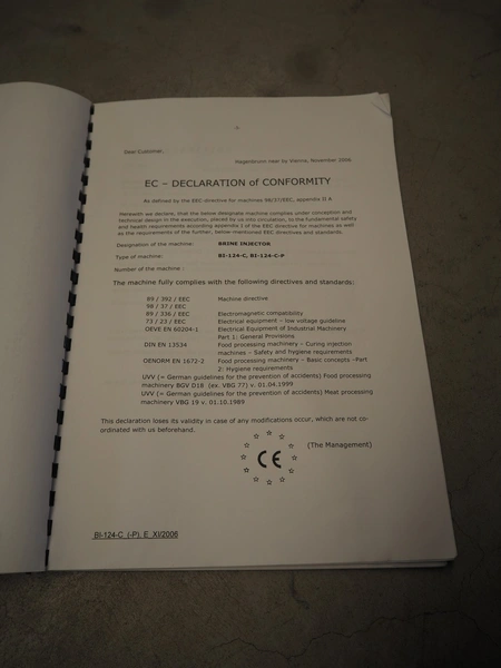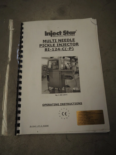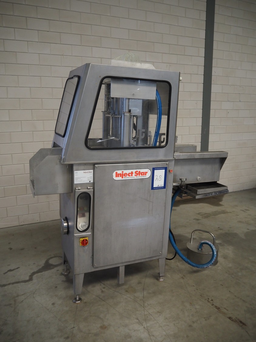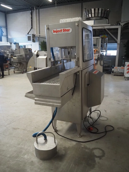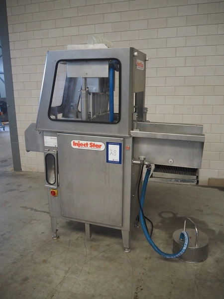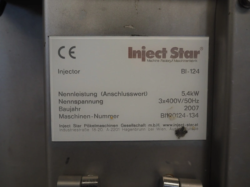 Inject Star injector, model: BI-124, machine number: BI100124-134, year of construction: 2007, 400 V, 3 Ph, 50 Hz, 5.4 kW, 62 needles, s/s walking beam, beam width: 410 mm, total dimensions: 1800 mm x 1000 mm x 1950 mm.