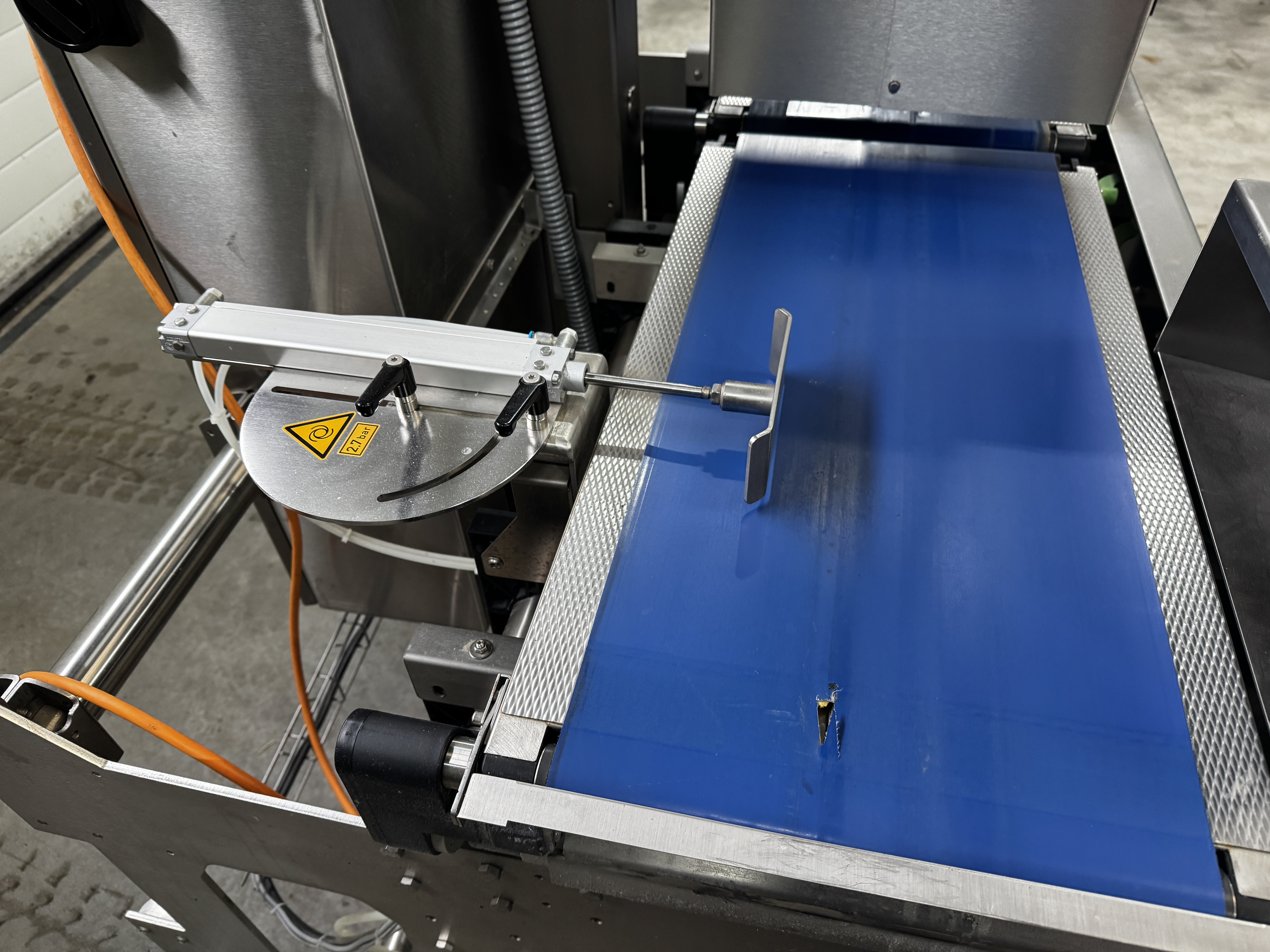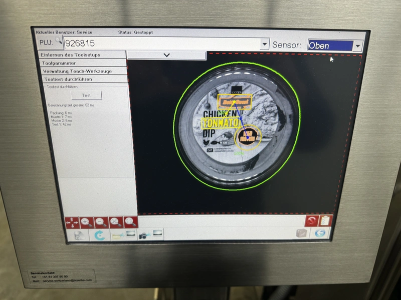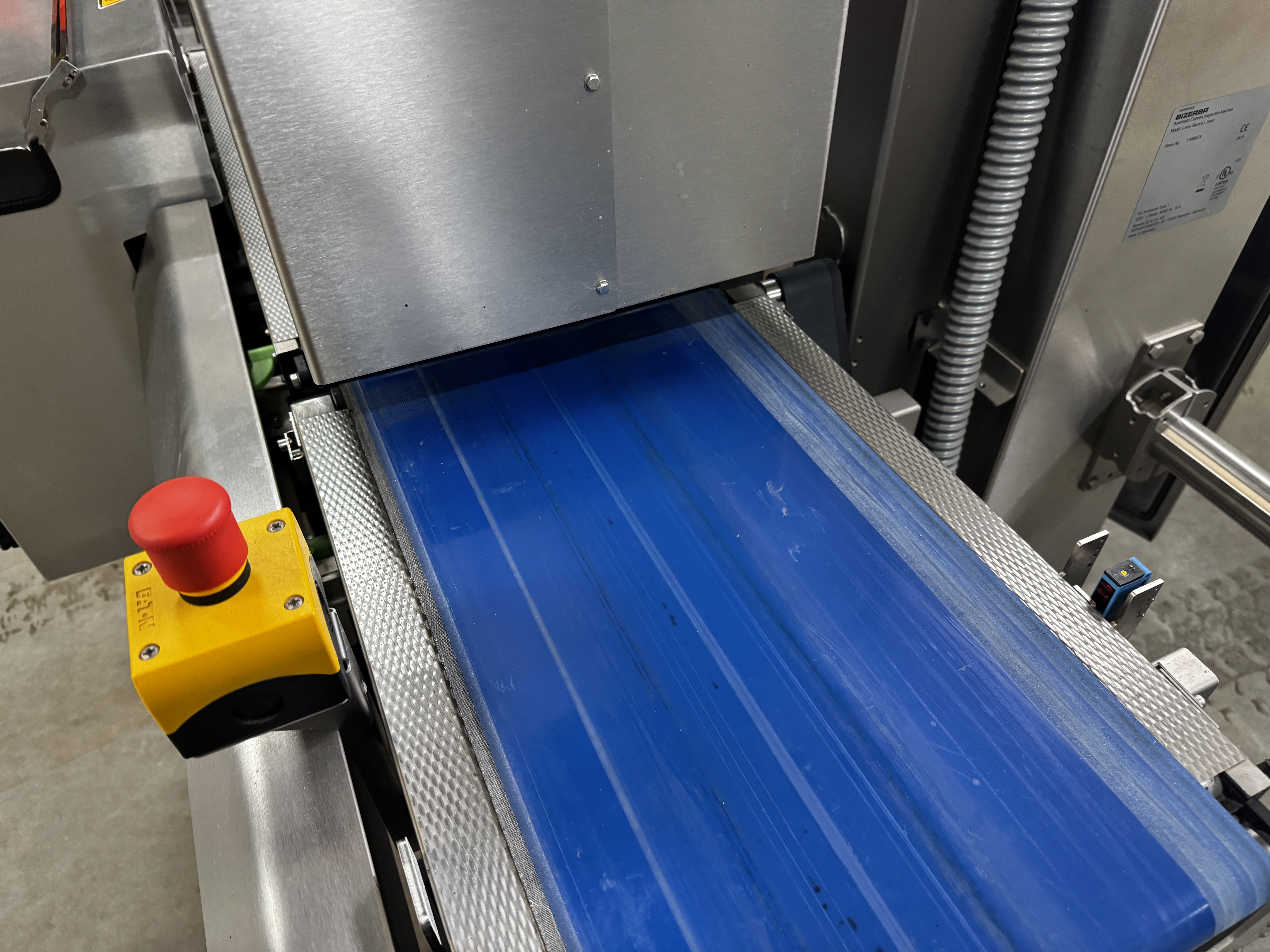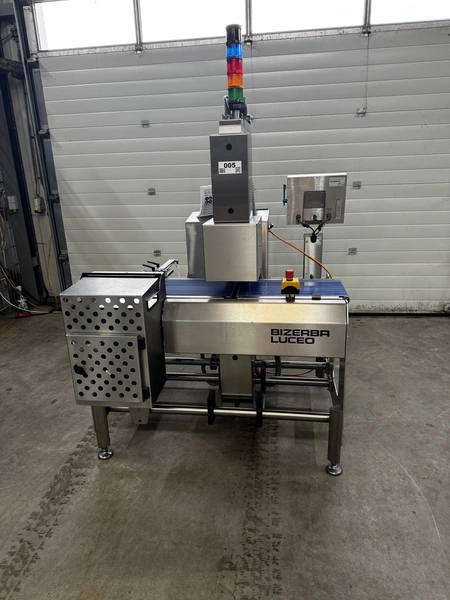 Bizerba labelling machine with ejector, model: Label Secure L Basic, serial number: 11698075, year of construction: 2019, 230 V, 1 Ph, 50/60 Hz, 10 A, dimensions: 1300 mm x 1200 mm x 2100 mm.