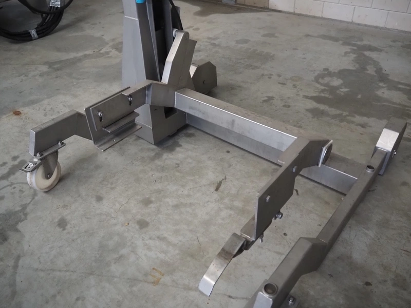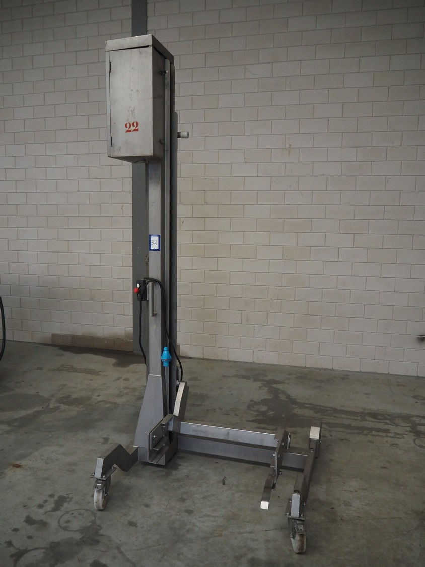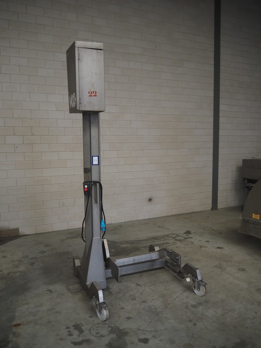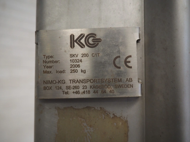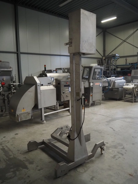 Nimo-KG transportsystem AB mobile lifter for 200 liter meat bins, type: SKV 200 C1T, number: 10324, year of construction: 2006, capacity: 250 kg, dimensions: 1200 mm x 1300 mm x 2650 mm.