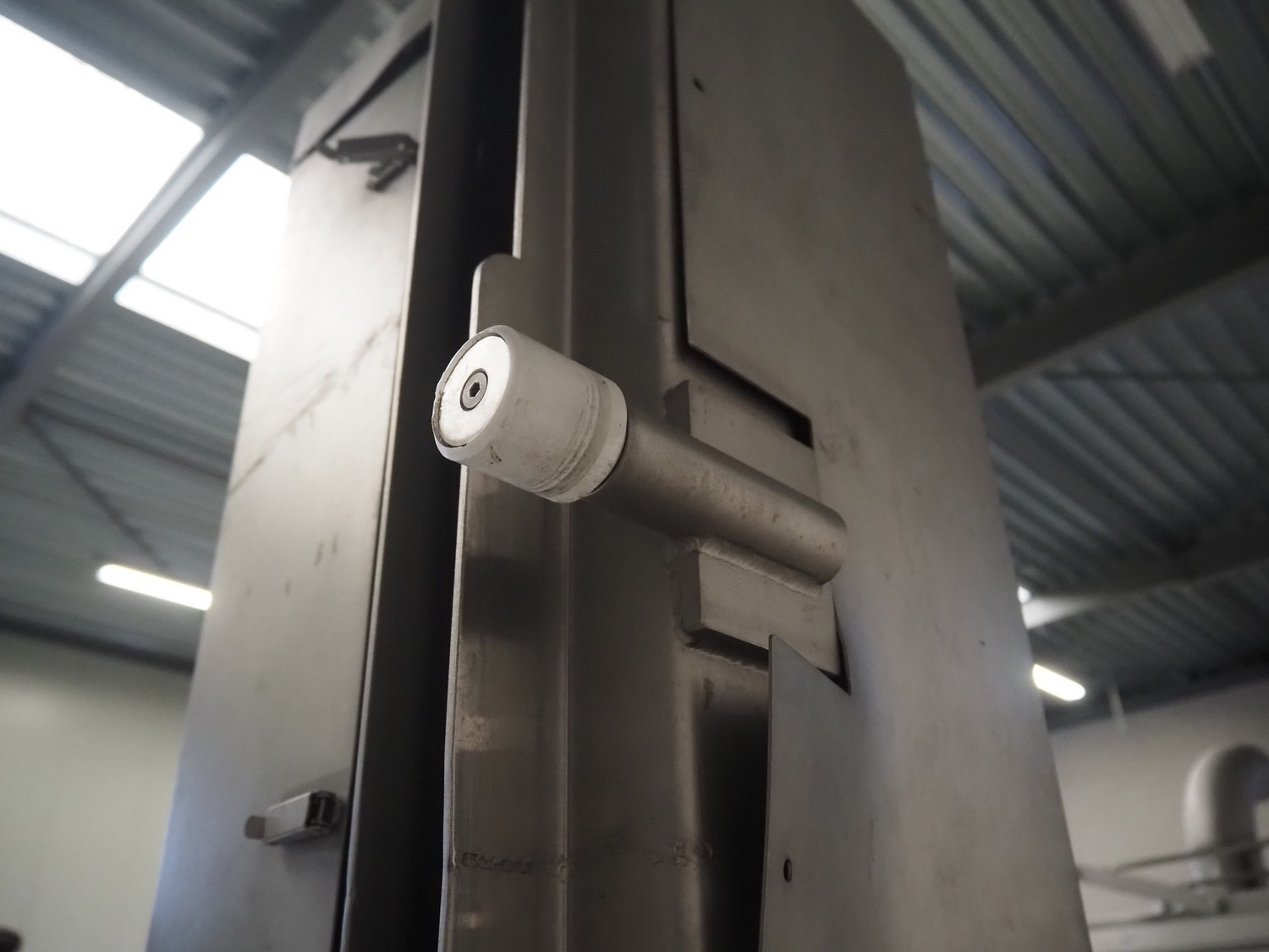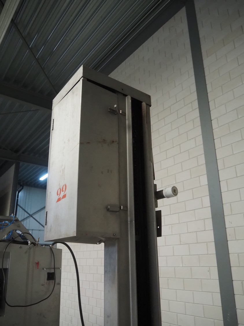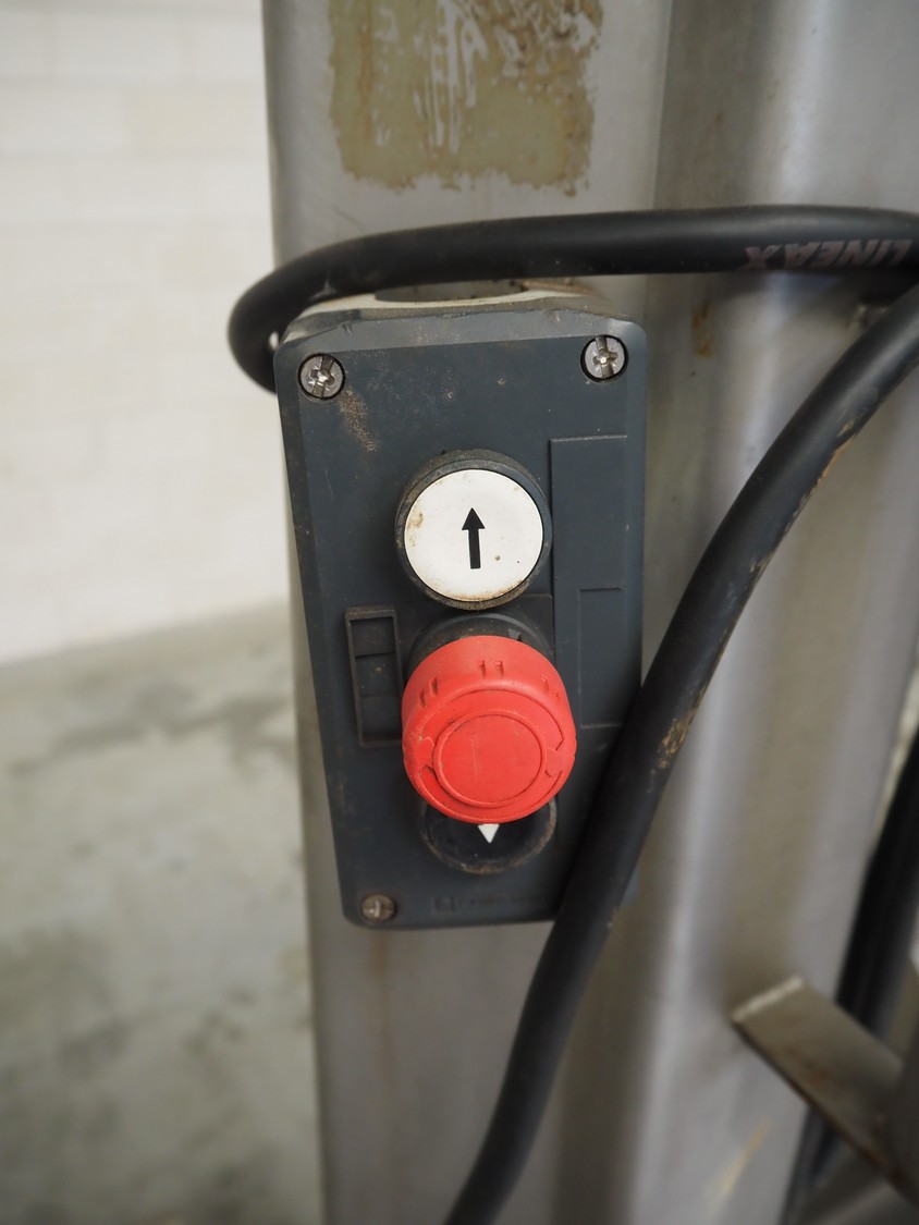 Nimo-KG transportsystem AB mobile lifter for 200 liter meat bins, type: SKV 200 C1T, number: 10324, year of construction: 2006, capacity: 250 kg, dimensions: 1200 mm x 1300 mm x 2650 mm.