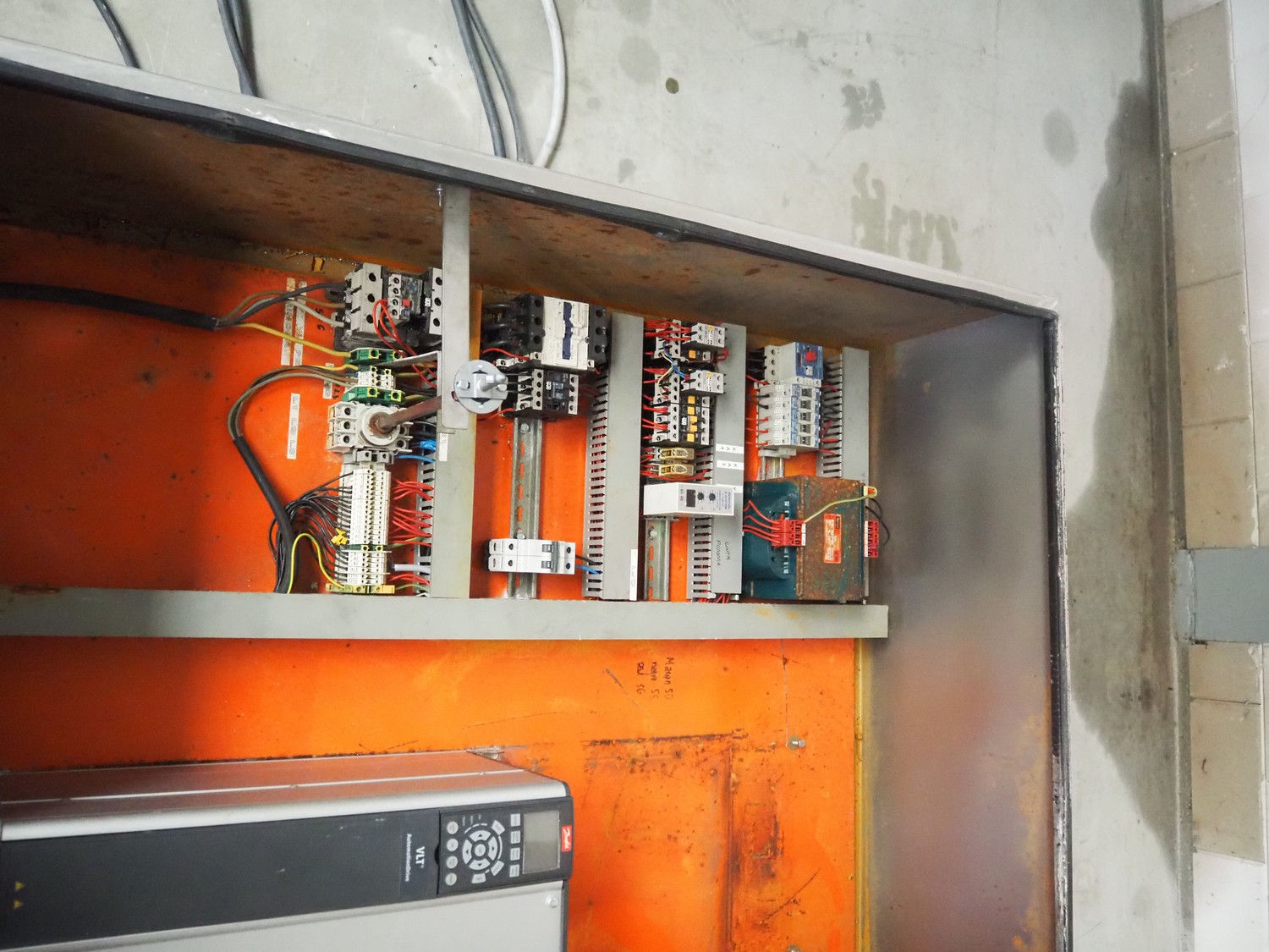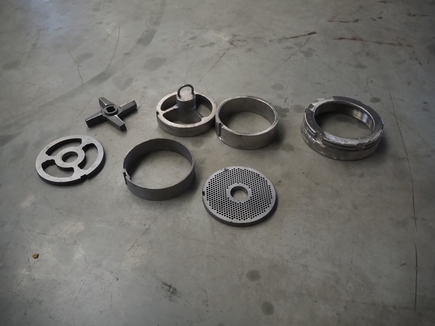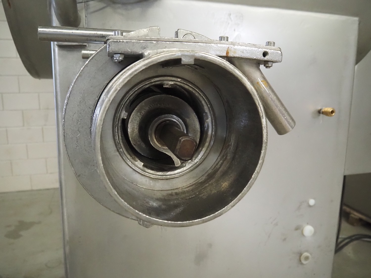 Wolfking mixer-grinder, type: SFG 850/200, 22 kW, plate diameter: 200 mm, total dimensions: 1670 mm x 1600 mm x 2030 mm. Dimensions switch cabinet: 1200 mm x 100 mm x 450 mm. Including plates and knife.