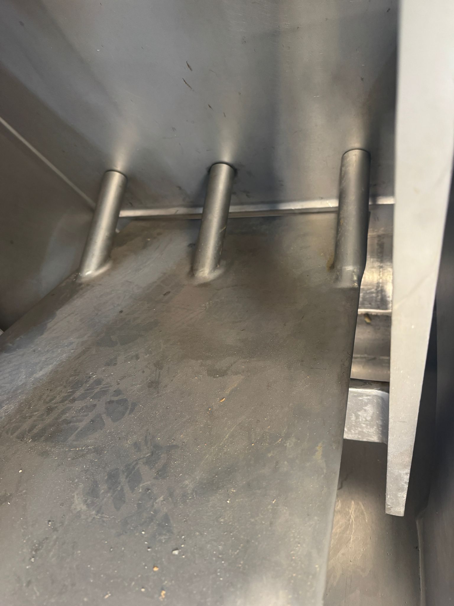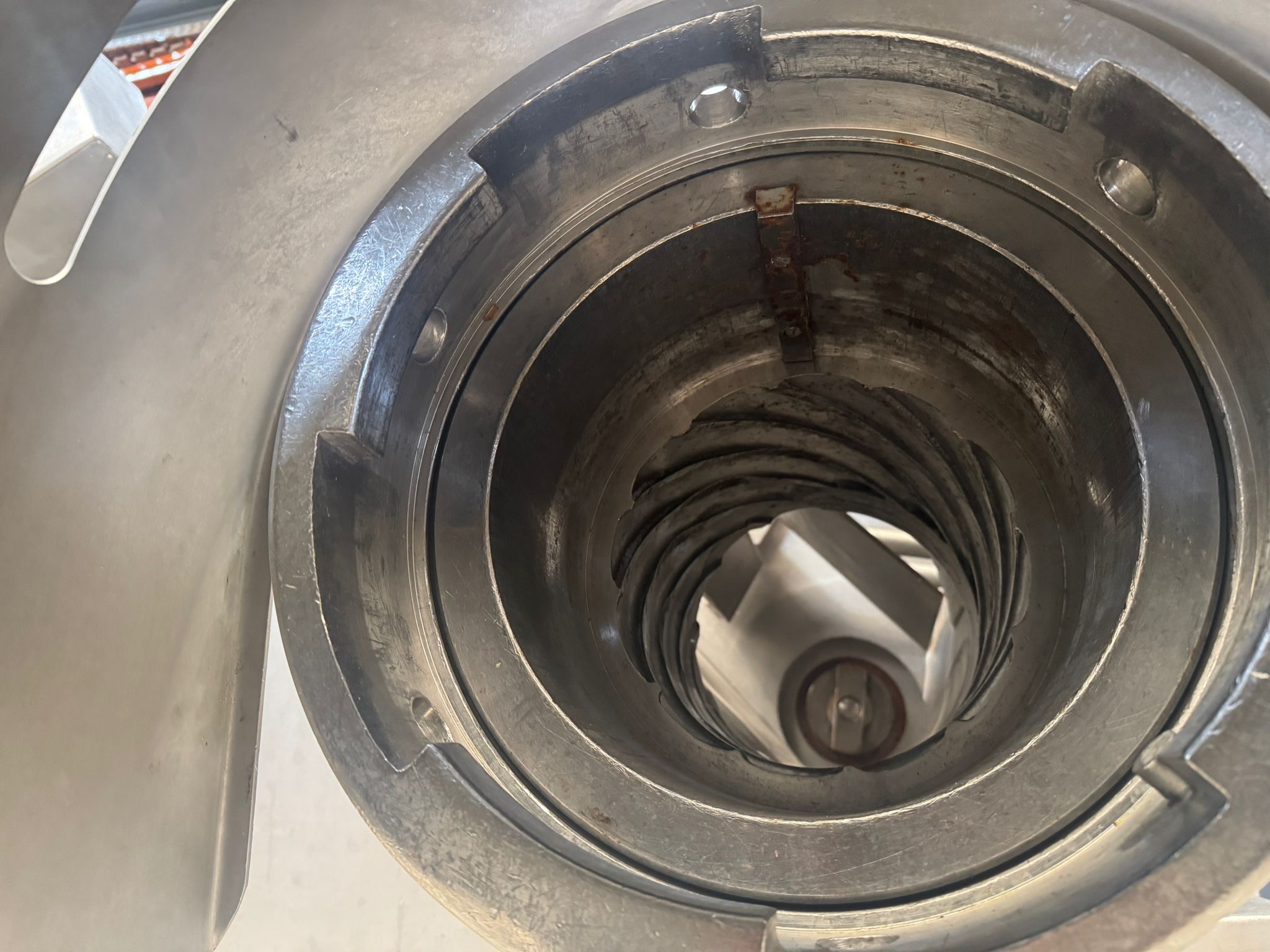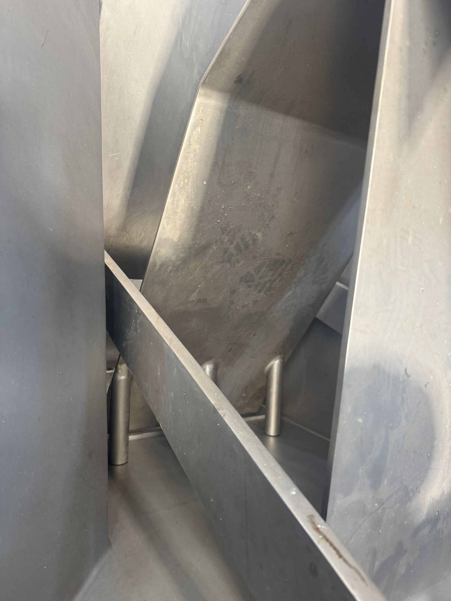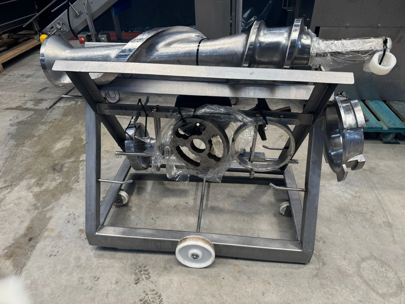 Seydelmann grinder with mobile elevating belt, model: GW 300, 78/105 kW, weight: 3300 kg, capacity: 10.000 kg per hour, plate diameter: 300 mm, total dimensions: 2700 mm x 1500 mm x 2400 mm. Dimensions elevating belt: 2500 mm x 900 mm x 2100 mm.