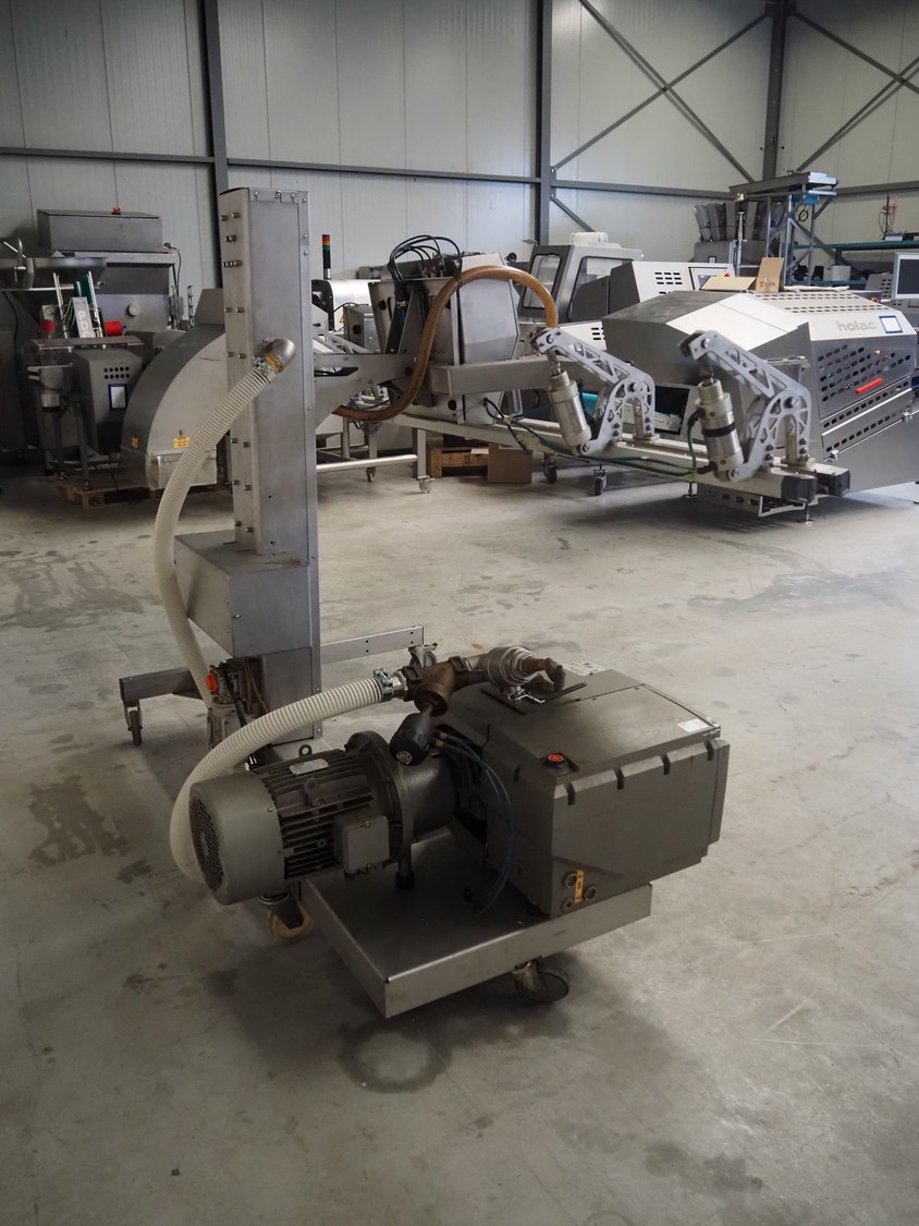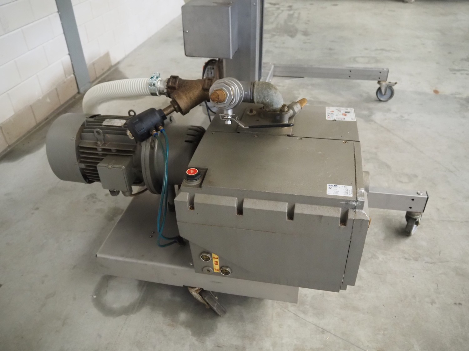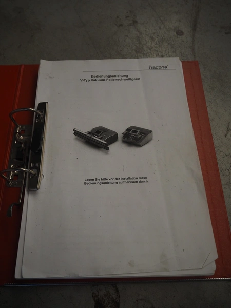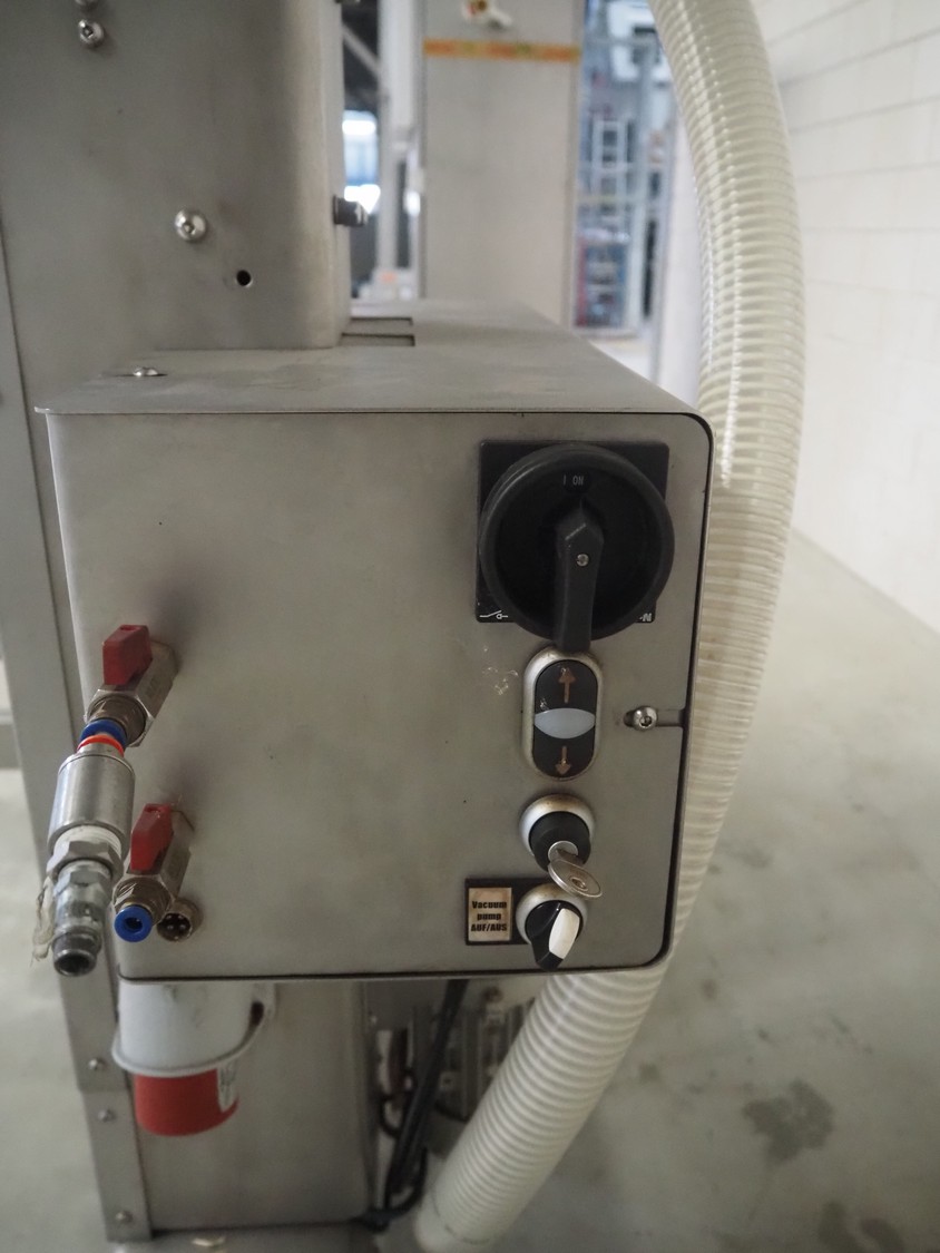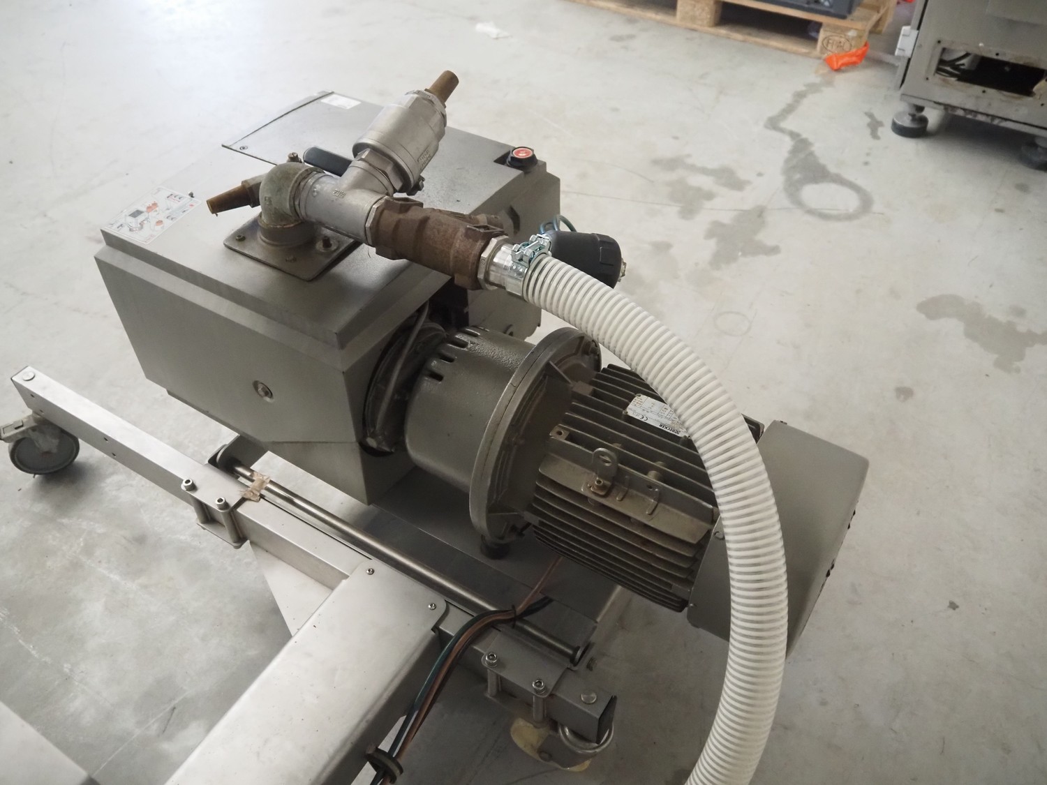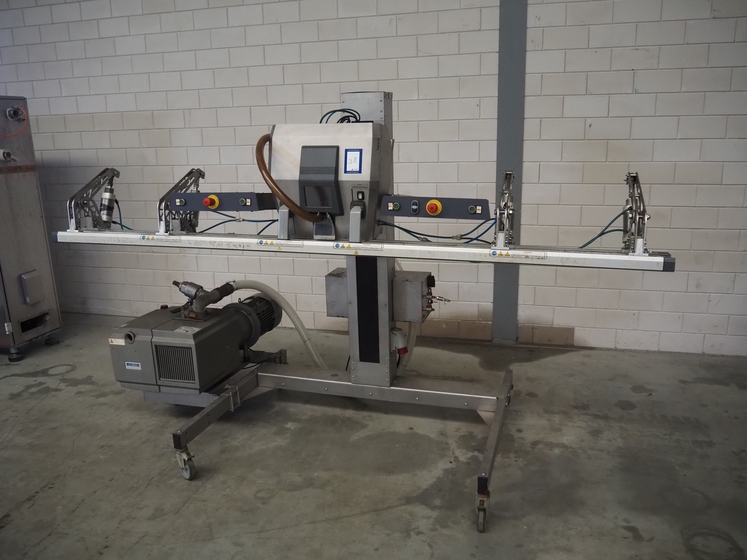 Hacona mobile bag sealing machine, model: V-Type, 230 V, 2500 W, seal length: 2750 mm, Becker vacuum pump, type: U4.300, capacity: 291/342 m³ per hour, total dimensions: 2750 mm x 1400 mm x 1850 mm. With extra seals.