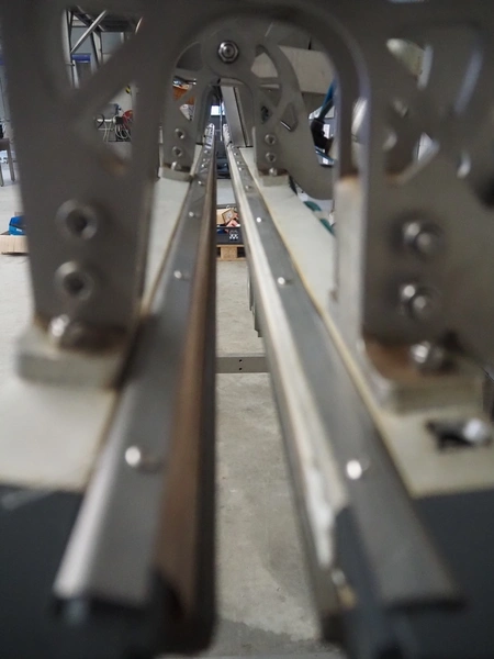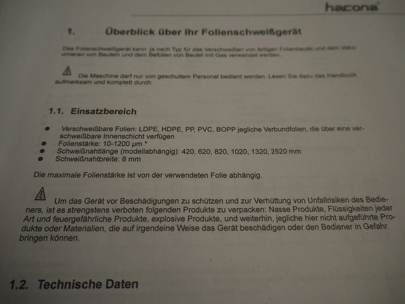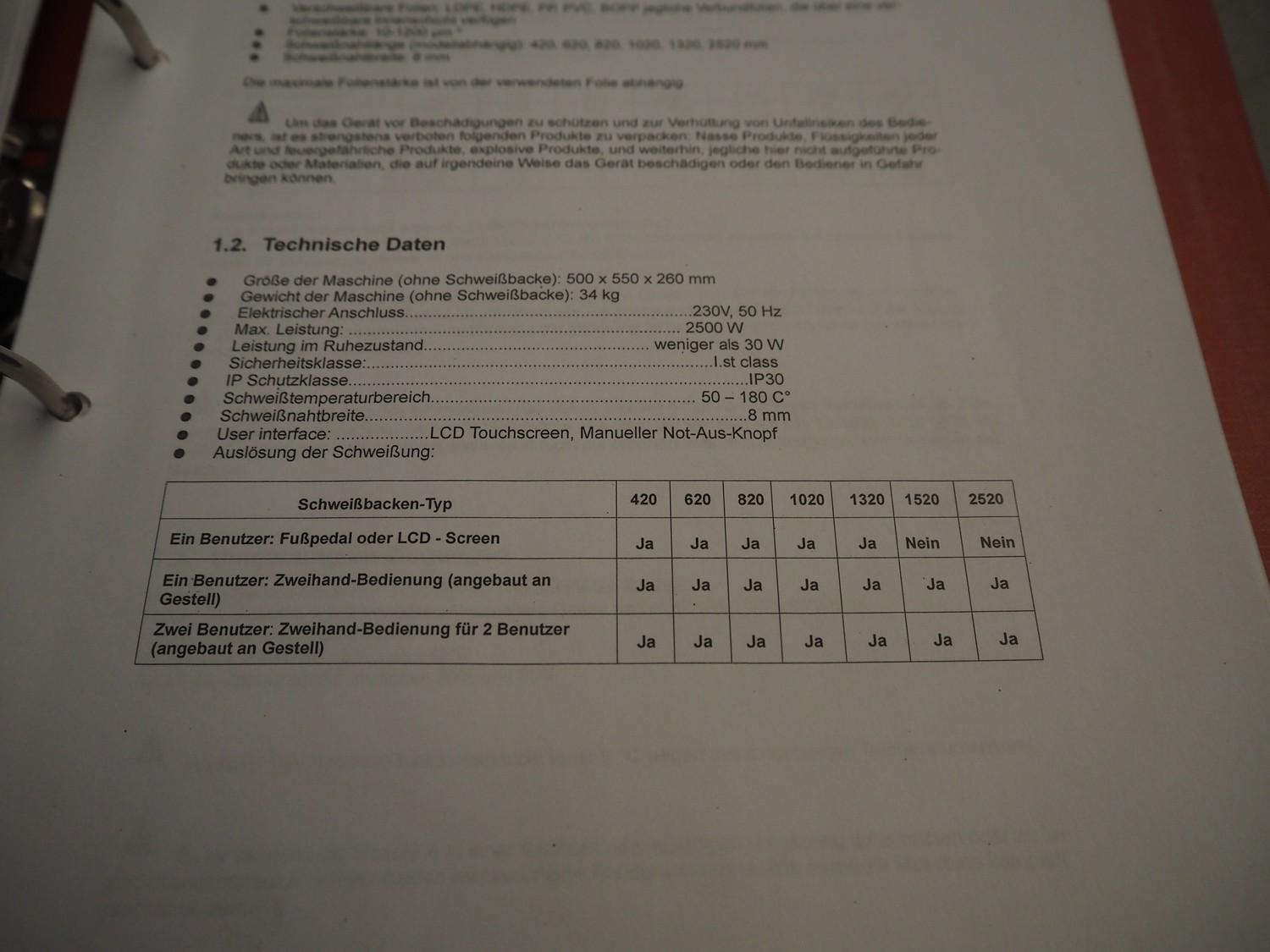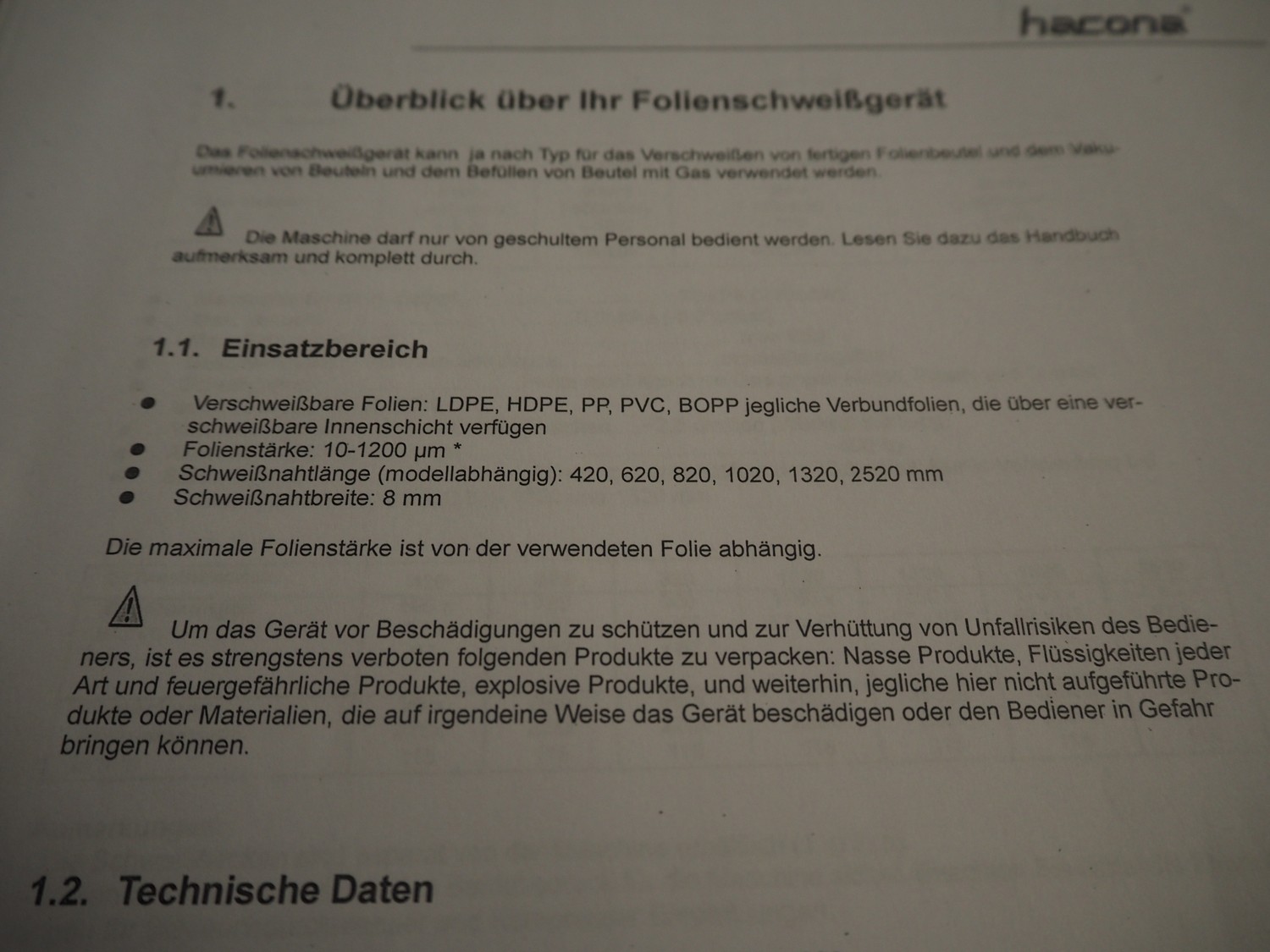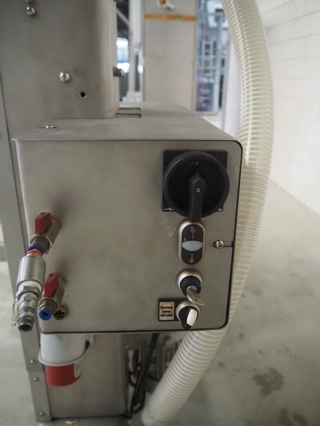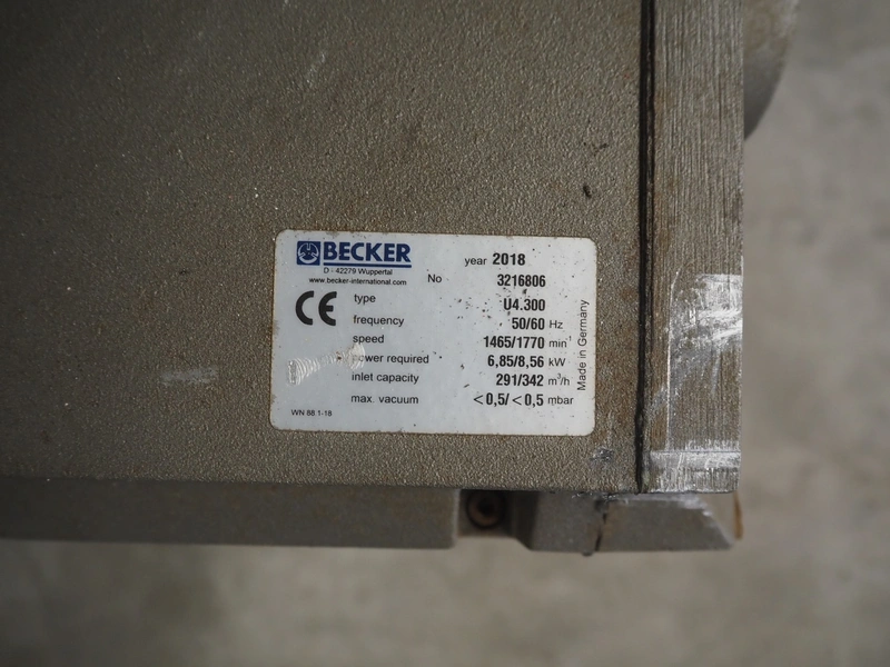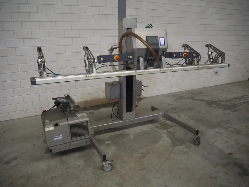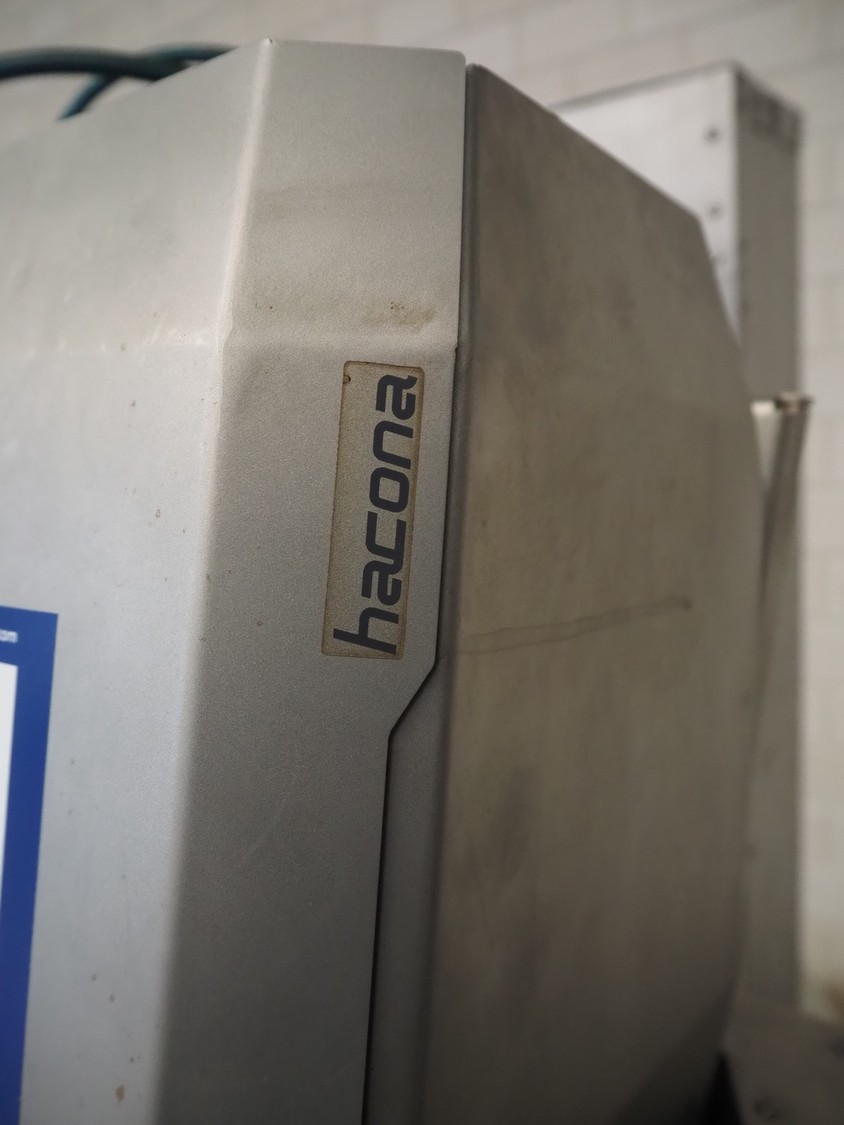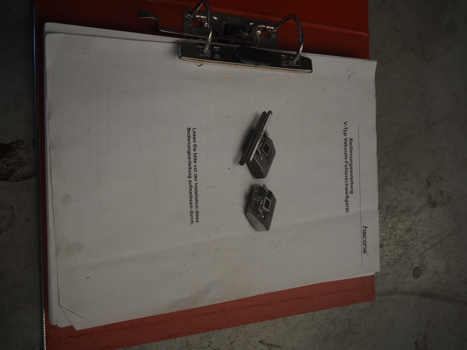 Hacona mobile bag sealing machine, model: V-Type, 230 V, 2500 W, seal length: 2750 mm, Becker vacuum pump, type: U4.300, capacity: 291/342 m³ per hour, total dimensions: 2750 mm x 1400 mm x 1850 mm. With extra seals.