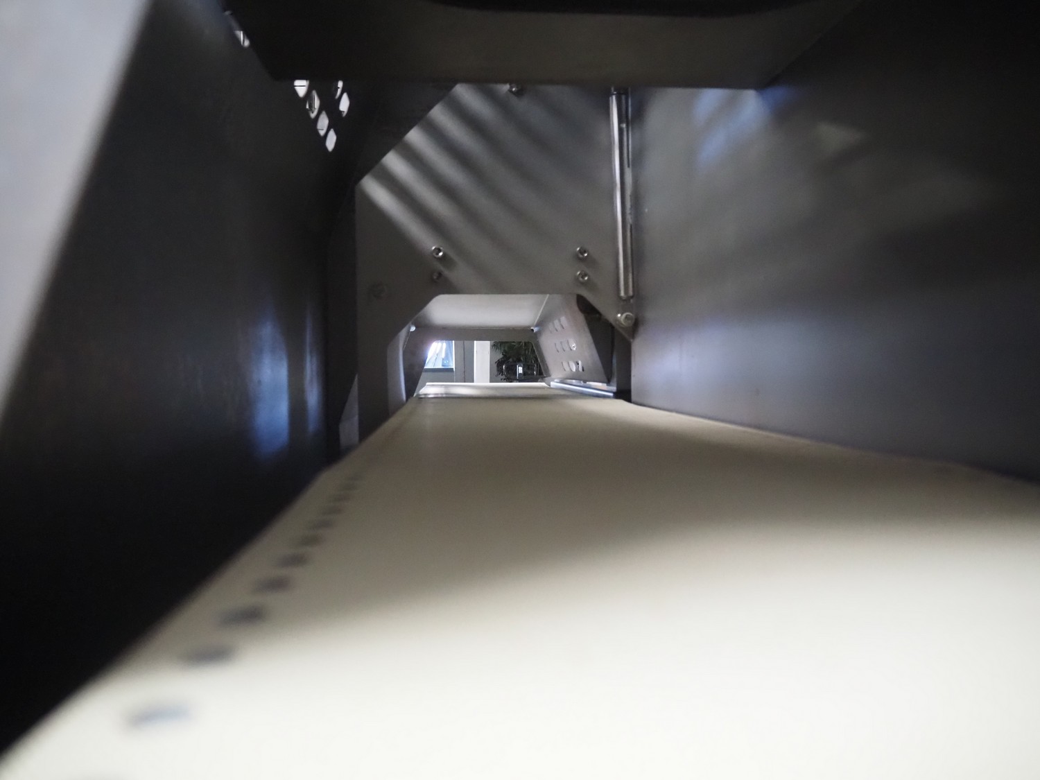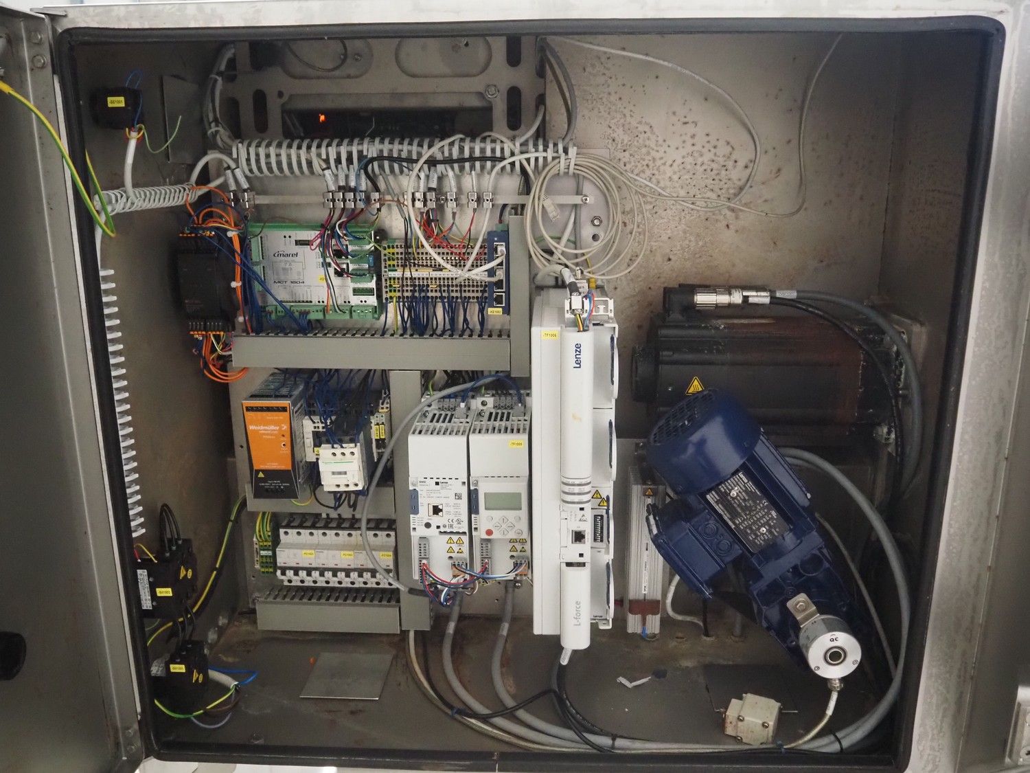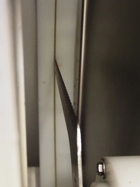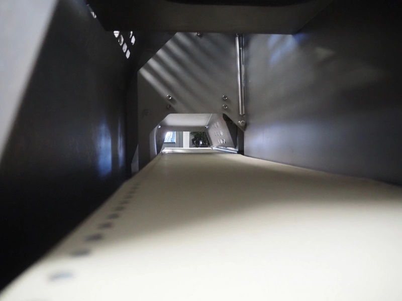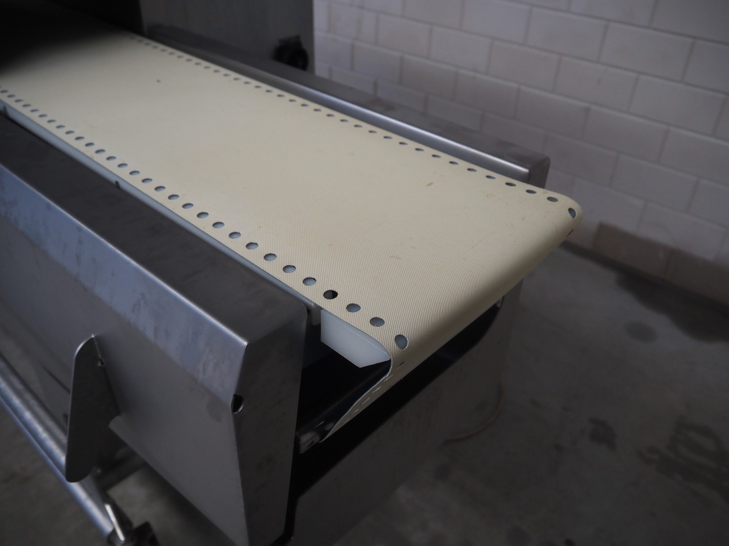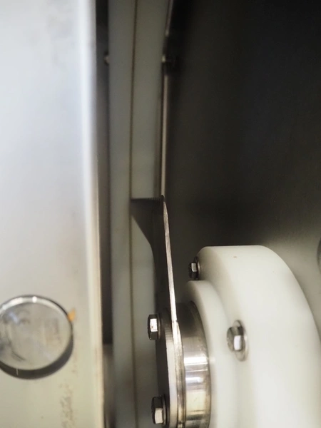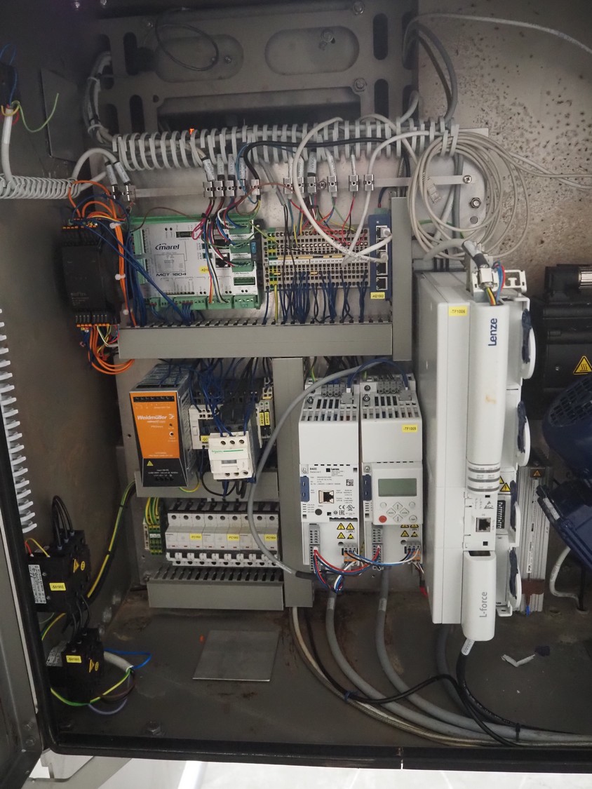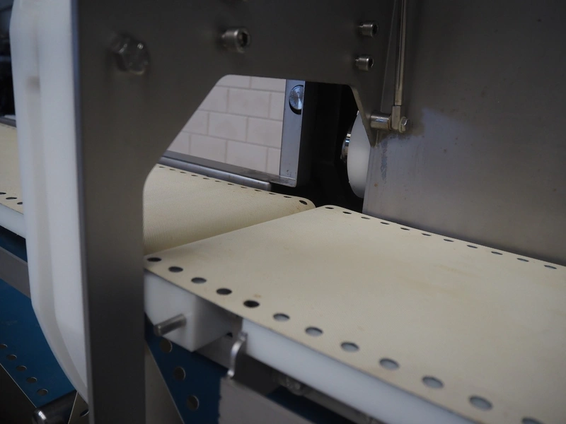Marel mobile portion cutter, model: I-Cut 10, serial number: A094528, year of construction: 2012, 380/480 V, 3 Ph, 50/60 Hz, 5.7/10/16 A, clearance: 280 mm x 105 mmm, plastic belt, belt width: 280 mm, total dimensions: 2880 mm x 1750 mm x 1750 mm.