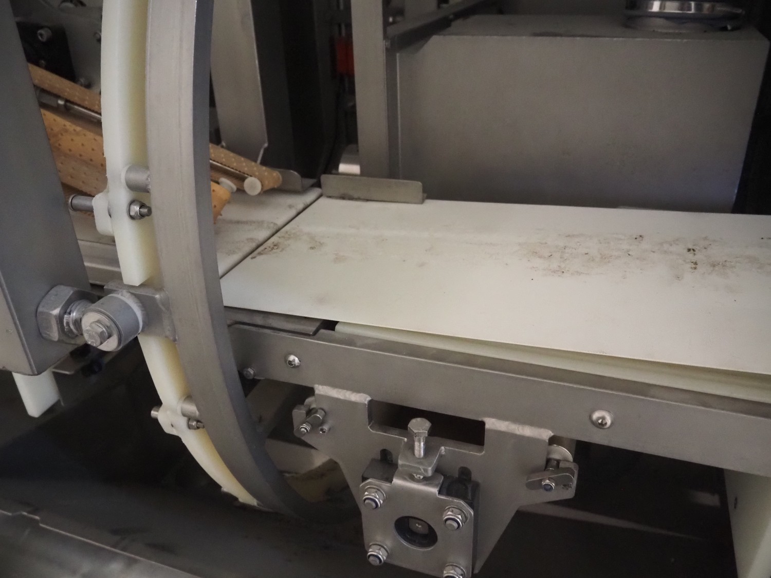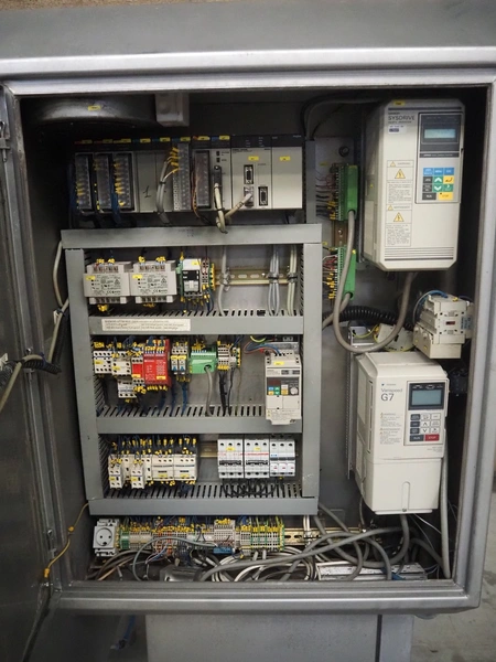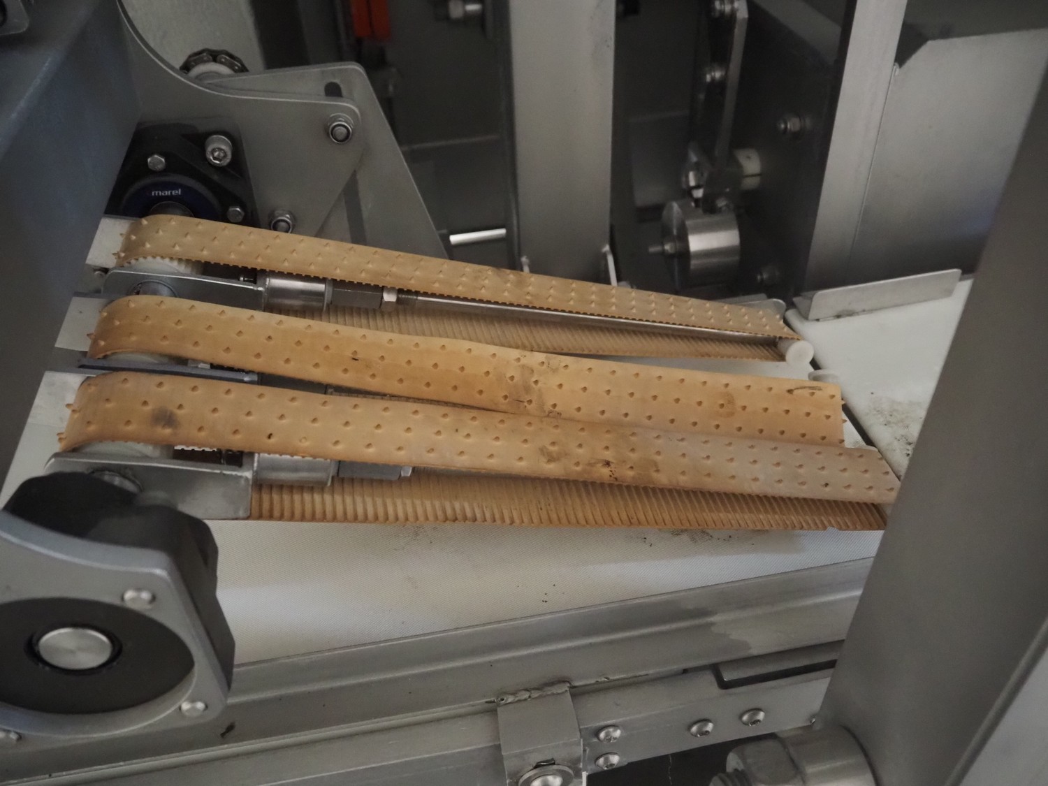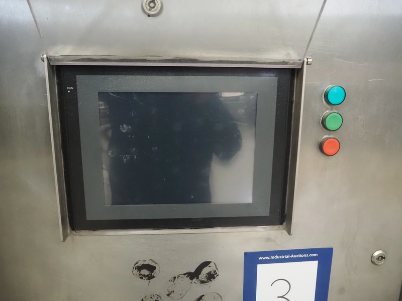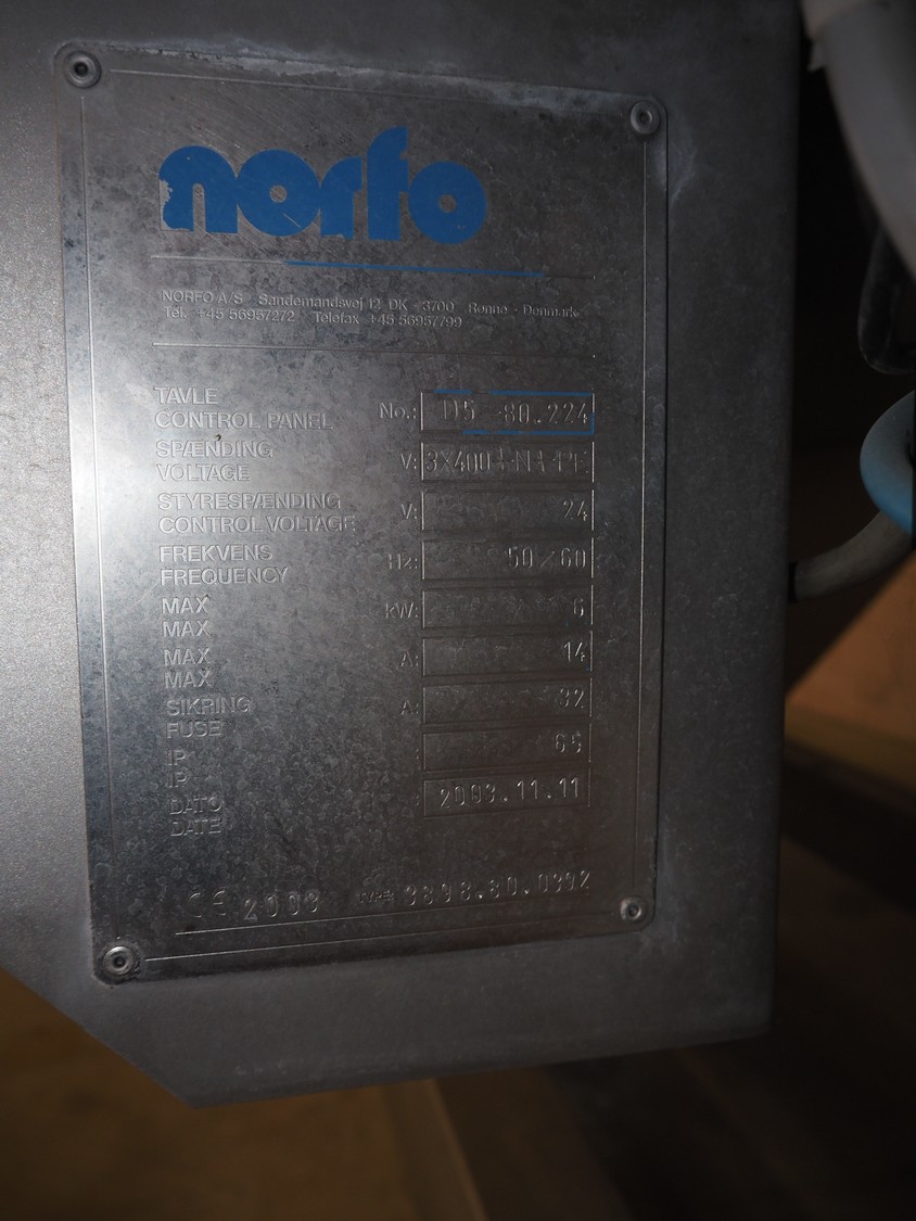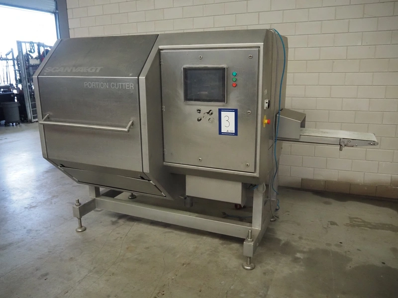 Scanvaegt / Norfo portion cutter, type: 3898.80.0392, number: D.80.224, year of construction: 2008, 400 V, 3 Ph, 50/60 Hz, 14/32 A, 6 kW, plastic belts, belt width: 300 mm, clearance: 350 mm x 110 mm, total dimensions: 3000 mm x 1900 mm x 1470 mm.