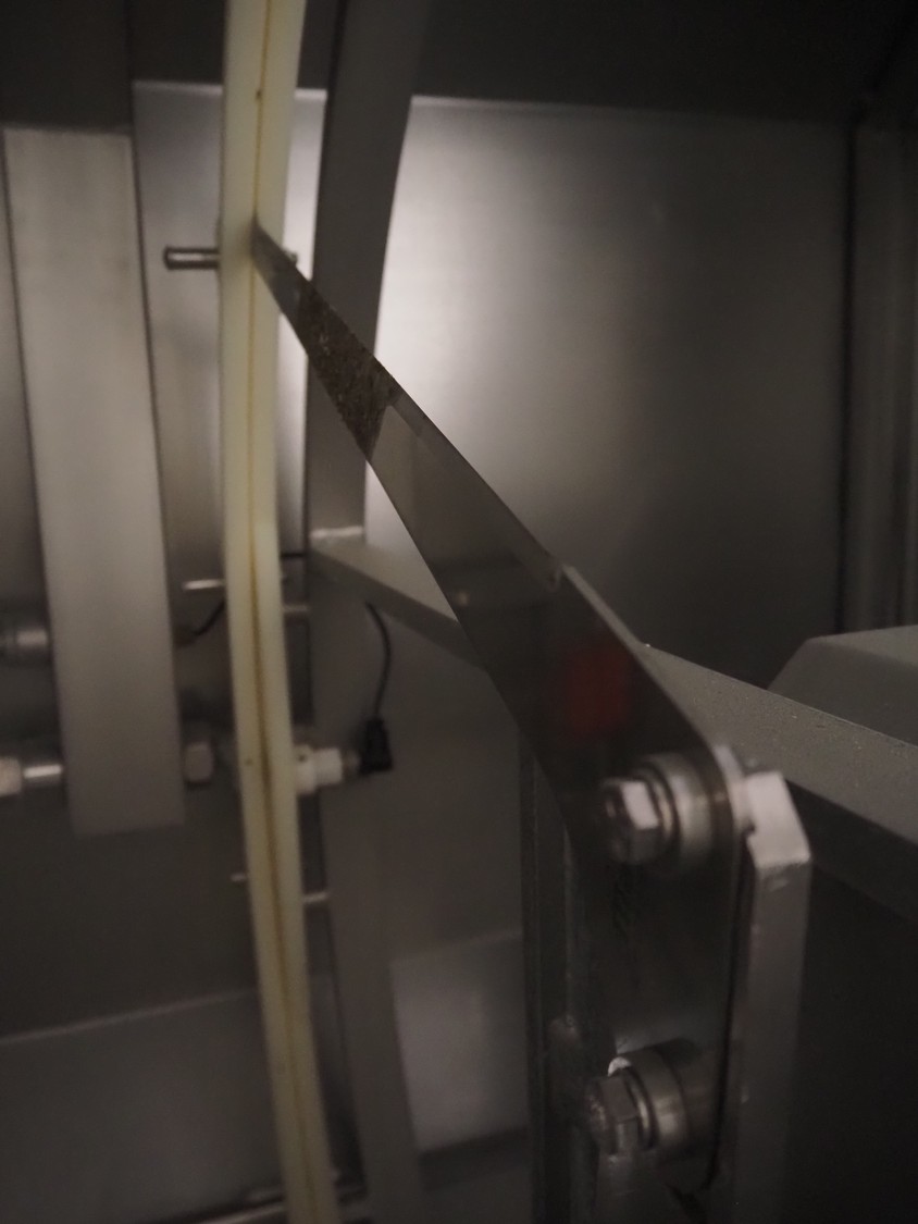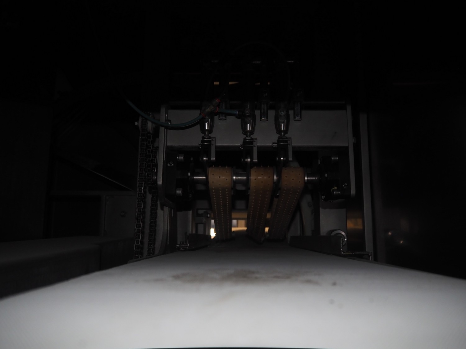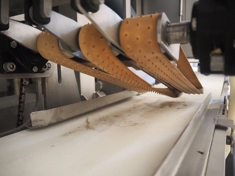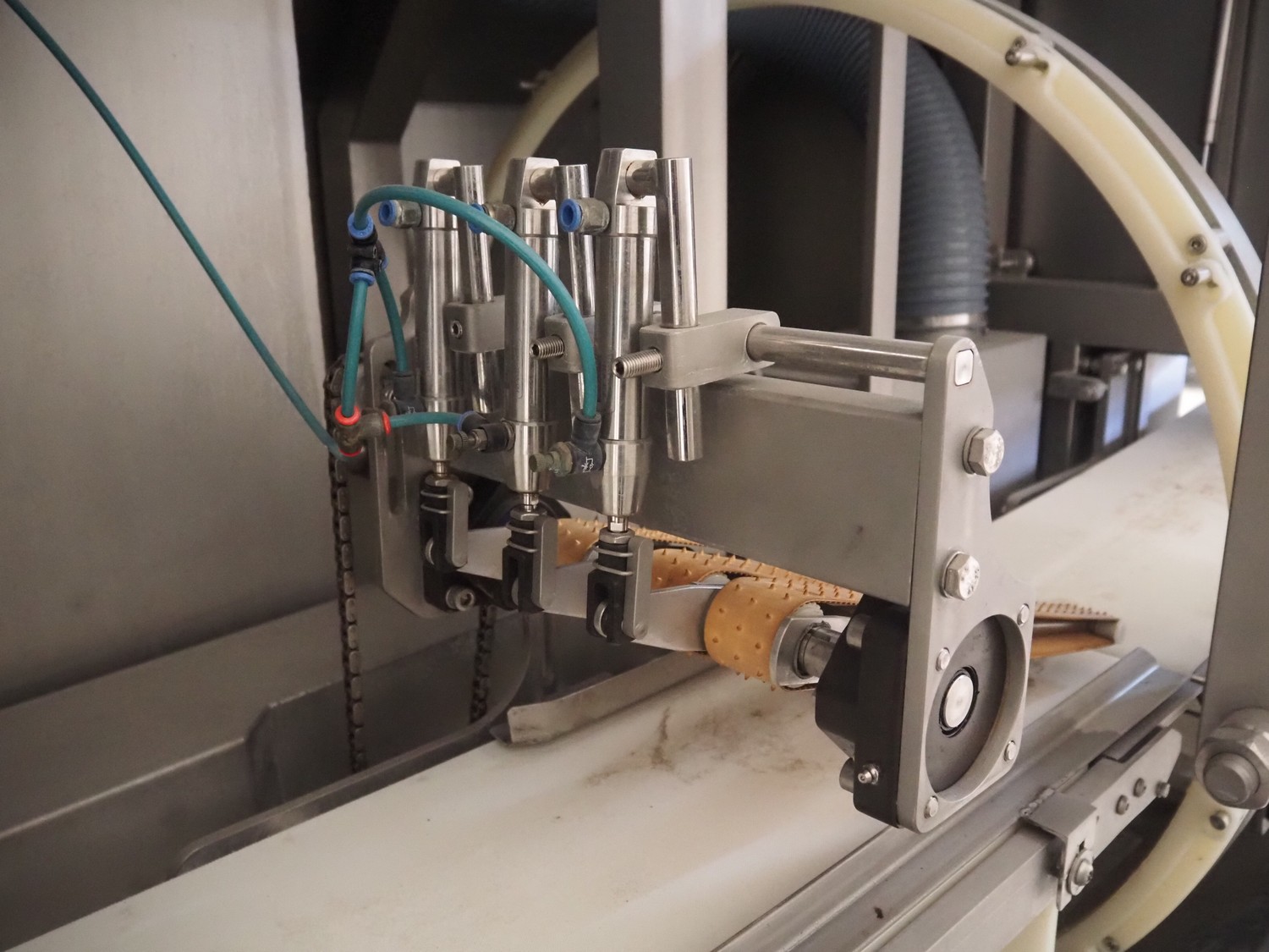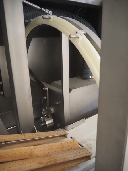 Scanvaegt / Norfo portion cutter, type: 3898.80.0392, number: D.80.224, year of construction: 2008, 400 V, 3 Ph, 50/60 Hz, 14/32 A, 6 kW, plastic belts, belt width: 300 mm, clearance: 350 mm x 110 mm, total dimensions: 3000 mm x 1900 mm x 1470 mm.