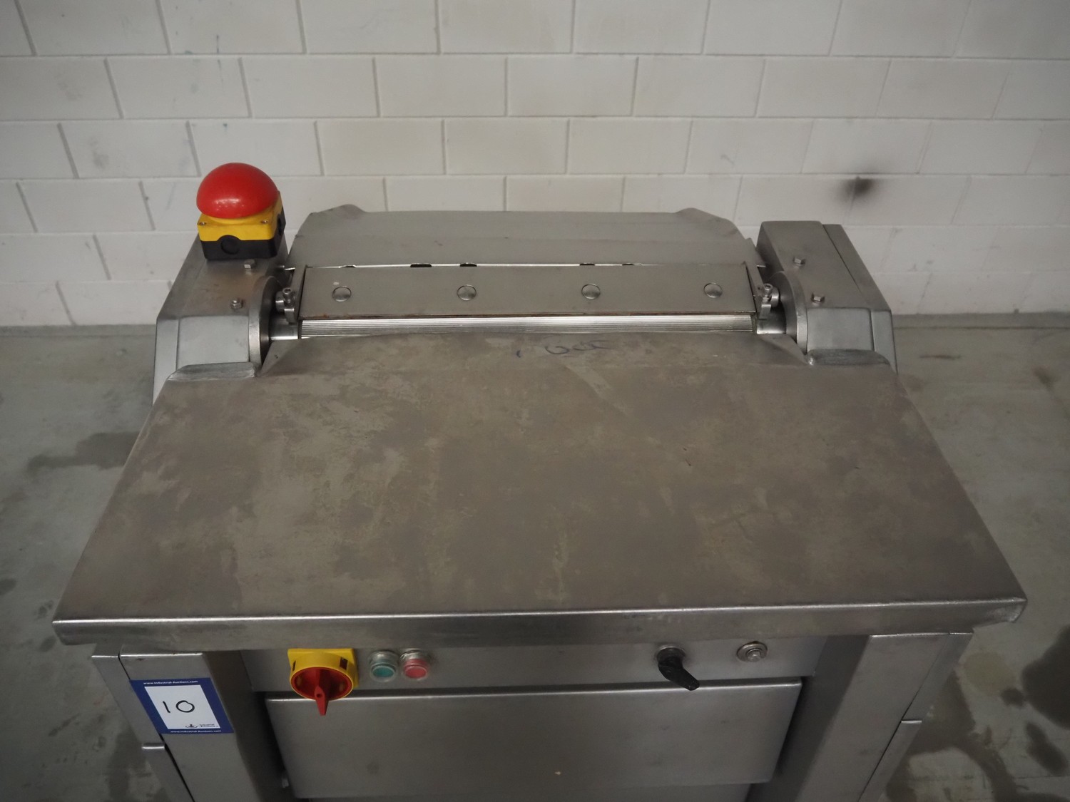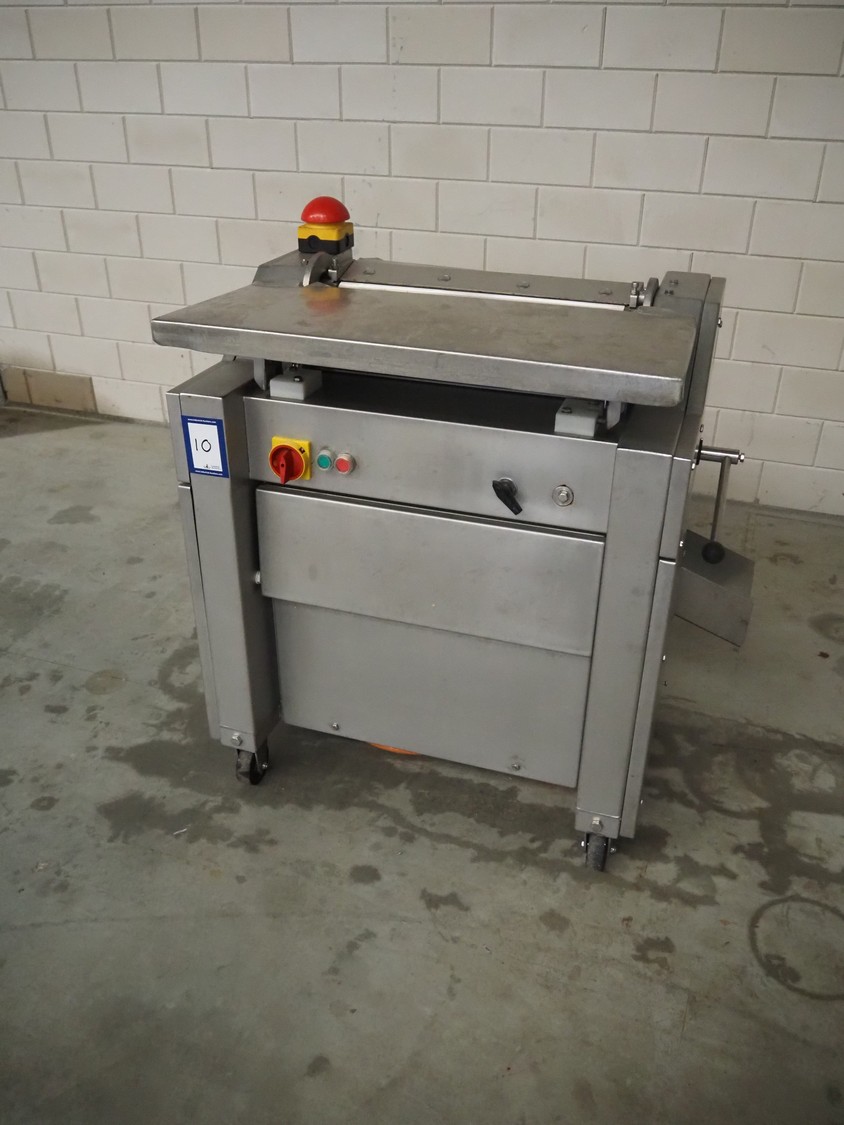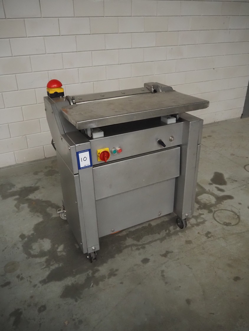Townsend mobile skinning machine, model: 7500, serial number: 945, year of construction: 1991, 380 V, 3 Ph, 50 Hz, 2.0 A, working width: 510 mm, total dimensions: 770 mm x 900 mm x 1000 mm.