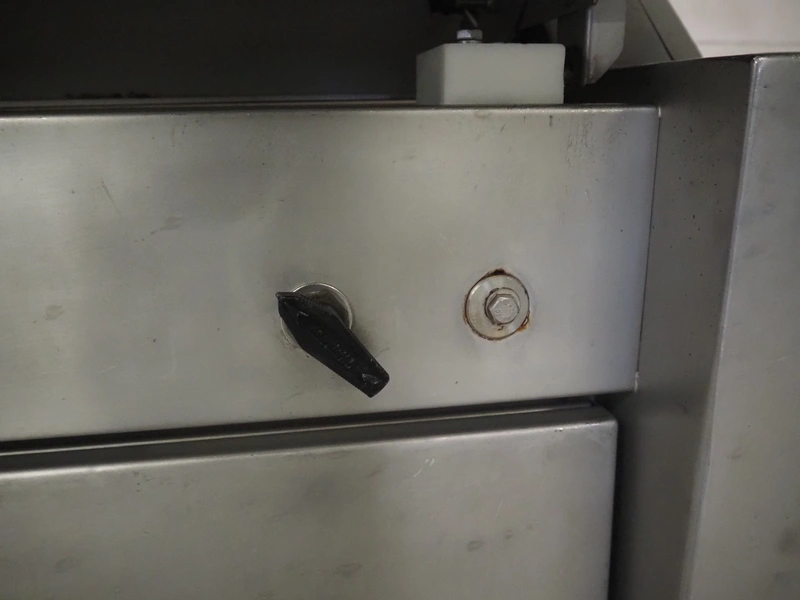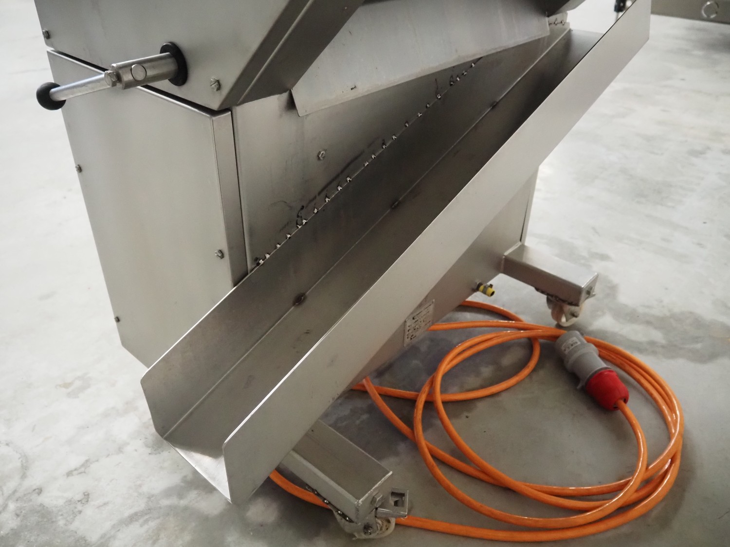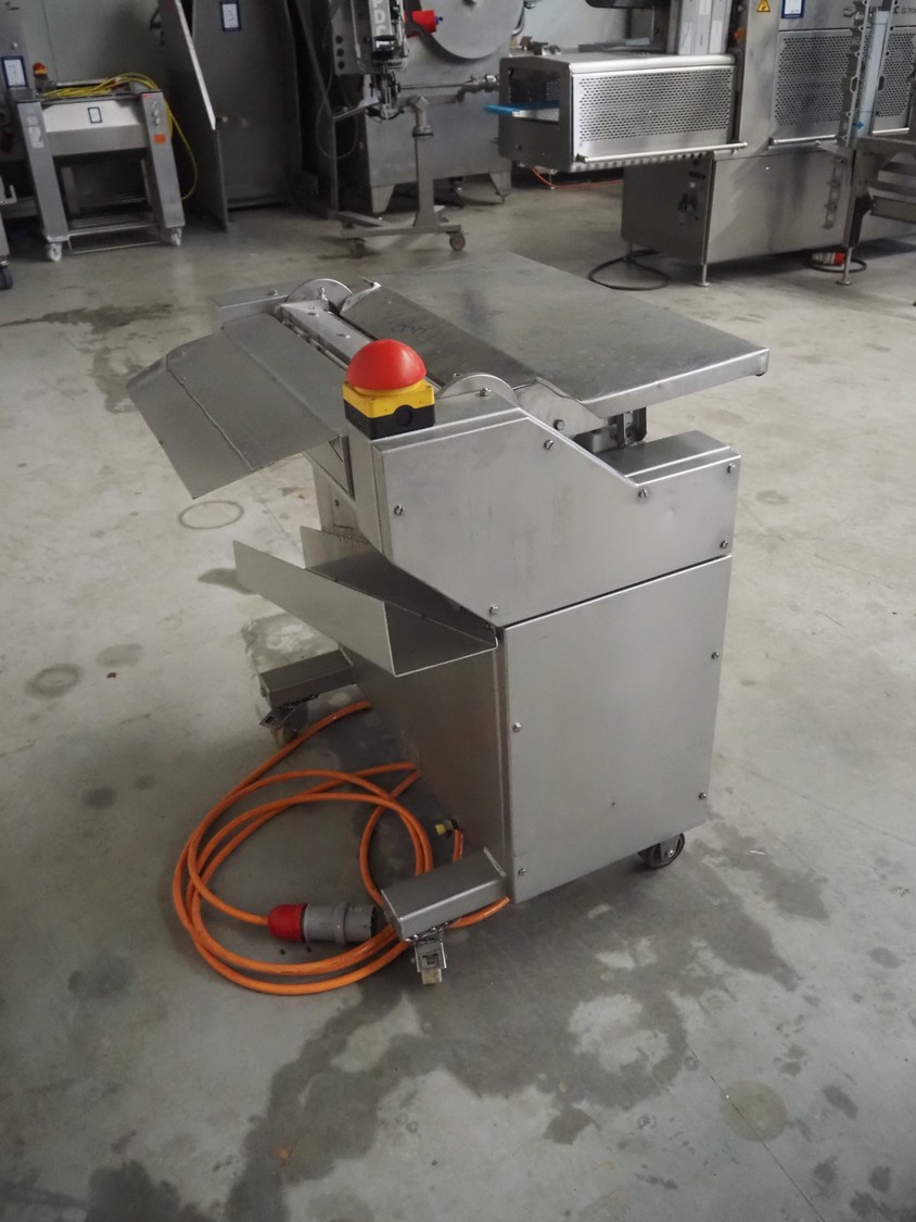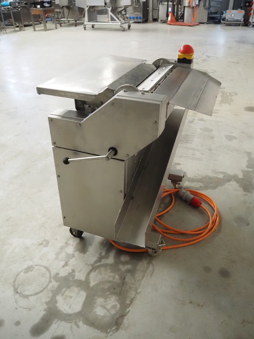 Townsend mobile skinning machine, model: 7500, serial number: 945, year of construction: 1991, 380 V, 3 Ph, 50 Hz, 2.0 A, working width: 510 mm, total dimensions: 770 mm x 900 mm x 1000 mm.