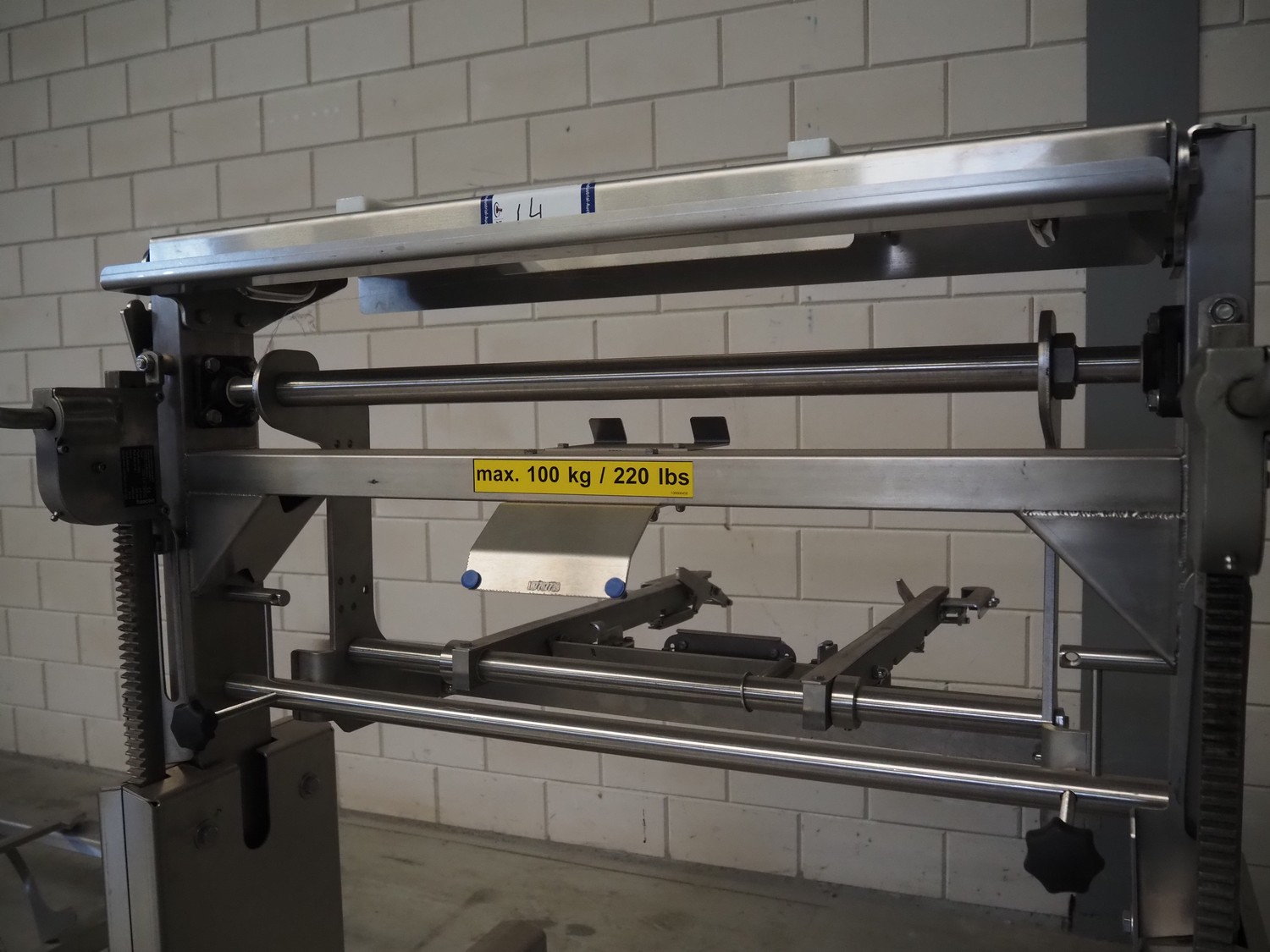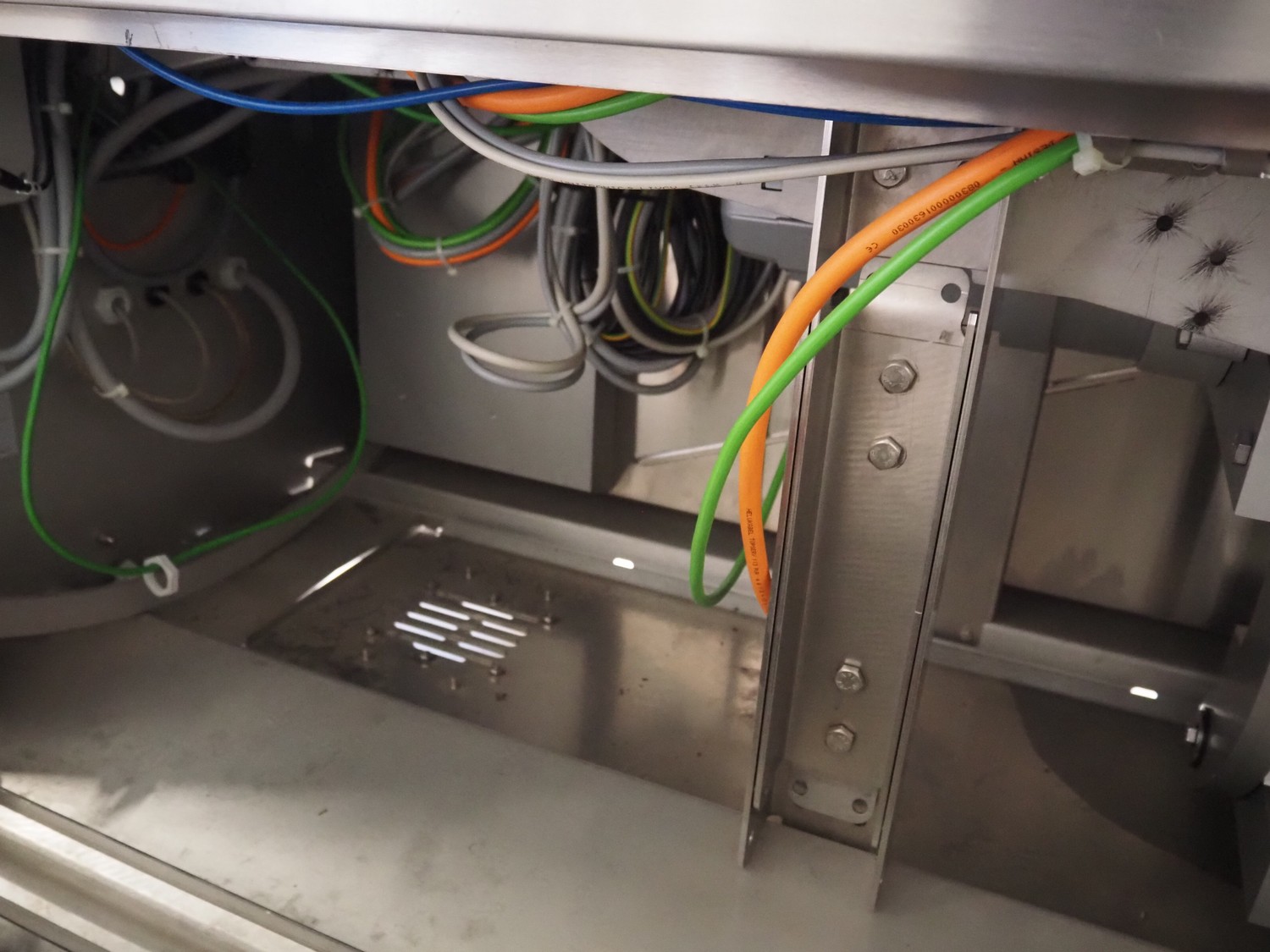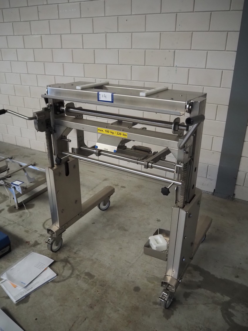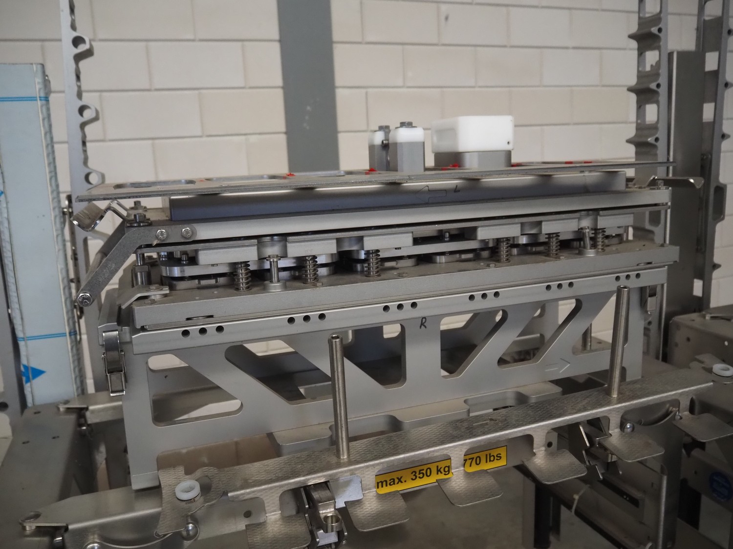 Multivac traysealer, type: G700, serial number: 260230, year of construction: 2018, 400/230 V, 3 Ph, 50 Hz, 22/32 A, 4.7 kW, film width: 410 mm, infeed chain with dividers, chain width: 165 mm, divider height: 10 mm, distance between dividers: 100 mm, dye: (6x) 180 mm x 90 mm, plastic outfeed belt, belt width: 245 mm, total dimensions: 3450 mm x 2100 mm x 900 mm. Including pallet with parts, 2 trolleys with dye's, dye: (6x) 190 mm x 95 mm, (6x) 175 mm x 95 mm, trolley dimensions: (2x) 1300 mm x 650 mm x 1680 mm, trolley to change dye's, dimensions: 1200 mm x 1100 mm x 1230 mm.