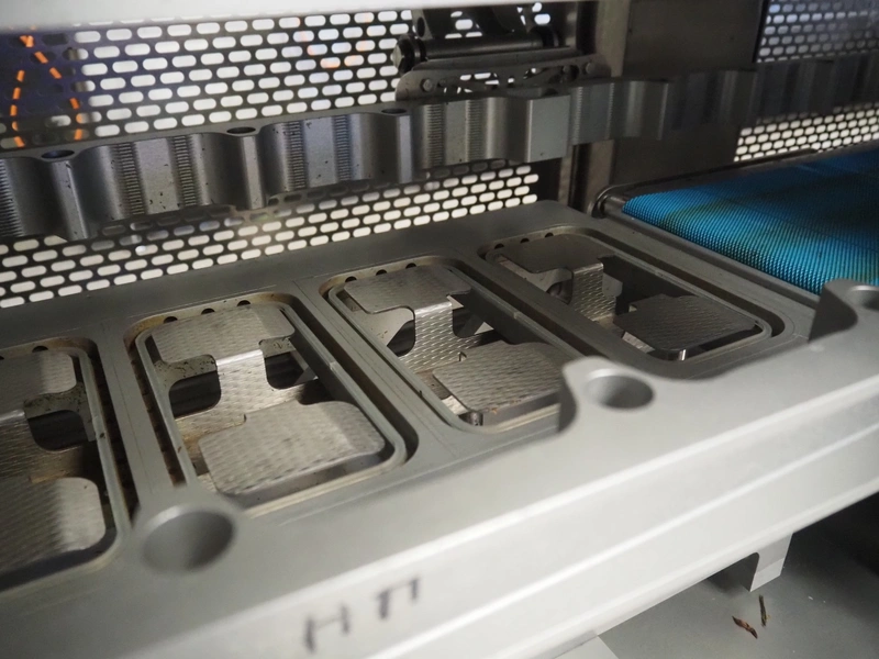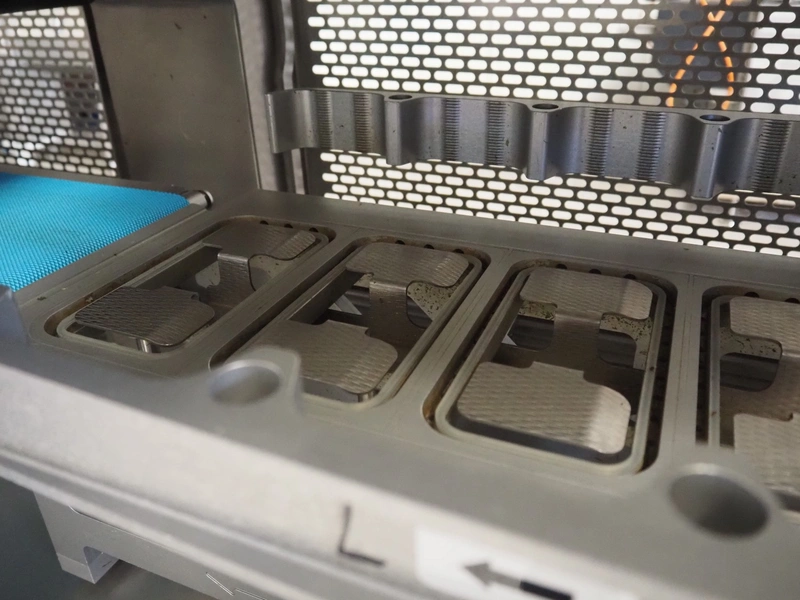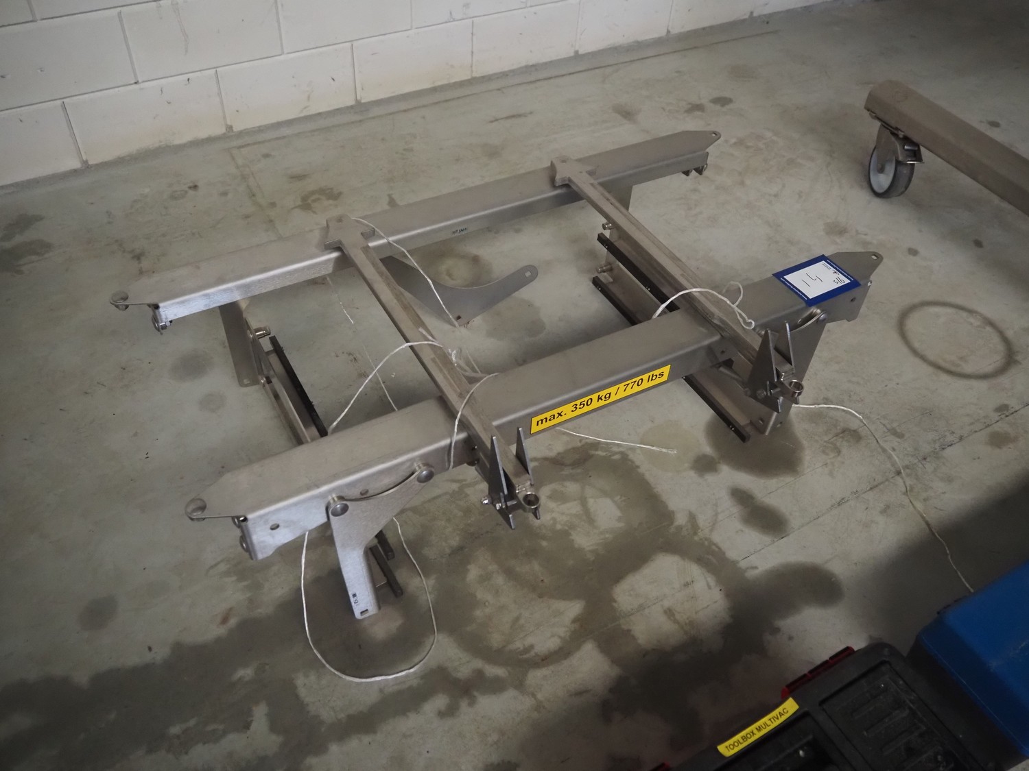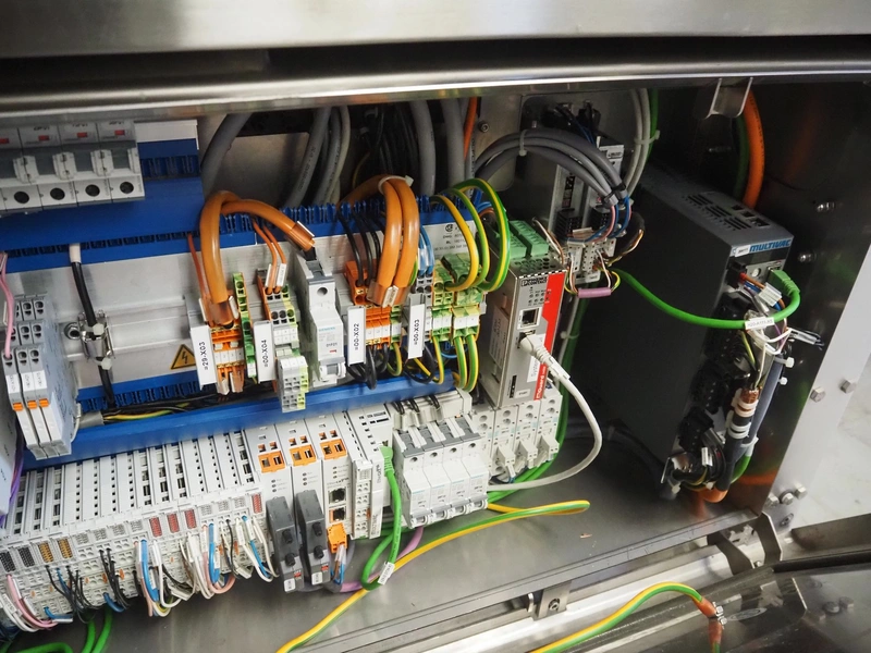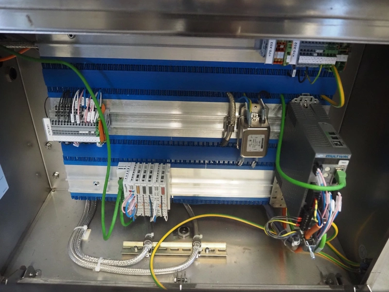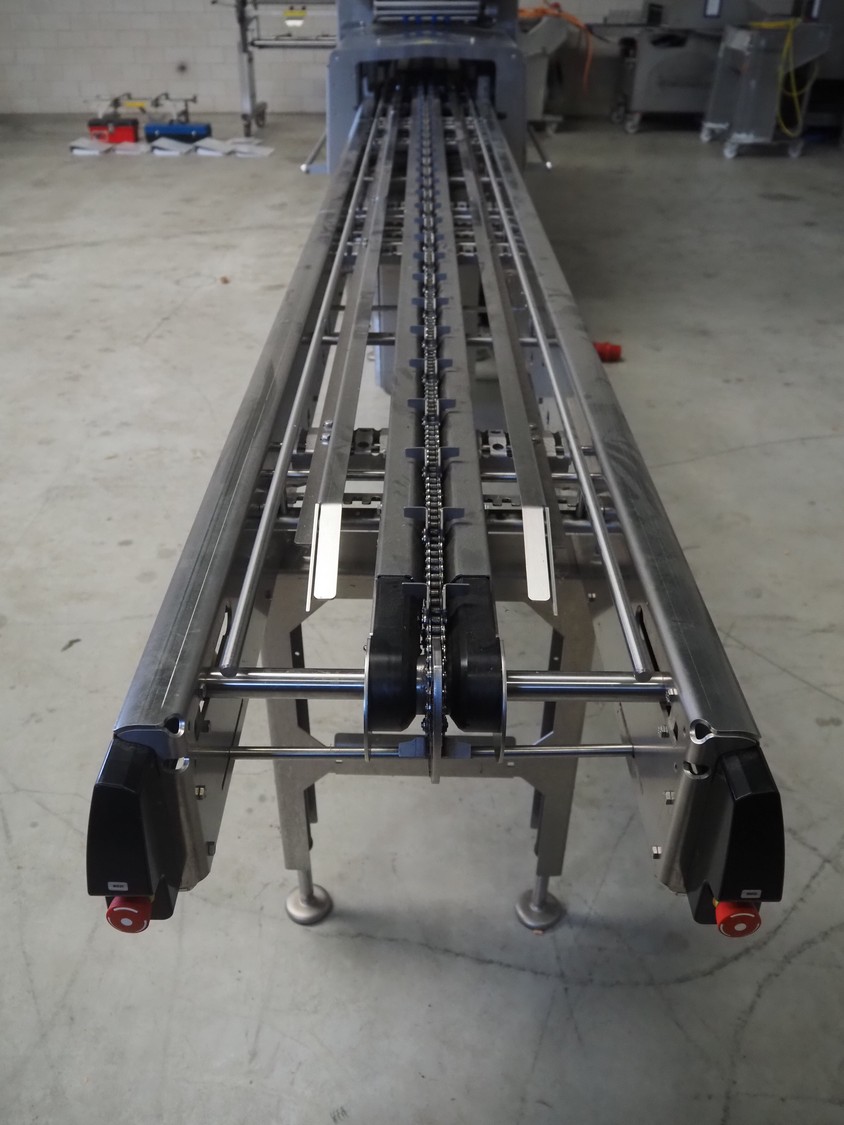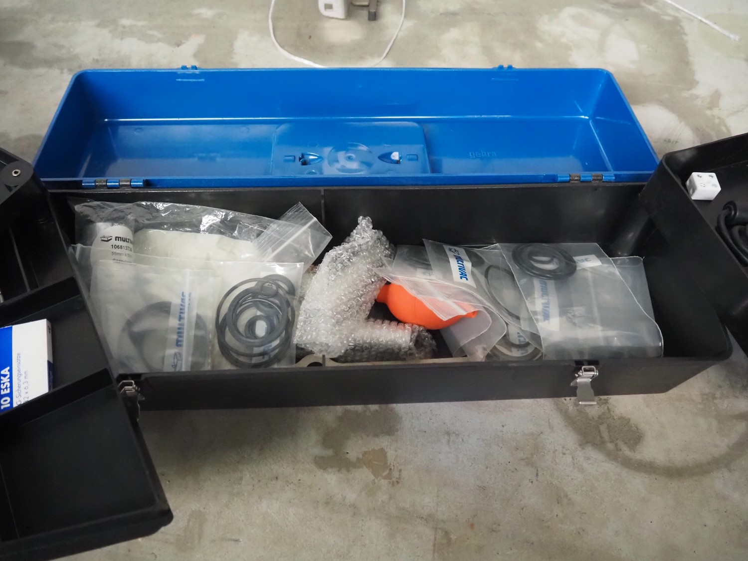 Multivac traysealer, type: G700, serial number: 260230, year of construction: 2018, 400/230 V, 3 Ph, 50 Hz, 22/32 A, 4.7 kW, film width: 410 mm, infeed chain with dividers, chain width: 165 mm, divider height: 10 mm, distance between dividers: 100 mm, dye: (6x) 180 mm x 90 mm, plastic outfeed belt, belt width: 245 mm, total dimensions: 3450 mm x 2100 mm x 900 mm. Including pallet with parts, 2 trolleys with dye's, dye: (6x) 190 mm x 95 mm, (6x) 175 mm x 95 mm, trolley dimensions: (2x) 1300 mm x 650 mm x 1680 mm, trolley to change dye's, dimensions: 1200 mm x 1100 mm x 1230 mm.