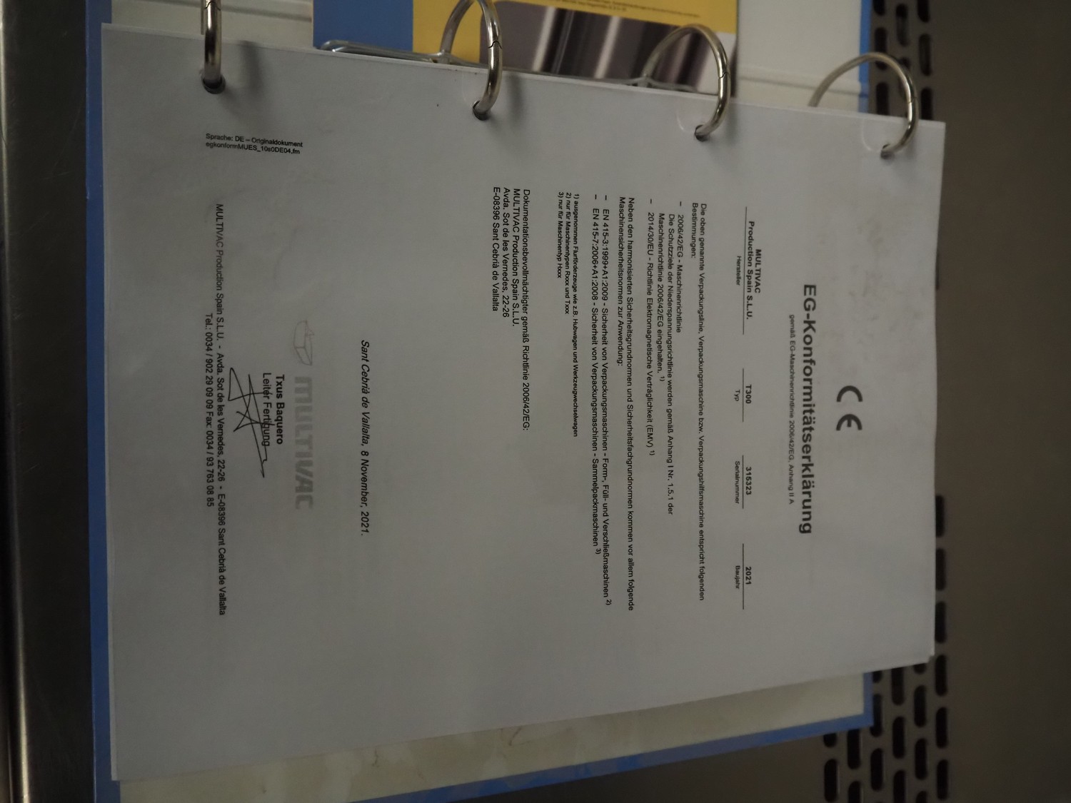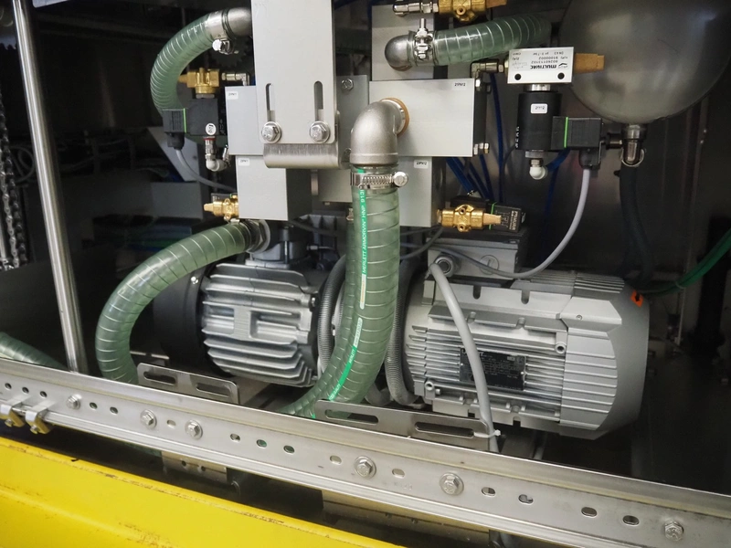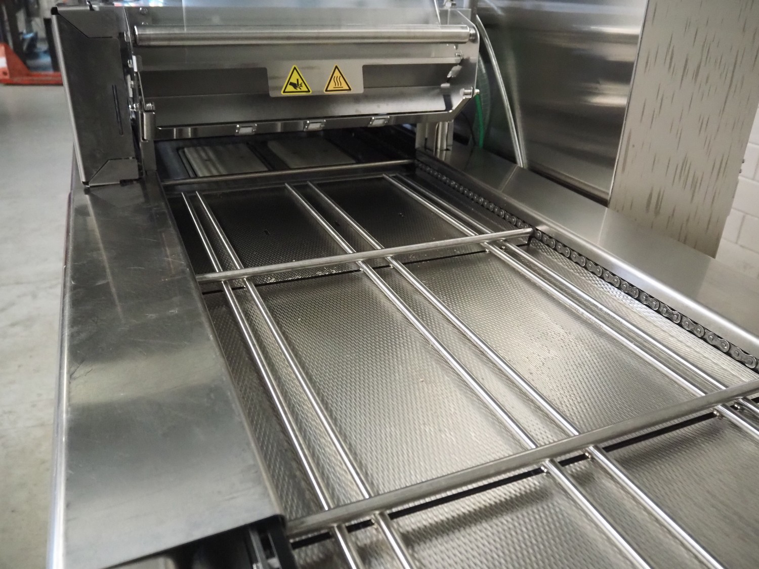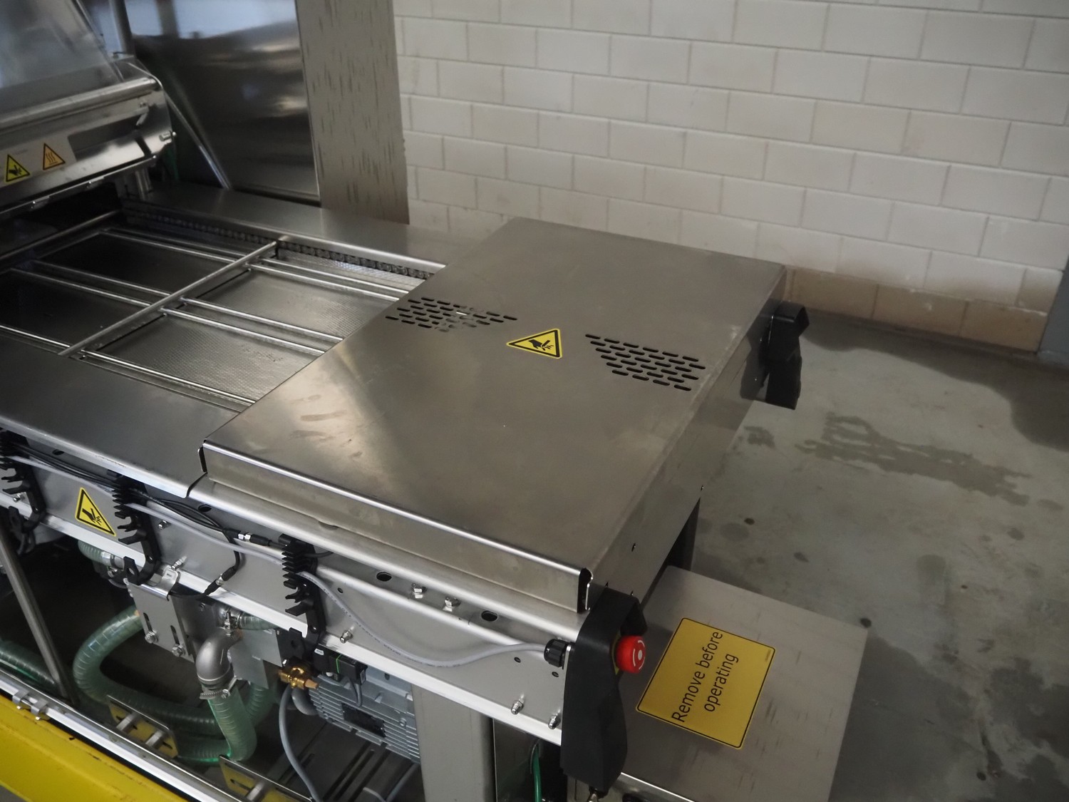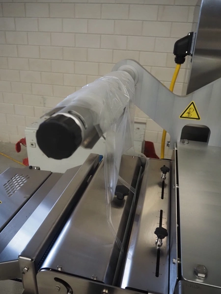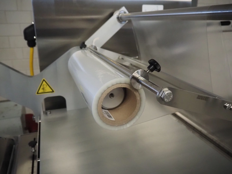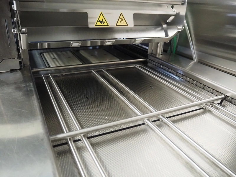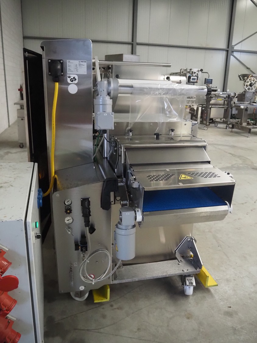 Multivac traysealer, type: T300, serial number: 315323, year of construction: 2021, 400/230 V, 3 Ph, 50 Hz, 20.8/50 A, 5.5 kW, film width: 390 mm, dye: (2x) 270 mm x 160 mm, plastic outfeed belt, belt width: 460 mmm, Busch vacuum pump, type: RA0100 F 503, capacity: 100 m³ per hour, total dimensions: 2600 mm x 1050 mm x 1670 mm.
