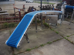 90° curved elevating belt, plastic mesh belt, belt width: 400 mm, total dimensions: 2750 mm x 1200 mm x 1400 mm.€ 500,000 bids05/05/2026 14:50 -