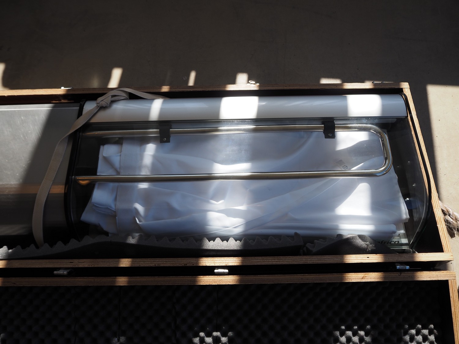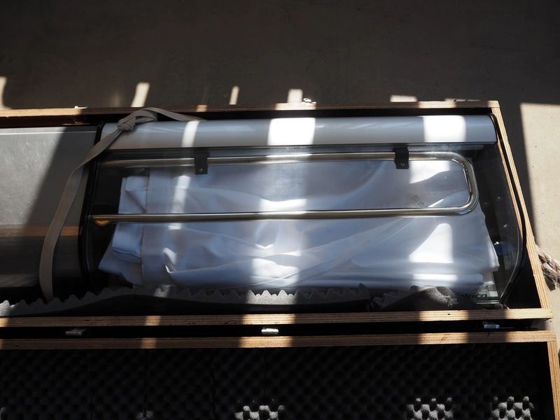 Heated display, dimensions: 1350 mm x 500 mm x 400 mm.