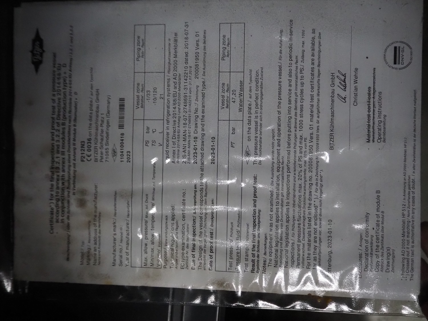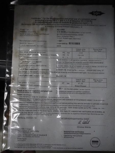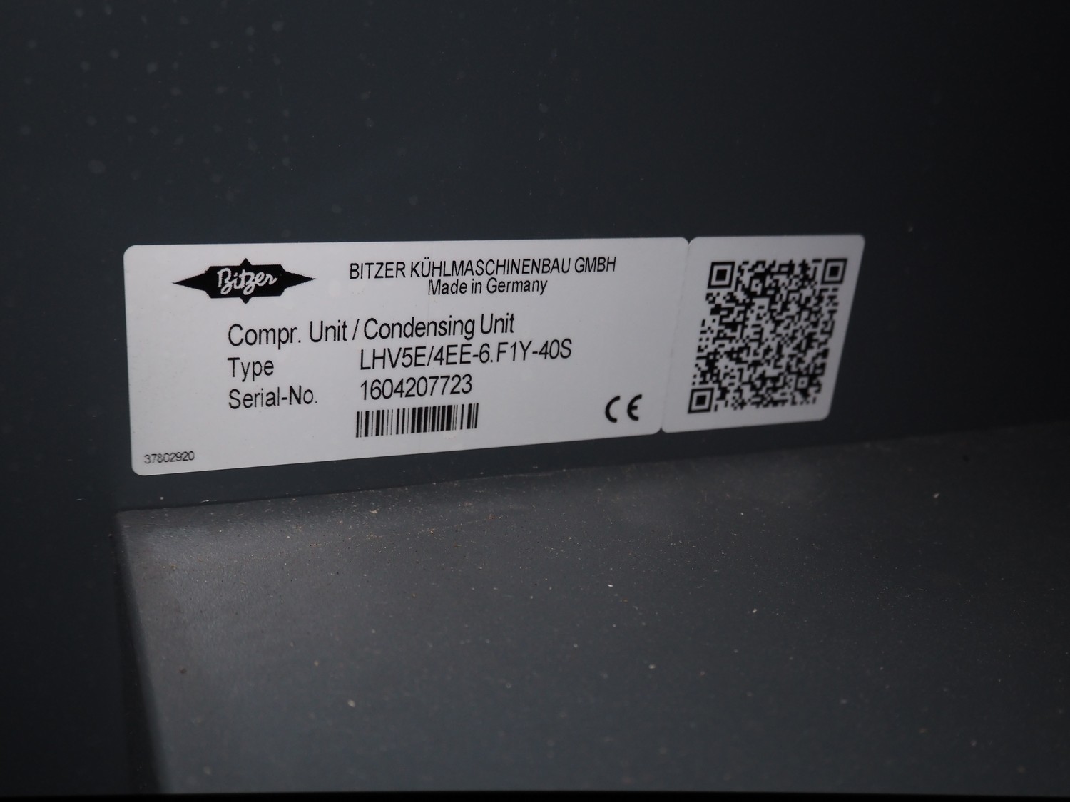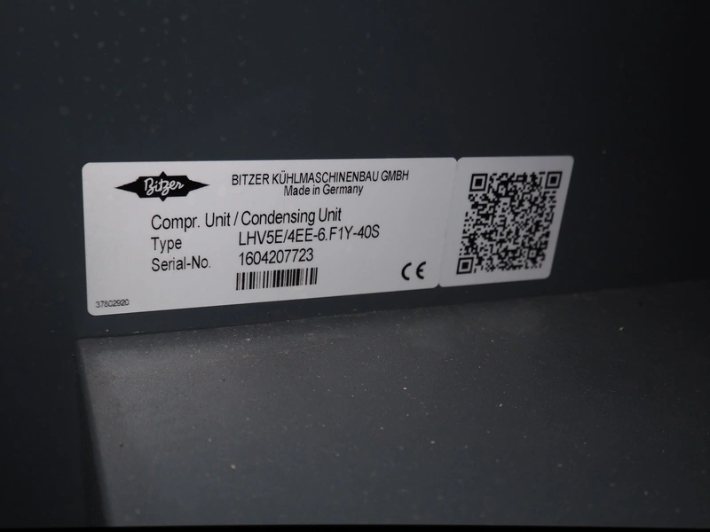 Bitzer Kühlmaschinenbau GmbH condensing unit, type: LHV7E/4EE-6.F1Y-40S, serial number: 1604207723, Bitzer Kühlmaschinenbau GmbH cooling compressor, type: 4EE-6.F1Y-40S, capacity: 22.7/27.4 m³ per hour, dimensions: 1350 mm x 700 mm x 1700 mm. Never used.