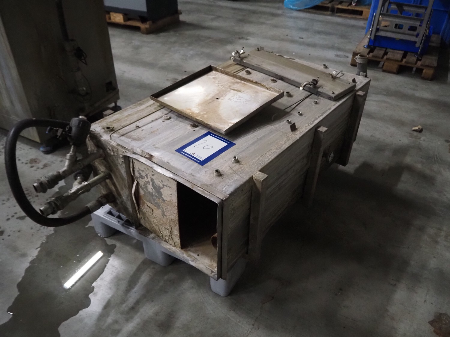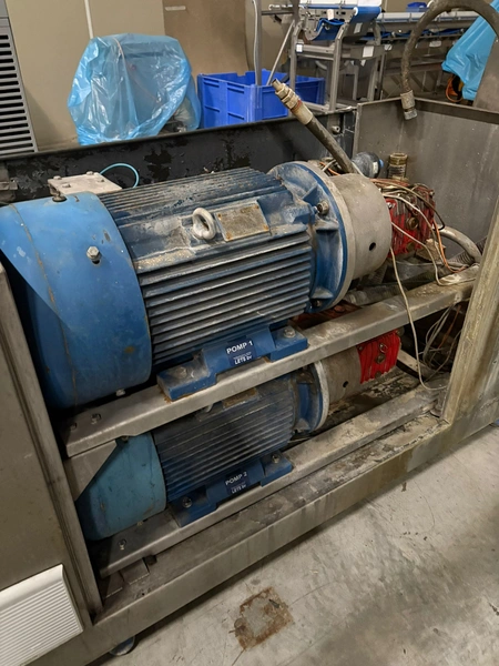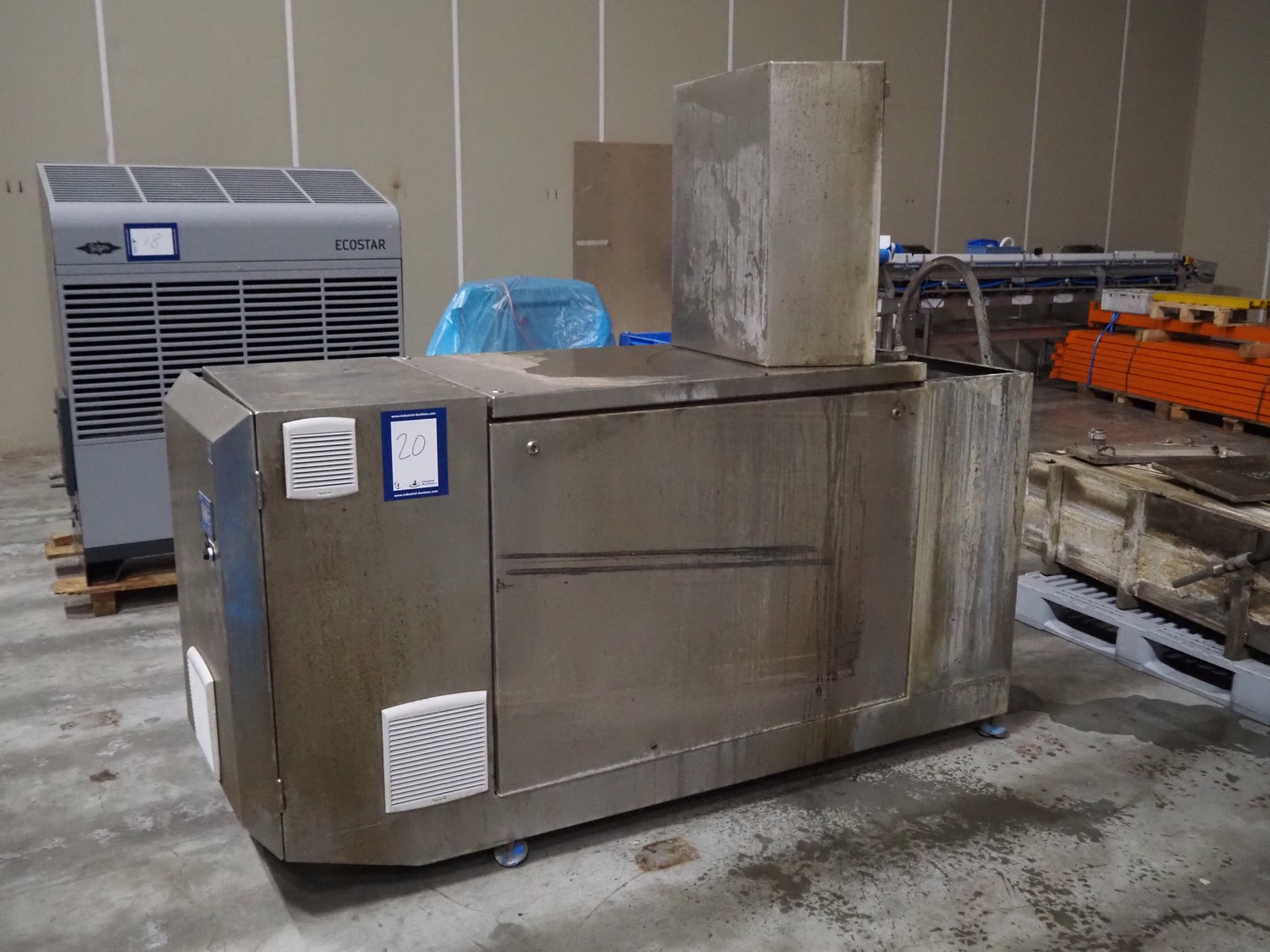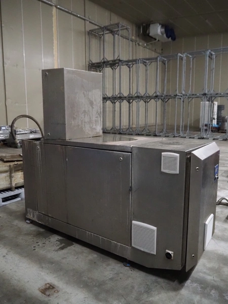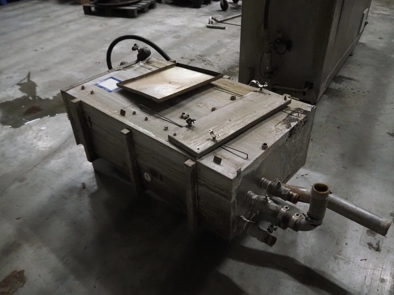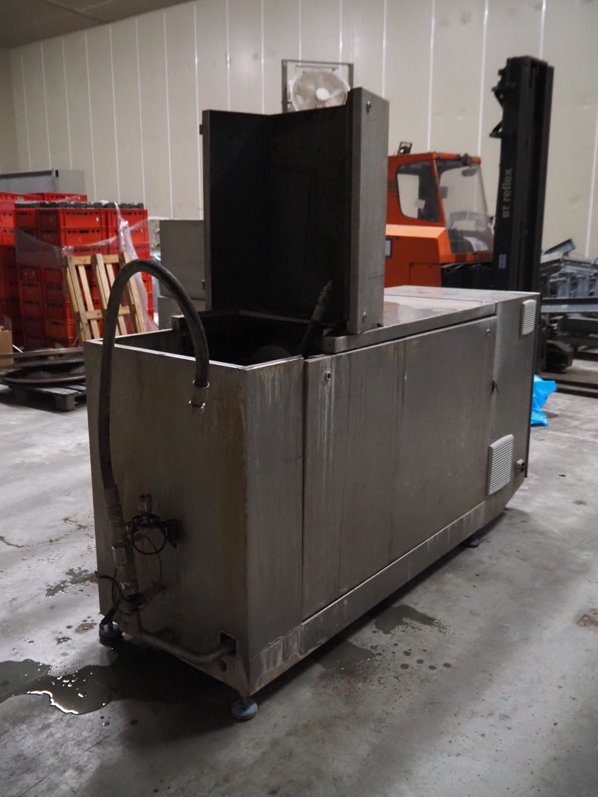 Lets BV high pressure unit with buffer tank, dimensions high pressure unit: 2150 mm x 800 mm x 2190 mm, dimensions buffer tank: 1400 mm x 800 mm x 500 mm.