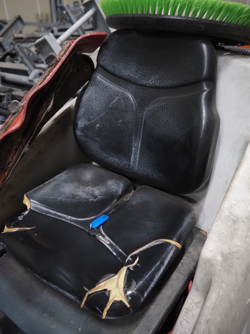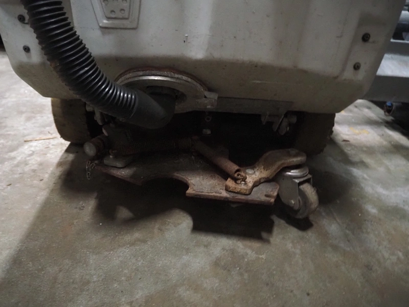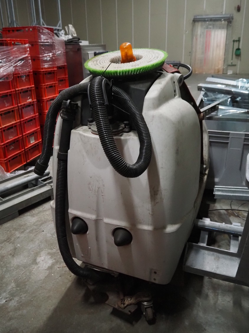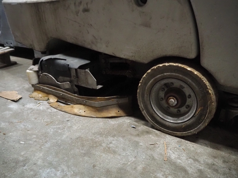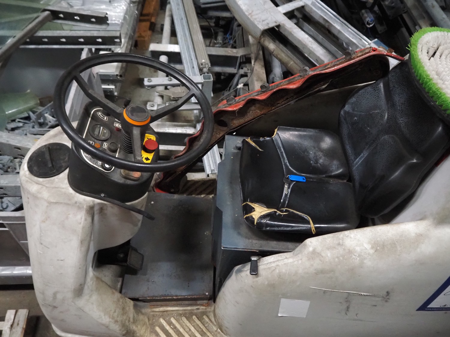 Floor scrubbing machine, dimensions: 1600 mm x 850 mm x 1500 mm. Defect.