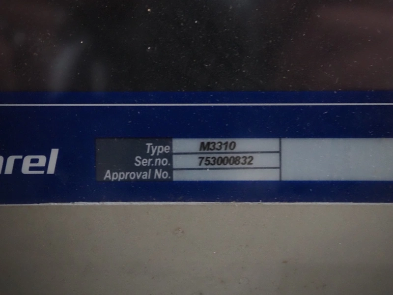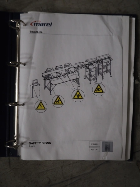 - Marel grader, model: GR8330, type: 2034-10, serial number: 10482612, year of construction: 2021, 230/400 V, 3 Ph, 50/60 Hz, 2.7/1.5 A, belt width: 250 mm, total dimensions: 1400 mm x 750 mm x 1300 mm.