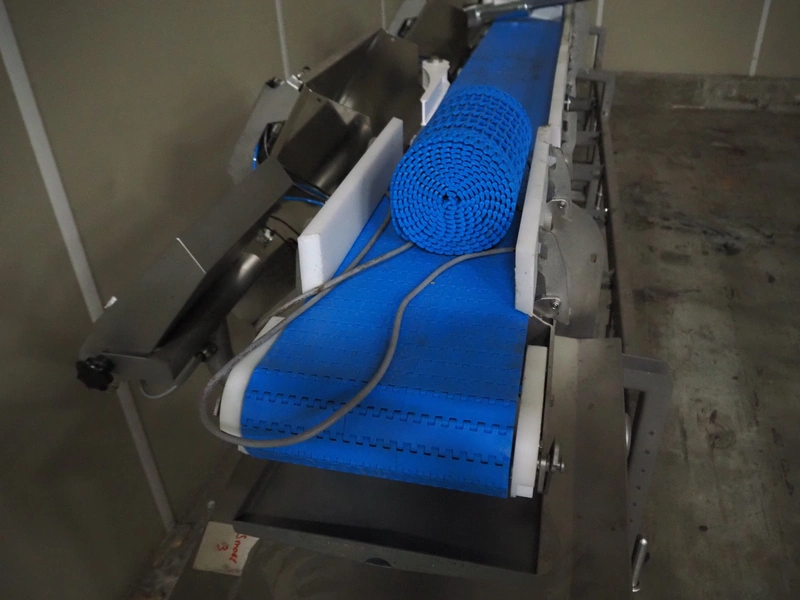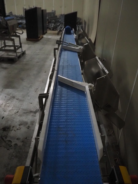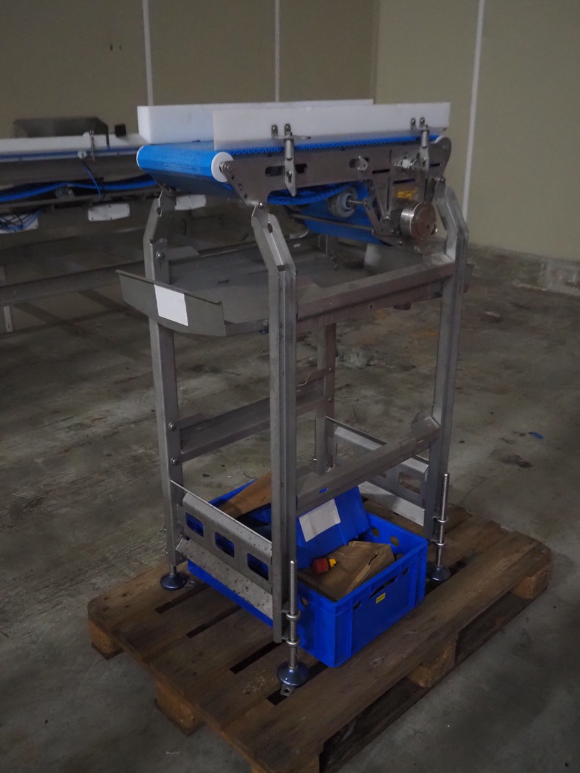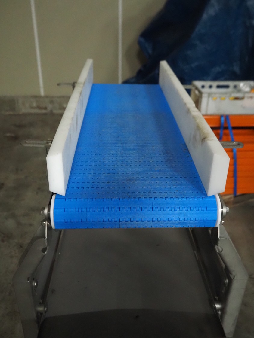 - Marel infeed belt, model: GR8001, type: 7621272, serial number: 10482510, year of construction: 2021, plastic belt, belt width: 260 mm, total dimensions: 900 mm x 500 mm x 1350 mm,