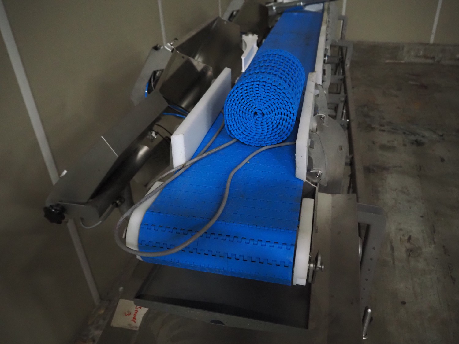 - Marel weighing belt, model: GR8220, type: 7684852, year of construction: 2022, plastic mesh belt, belt width: 250 mm, total dimensions: 1500 mm x 800 mm x 1250 mm,