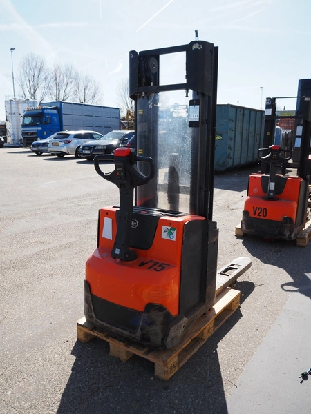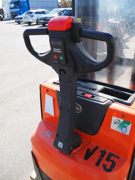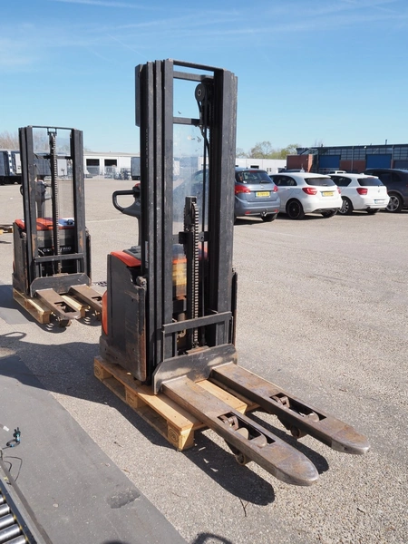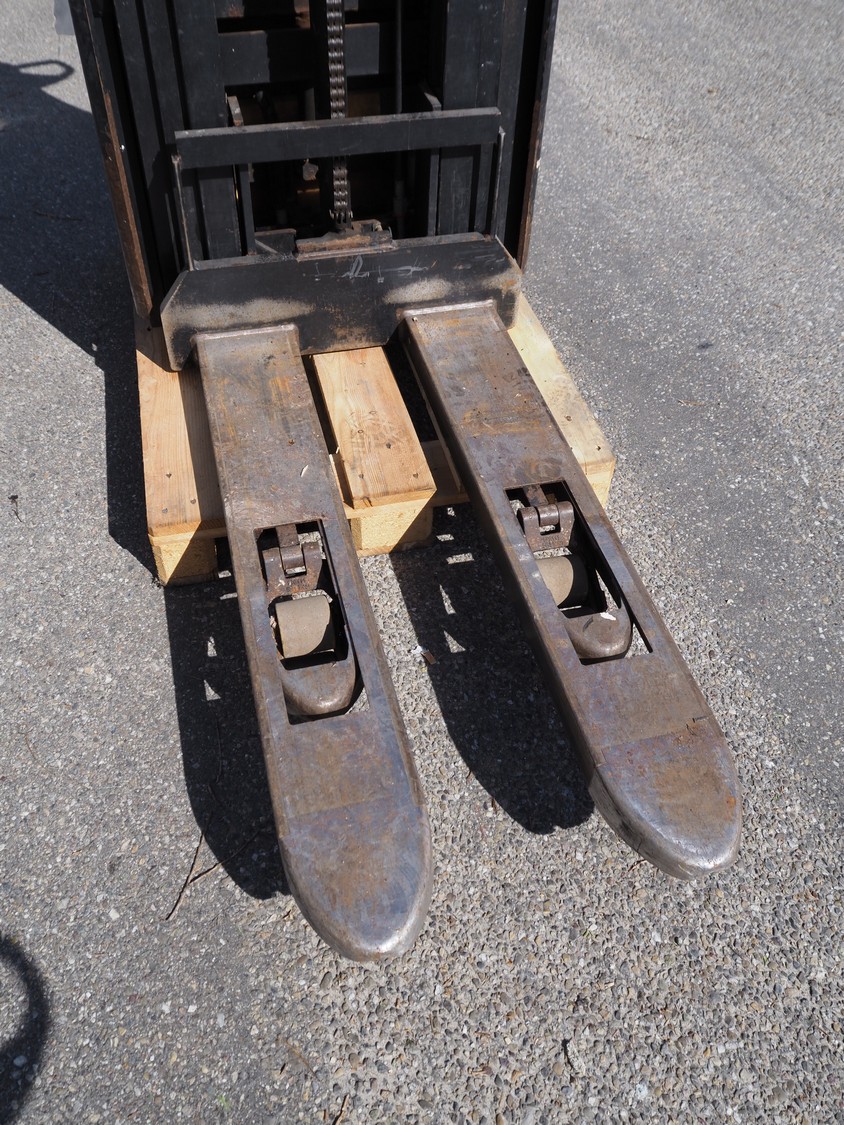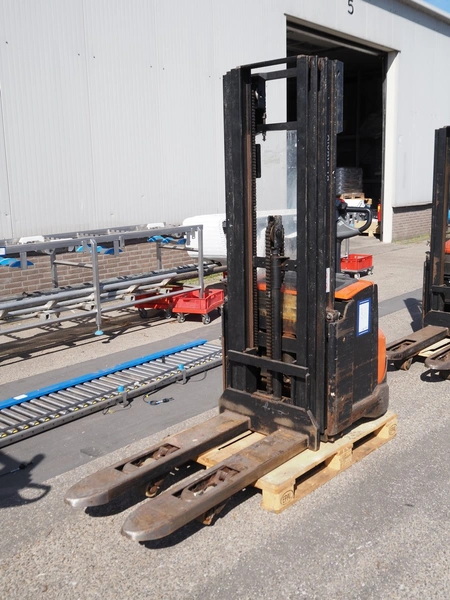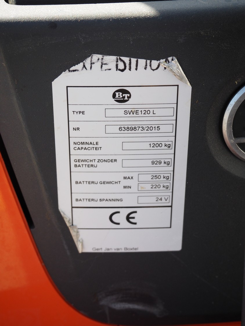 Toyota electric pallet lifter, type: SWE120L, number: 6389873, year of construction: 2015, capacity: 1200 kg, fork length: 1150 mm, total dimensions: 1900 mm x 800 mm x 1880 mm. Without charger. Technical condition unknown.