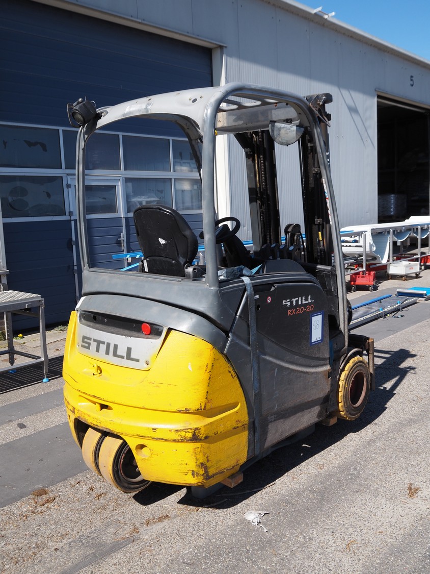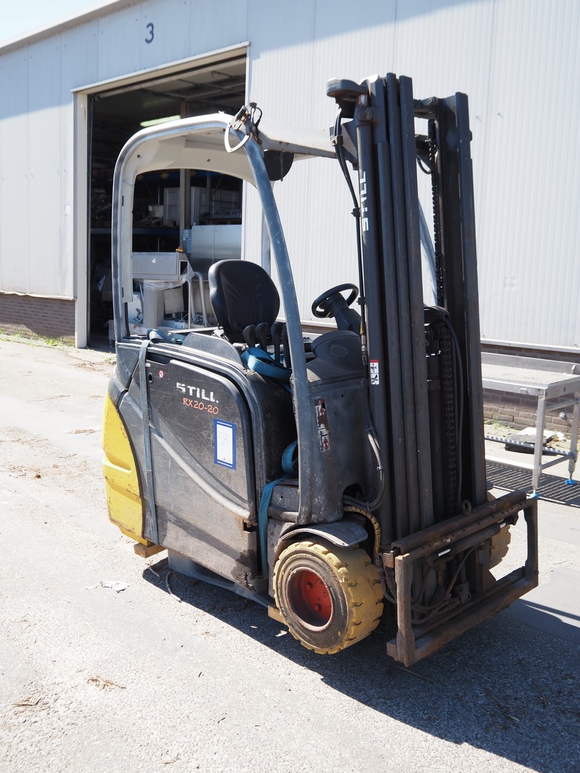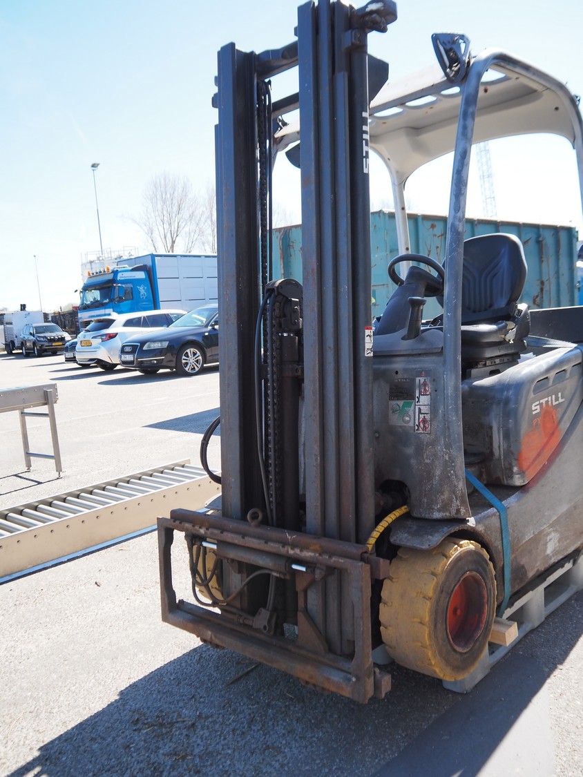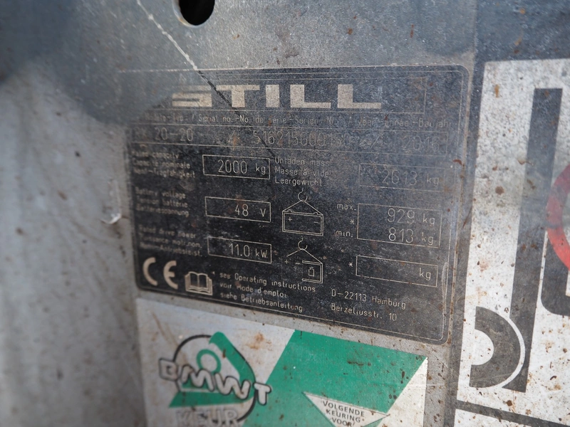 Still forklift, serial number: 516215G00150, year of construction: 2016, capacity: 2000 kg, 48 V, 11 kW, dimensions: 1850 mm x 1100 mm x 2150 mm. With Van Hoof accu, type: 24/5 PzS 625, serial number: 35597 160329-04, year of construction: 03-2016, 48 V, capacity: 625Ah/5h, weight: 925 kg, dimensions: 1020 mm x 530 mm x 660 mm. Technical condition unknown.
