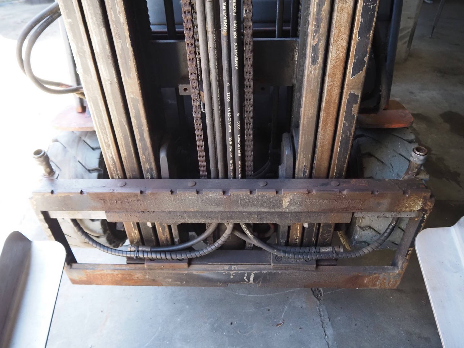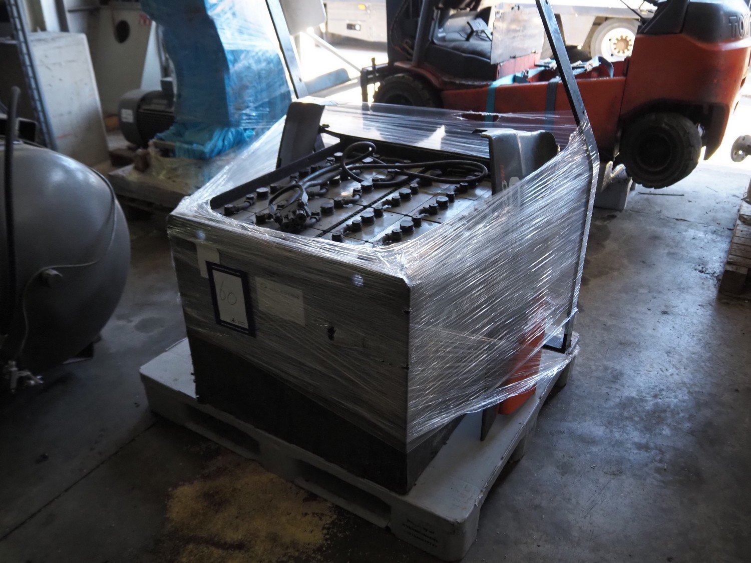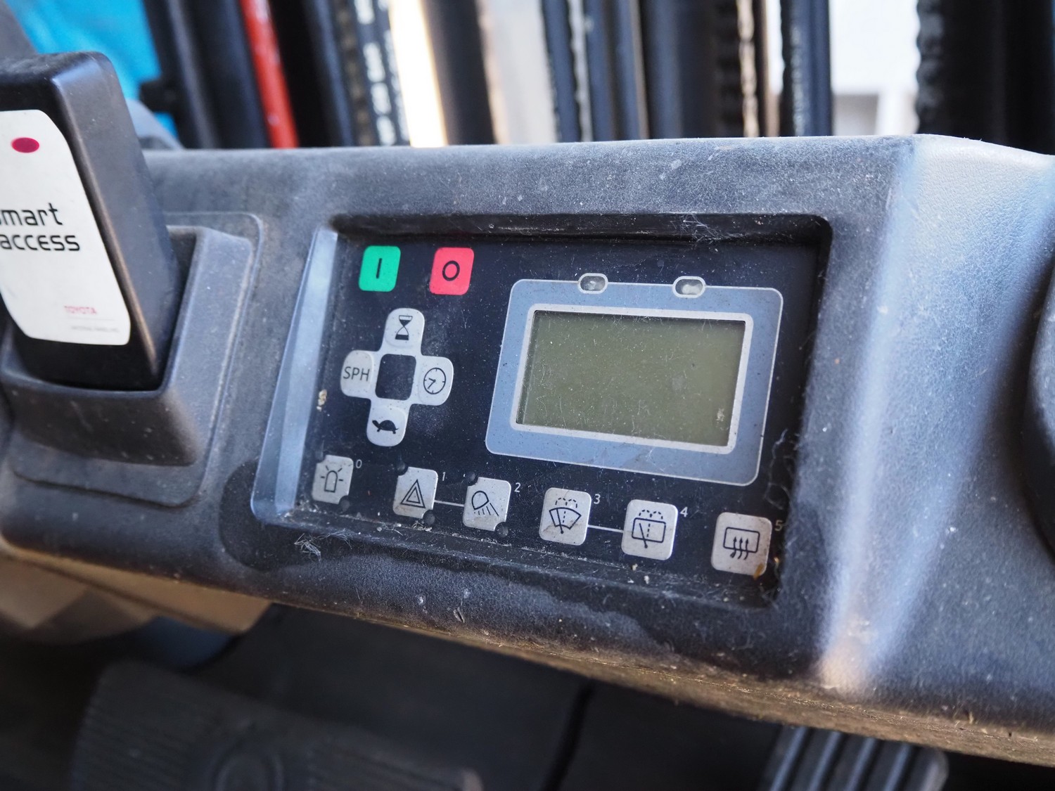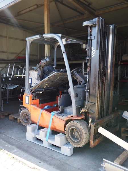 Toyota forklift, fabrication number: 8FBM20T-10423, capacity: 2000 kg, dimensions: 2100 mm x 1000 mm x 2100 mm. With Celectric accu, type: 24/6 PzS 750, 48 V, 750 Ah, weight: 1070 kg, dimensions: 750 mm x 900 mm x 1100 mm. Technical condition unknown. Without forks.