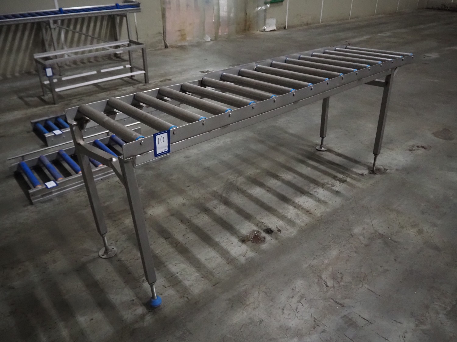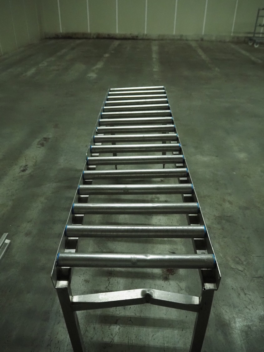 Roller conveyor, s/s frame, s/s rollers, roller width: 550 mm, total dimensions: 2400 mm x 560 mm x 860 mm.