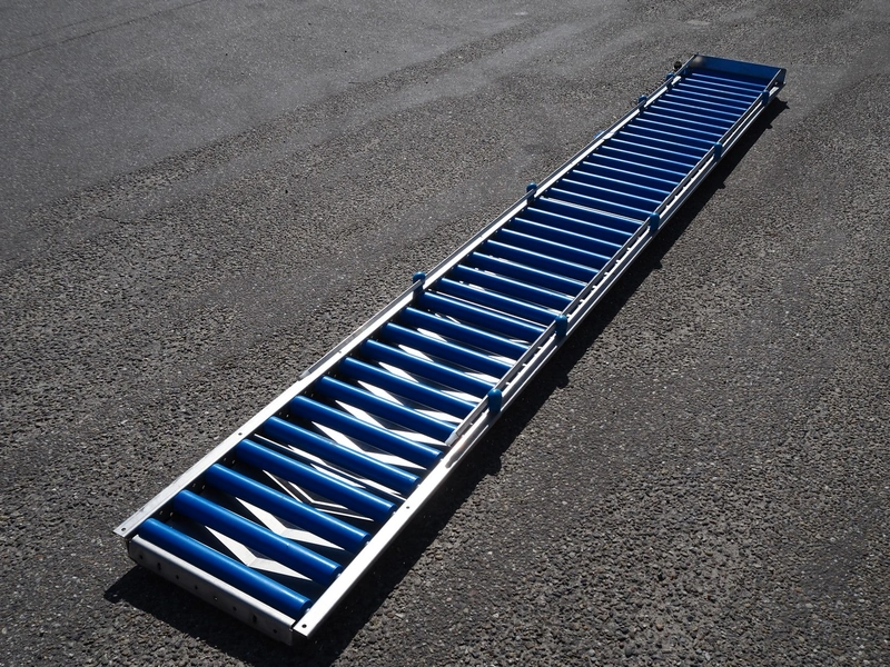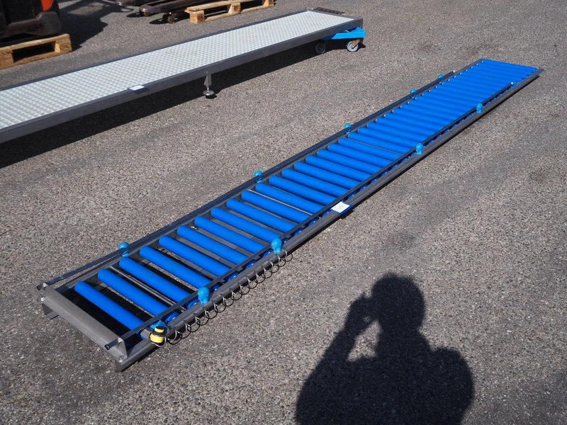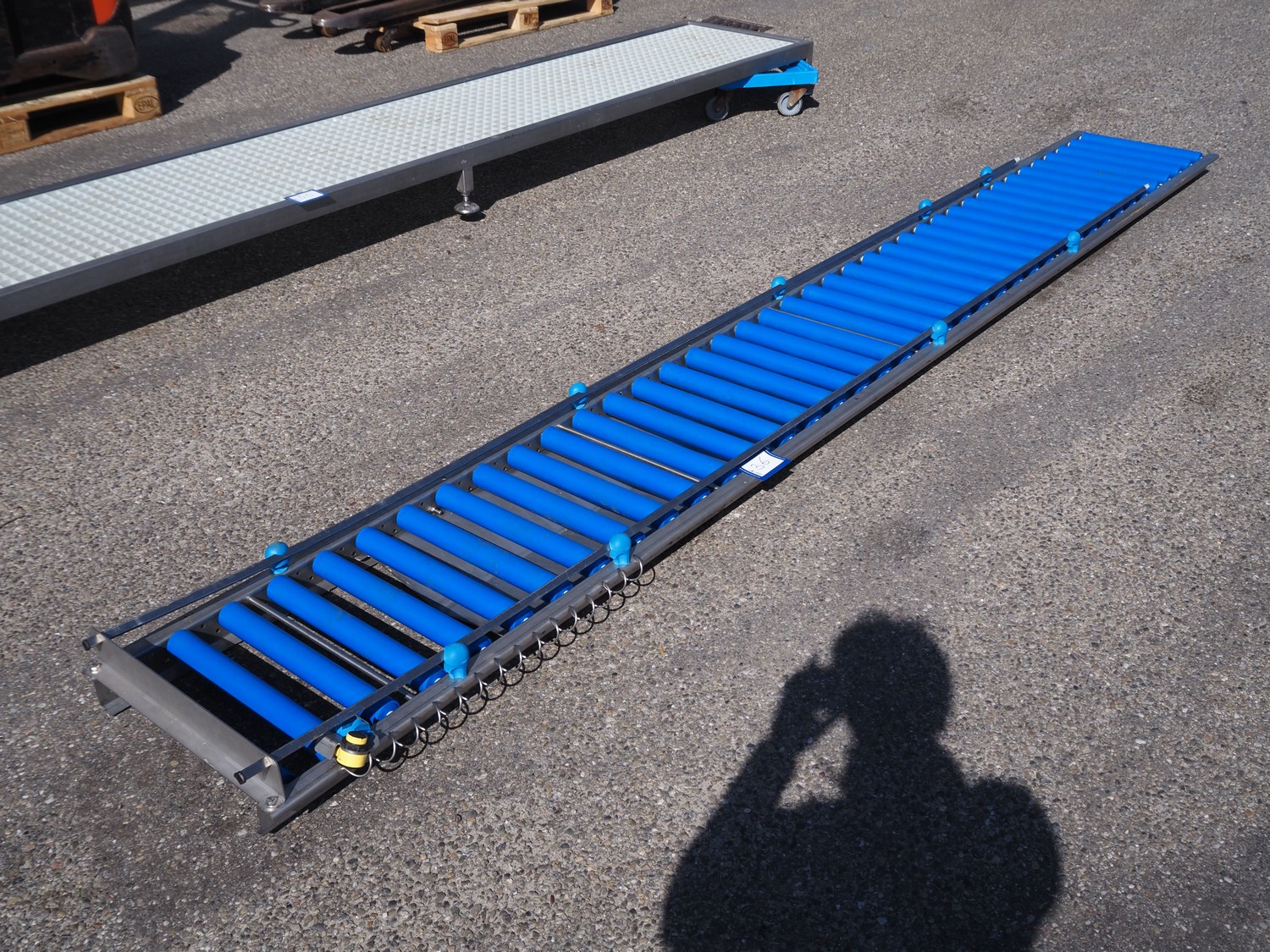 Roller conveyor, plastic rollers, roller width: 400 mm, total dimensions: 3700 mm x 500 mm x 150 mm.
