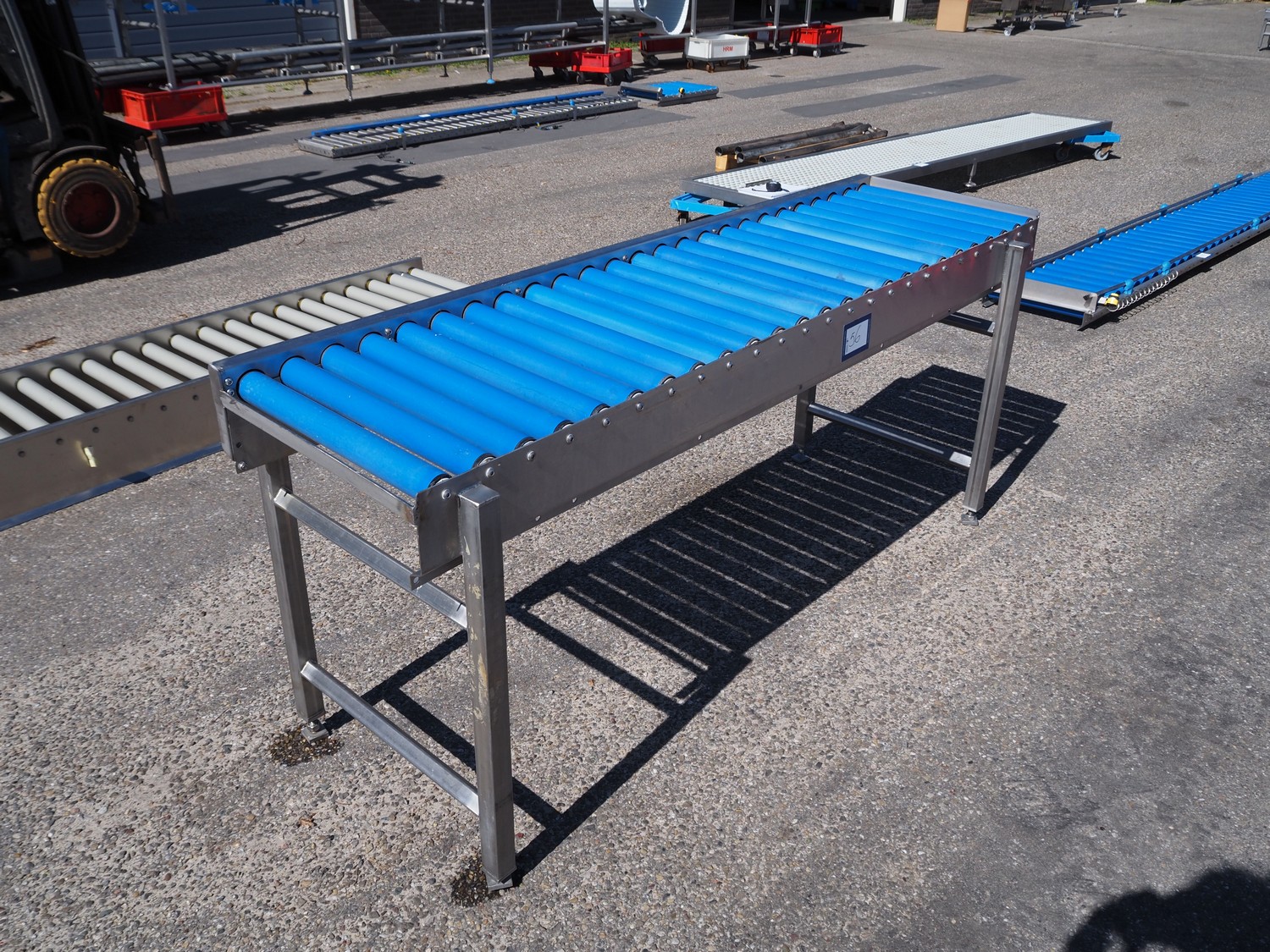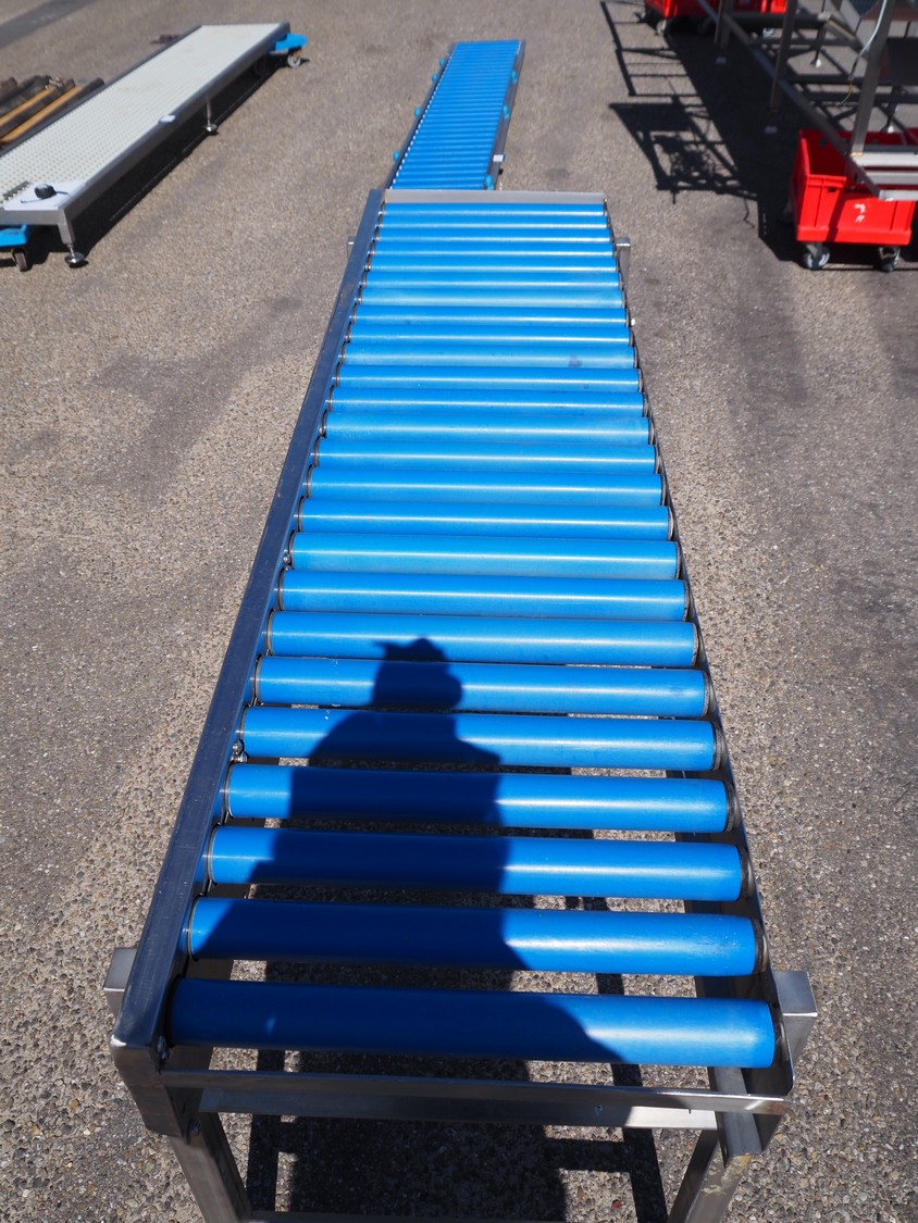 Roller conveyor, s/s frame, plastic rollers, roller width: 460 mm, total dimensions: 1900 mm x 500 mm x 800 mm.