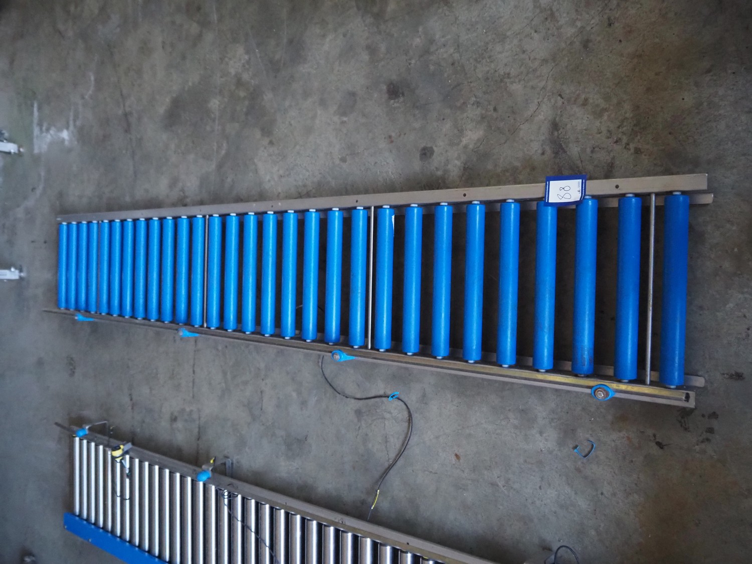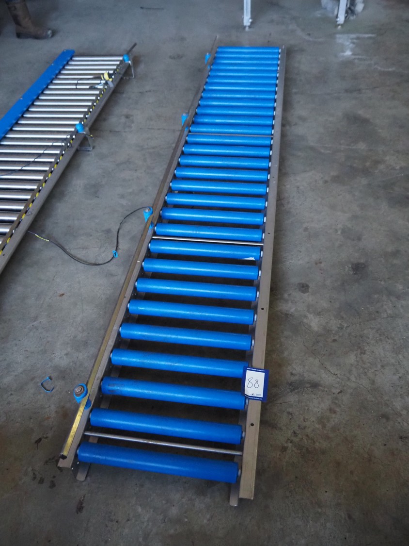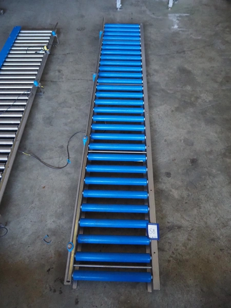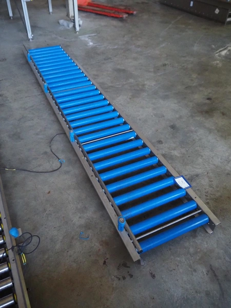 Roller conveyor, plastic rollers, roller width: 420 mm, total dimensions: 3000 mm x 480 mm x 100 mm.