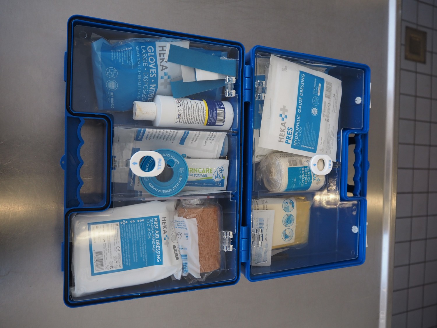 HEKA first aid kit, dimensions: 320 mm x 140 mm x 220 mm.