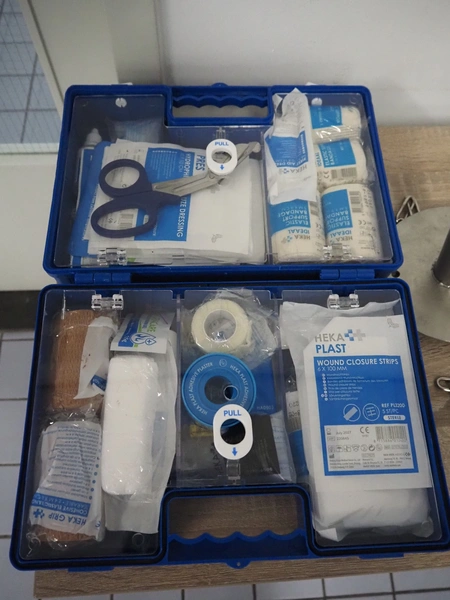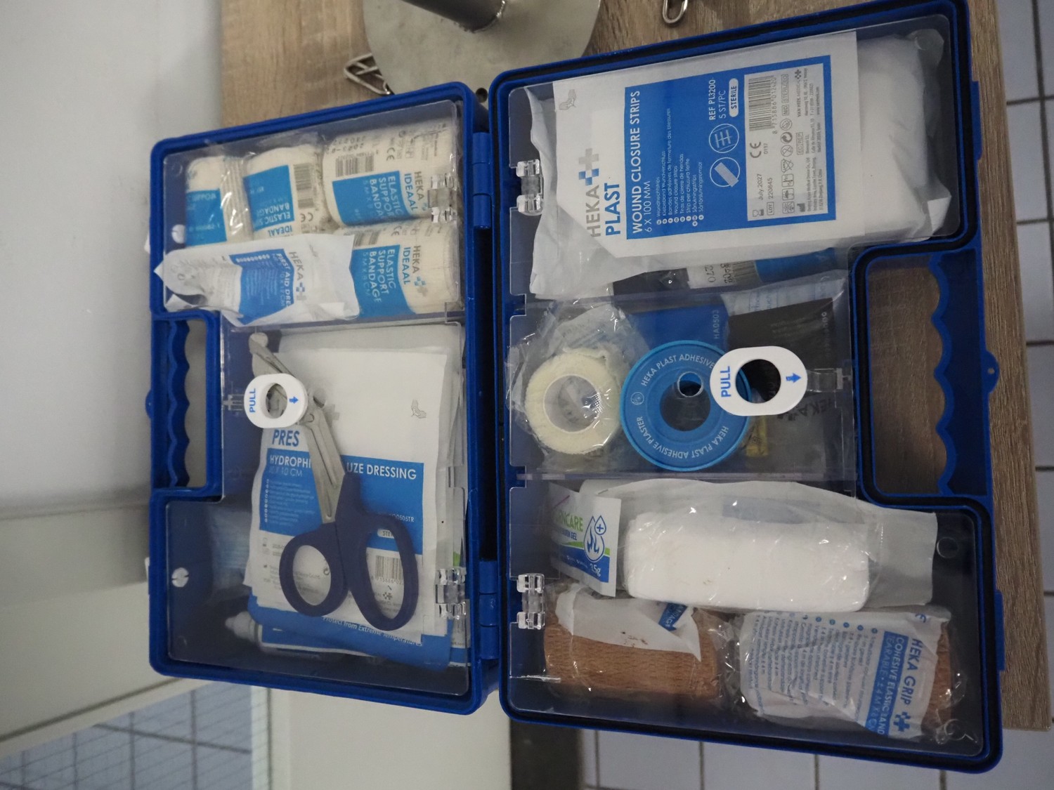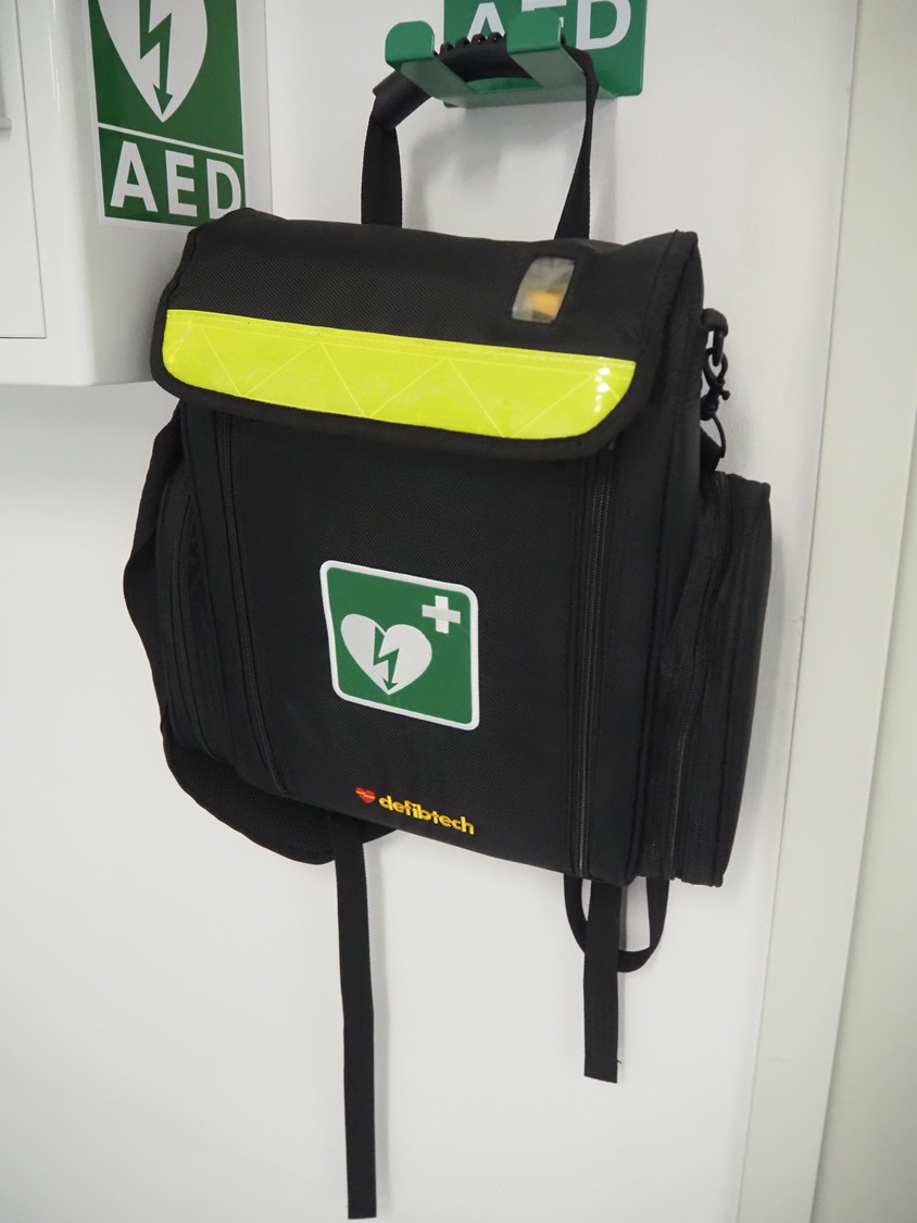 AED kit with first aid kit, dimensions: 400 mm x 200 mm x 400 mm and 400 mm x 150 mm x 400 mm.
