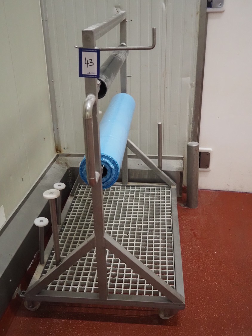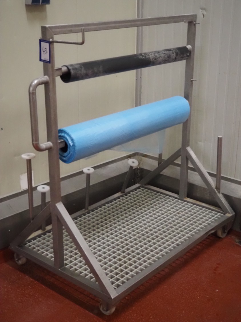 S/s trolley for film rolls, film width: 1000 mm, dimensions: 1350 mm x 800 mm x 1400 mm.