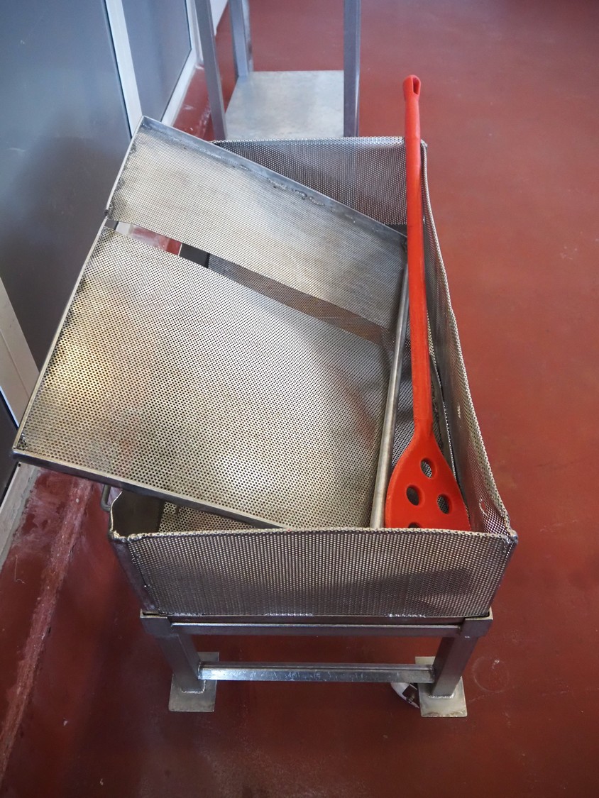 S/s trolley with perforations, 3 mm, total dimensions: 1000 mm x 550 mm x 700 mm.