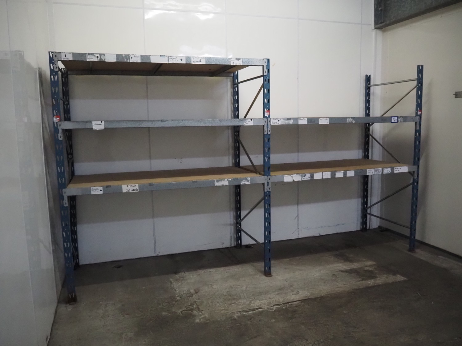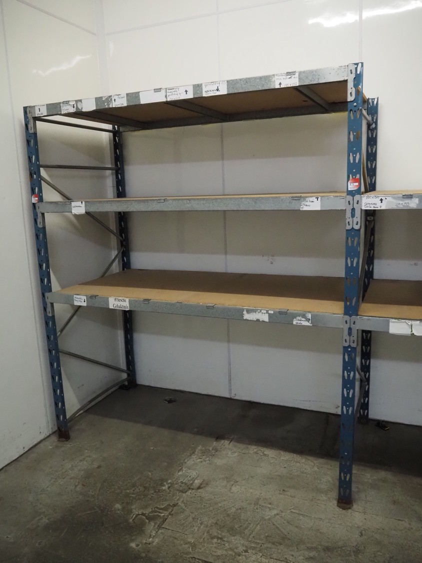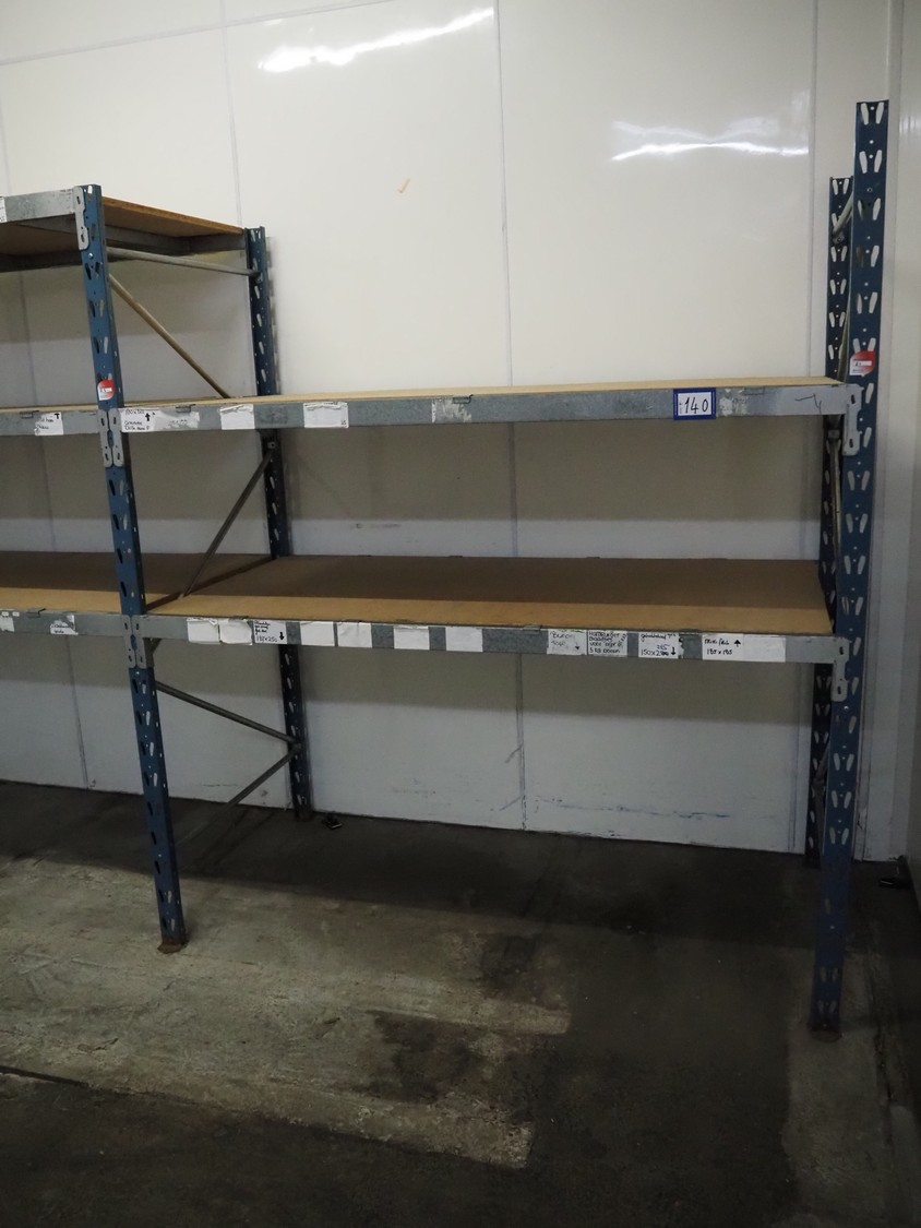 Steel pallet rack, 1 x 3 floors and 1 x 2 floors, floor dimensions: (5x) 1930 mm x 1000 mm, total dimensions: 4060 mm x 1000 mm x 2300 mm.