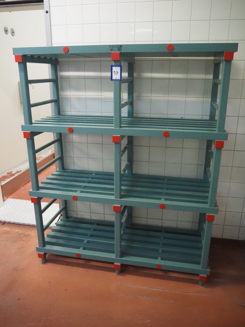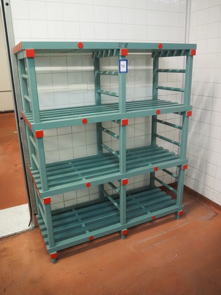 REA rack, 4 floors, dimensions floors: (4x) 1350 mm x 580 mm, total dimensions: 1500 mm x 600 mm x 1800 mm.