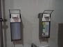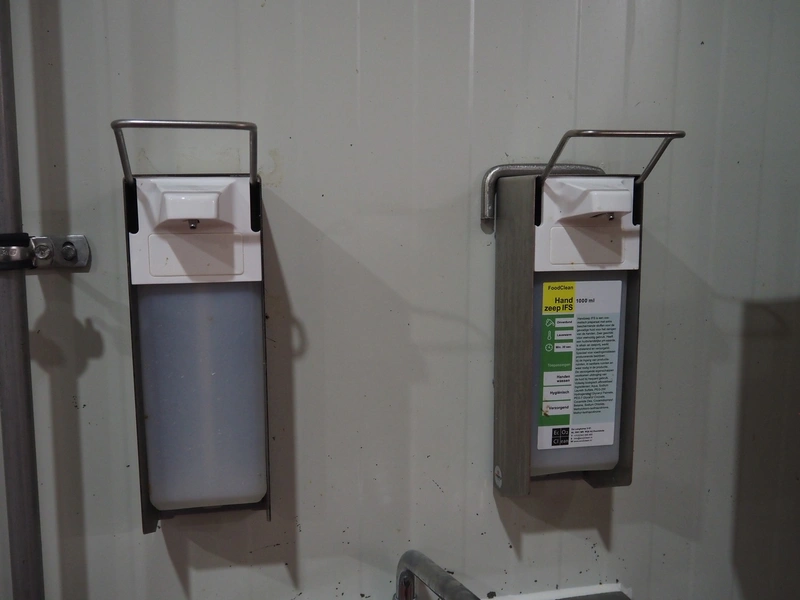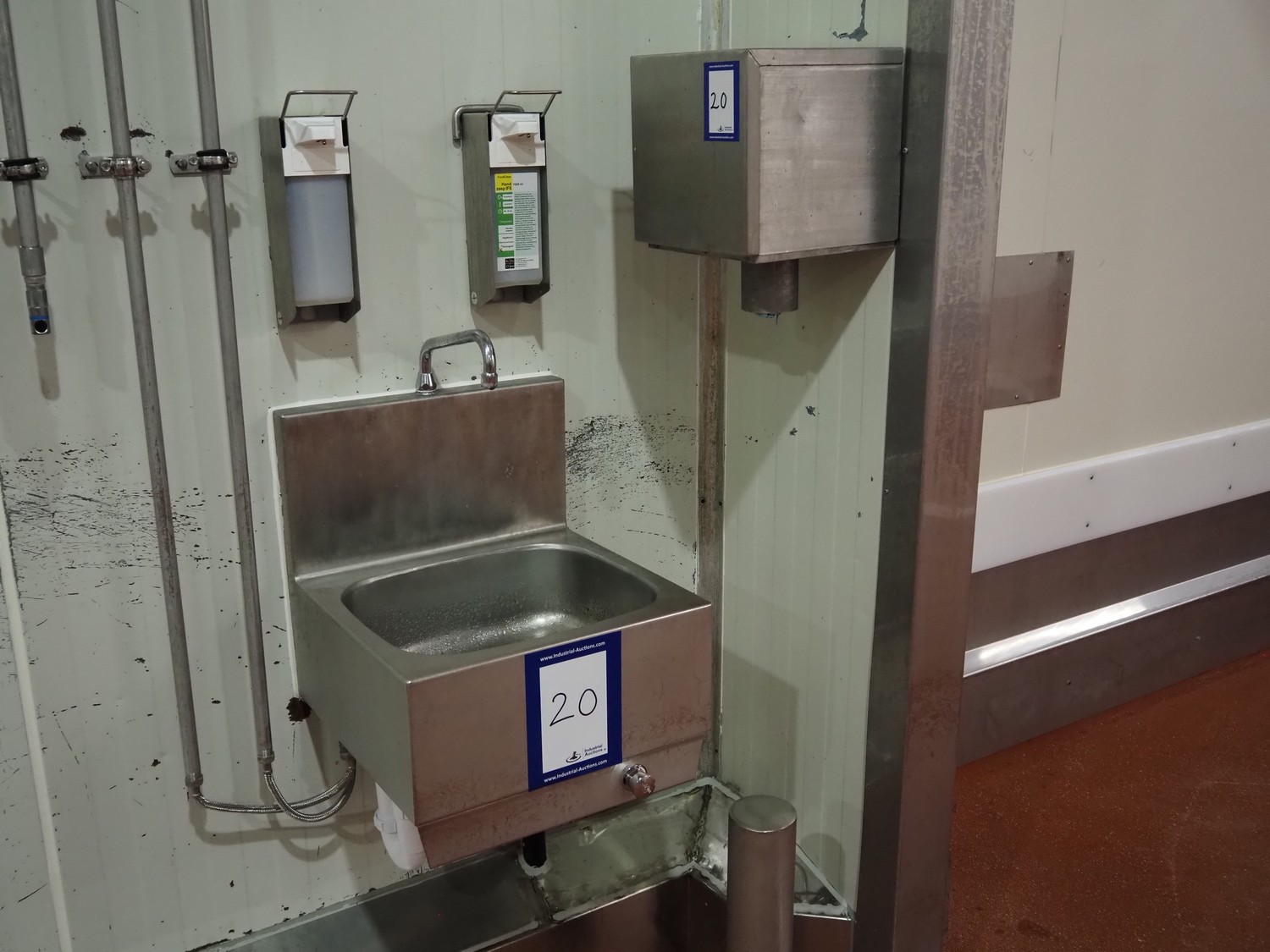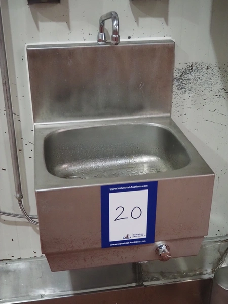 S/s sink, knee control, dimensions: 460 mm x 460 mm x 800 mm, s/s paper dispenser, dimensions: 270 mm x 270 mm x 400 mm and 2 s/s soap dispensers.