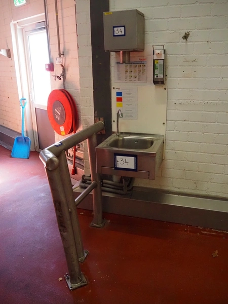 S/s sink, dimensions: 500 mm x 450 mm x 600 mm, s/s paper dispenser, dimensions: 270 mm x 270 mm x 400 mm, soap dispenser and s/s protection rack, dimensions: 1100 mm x 200 mm x 1000 mm.