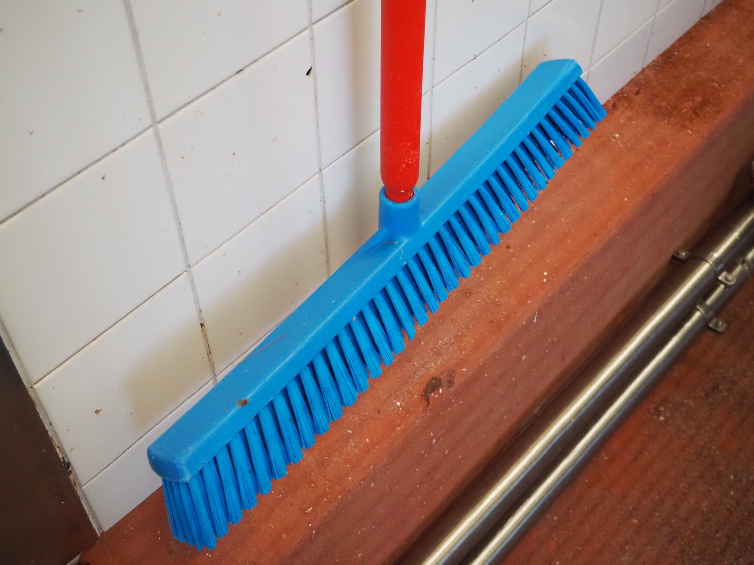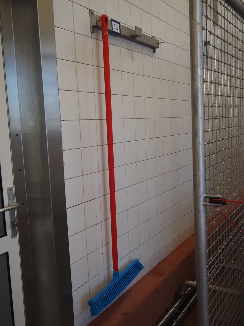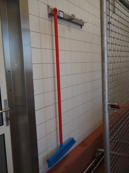 S/s peg with Vikan broom, dimensions peg: 800 mm x 100 mm x 130 mm.