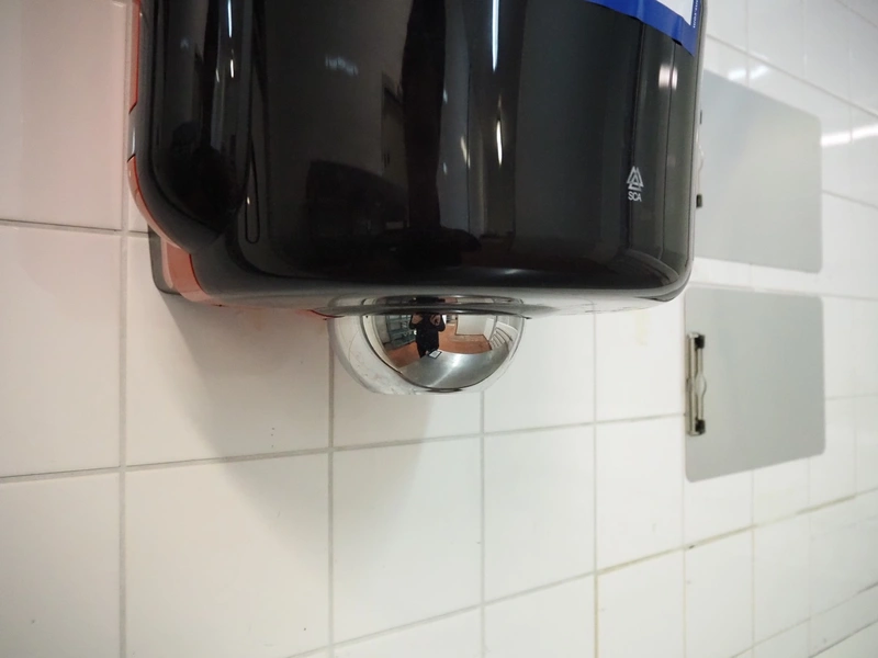 Tork paper dispenser, dimensions: 340 mm x 300 mm x 470 mm.