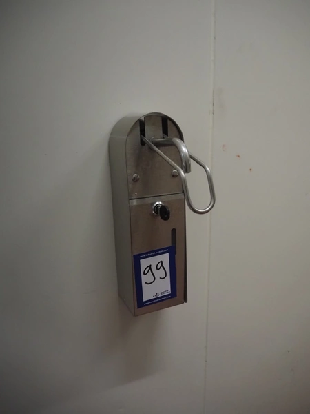 S/s soap dispenser, dimensions: 100 mm x 230 mm x 350 mm.