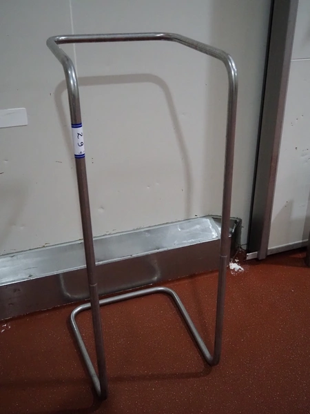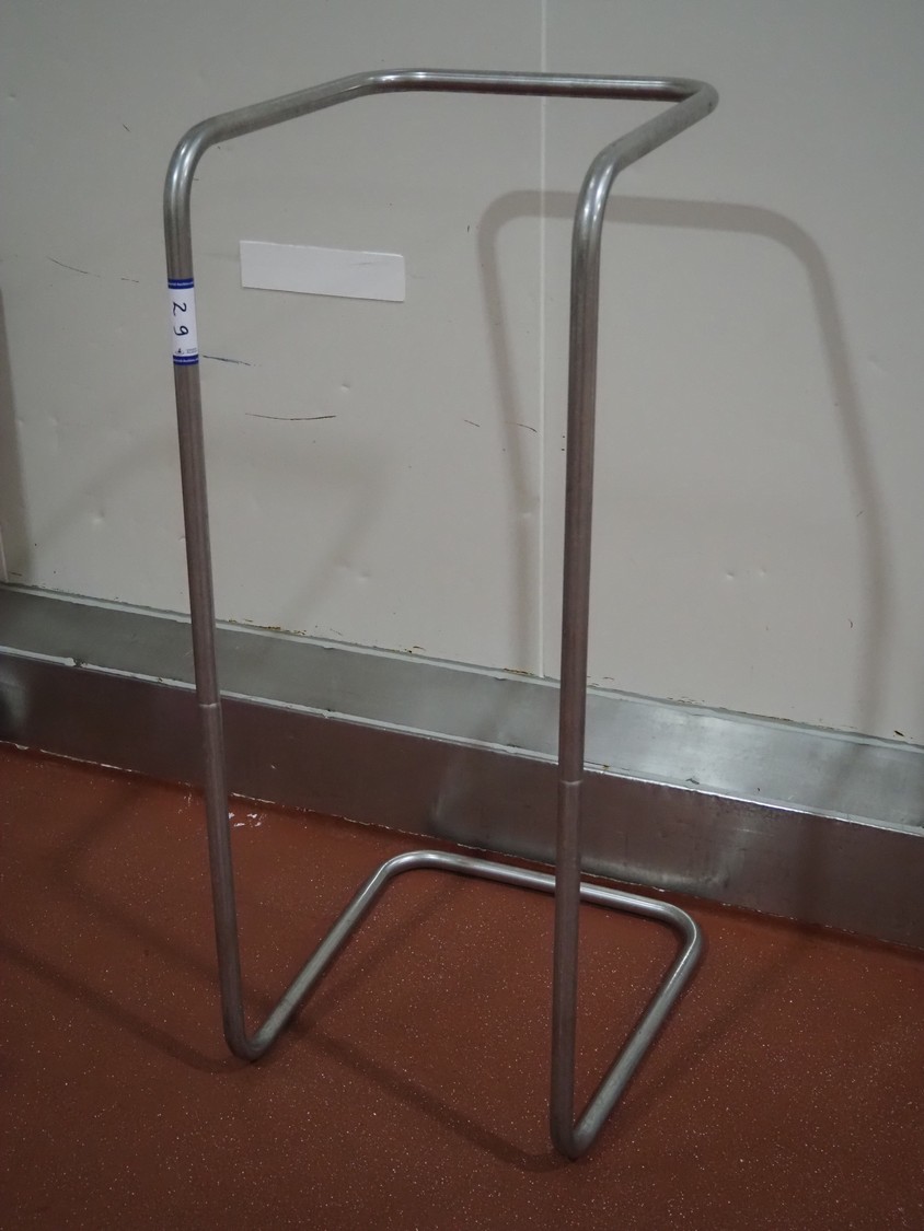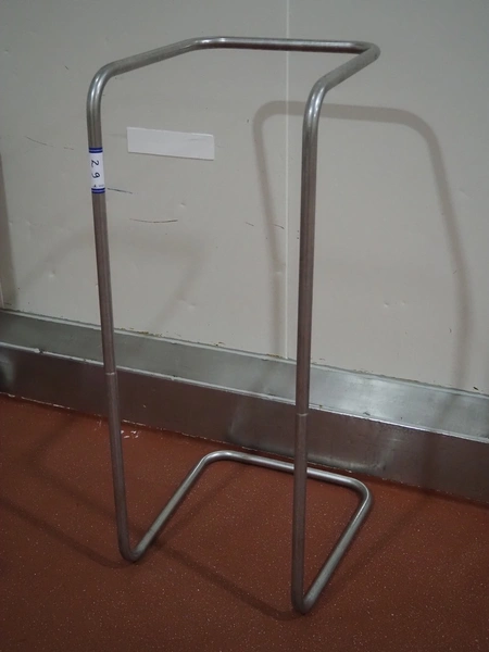 S/s waste bag holder, dimensions: 600 mm x 600 mm x 1350 mm.
