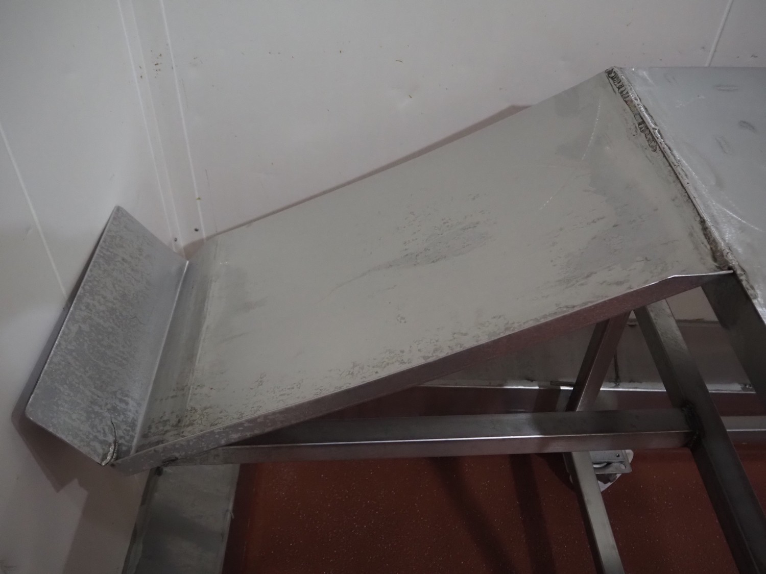 S/s mobile table, dimensions: 2350 mm x 730 mm x 1050 mm.