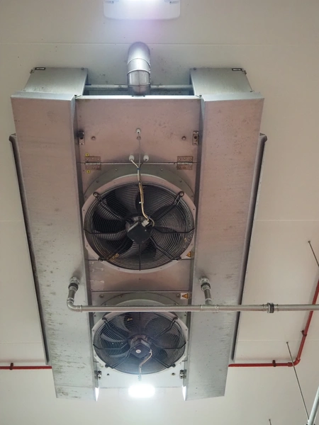 Kelvion s/s evaporator, 2 fans, dimensions: 2500 mm x 1500 mm x 500 mm.