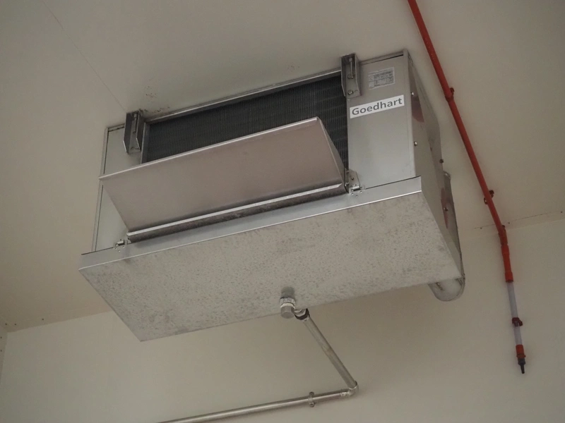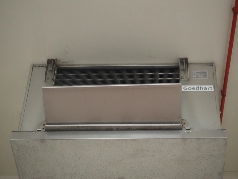 GEA Goedhart B.V. s/s evaporator, type: VRB 41457 P, year of construction: 2010, volume: 8 dm³, PS: 22 bar, PT: 32 bar, fluid: NH3 pump, weight: 70 kg, 1 fan, dimensions: 1300 mm x 600 mm x 700 mm.