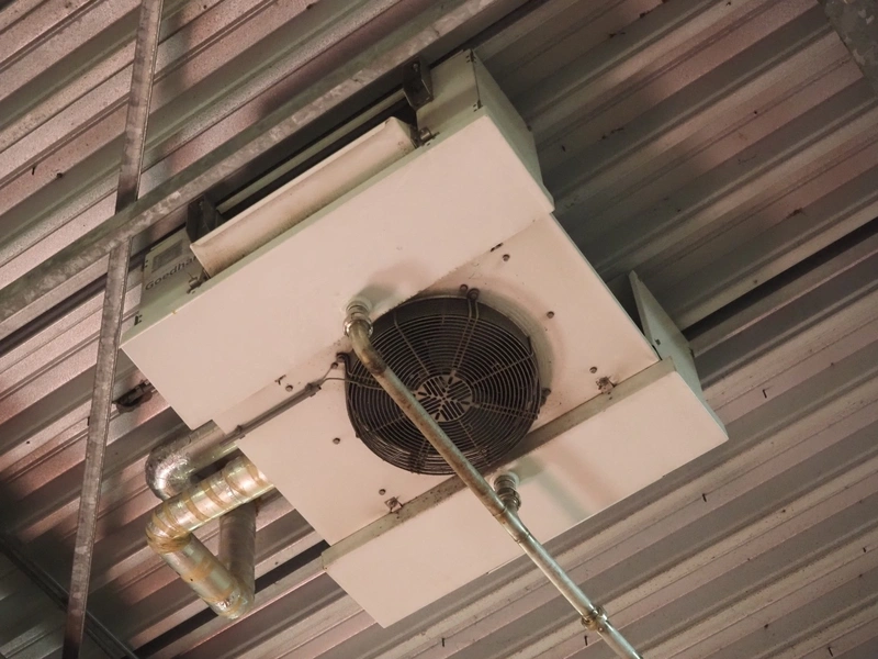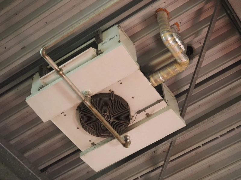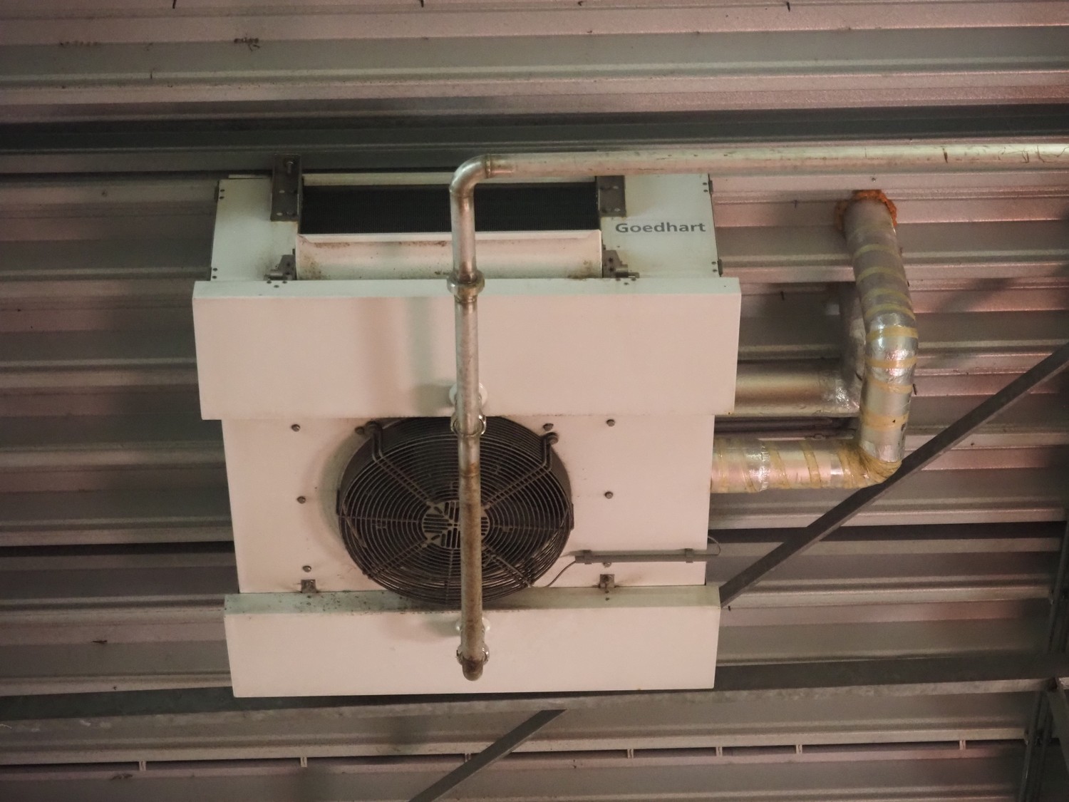 GEA Goedhart B.V. evaporator, 1 fan, dimensions: 1600 mm x 1600 mm x 500 mm.
